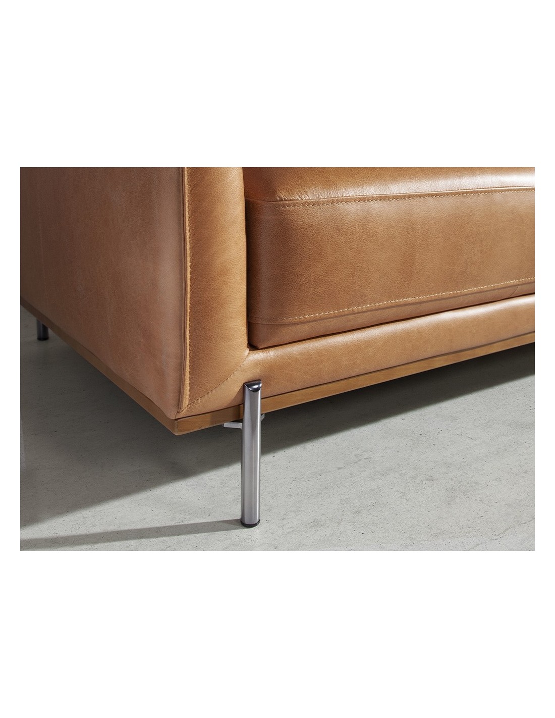 Sofá 3 plazas piel marrón Sofá de 3 plazas de diseño moderno tapizado en piel de origen vacuno color marrón. Tanto por su estilo, como por su embellecedor de madera de haya vaporizada en color nogal y patas de acero inoxidable oscurecido, este sofá aportará el toque de vanguardia y elegancia que busca para su hogar.Medidas del producto: 210 x 88 x 83 cm.- La gran calidad de su tapizado en piel de origen vacuno de 1,5mm de espesor, le confiere además de elegancia y distinción, una gran durabilidad y comodidad. - Todos nuestros sofás están fabricados con materiales de la más alta calidad, con una robusta estructura interna fabricada en madera maciza de pino natural. - Gracias a sus original embellecedor de madera de haya vaporizada tintada en color nogal aporta el toque de calidez y distinción que buscas para tu salón.