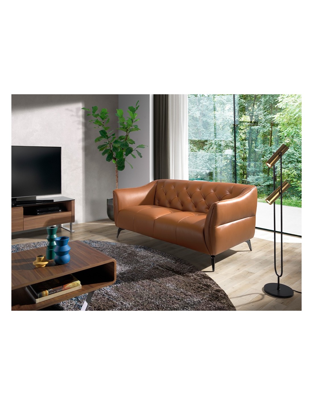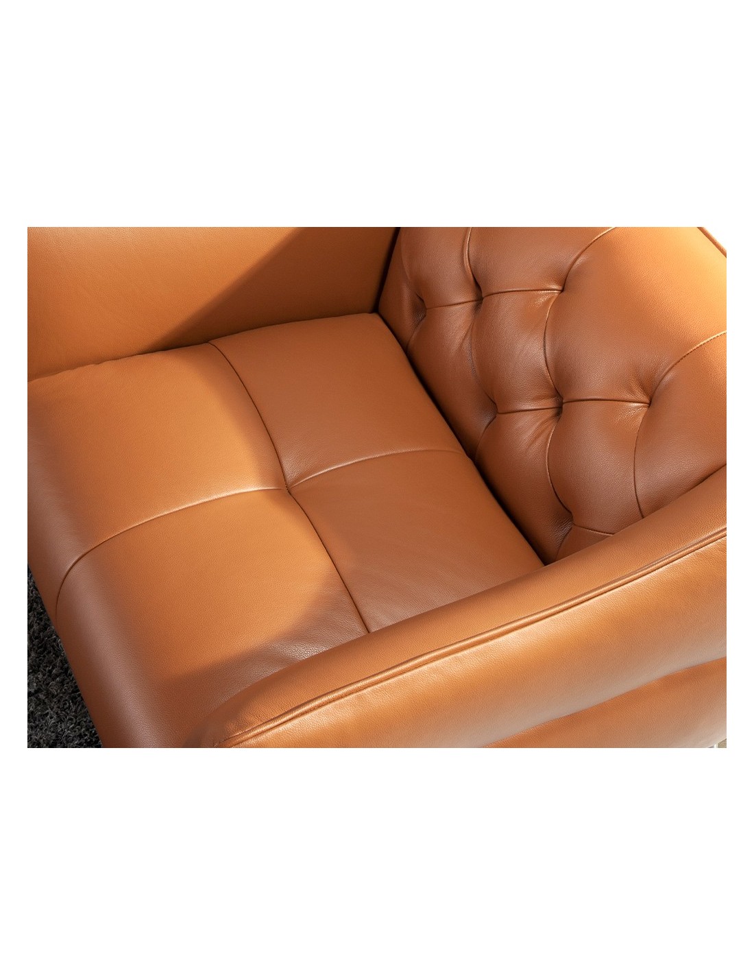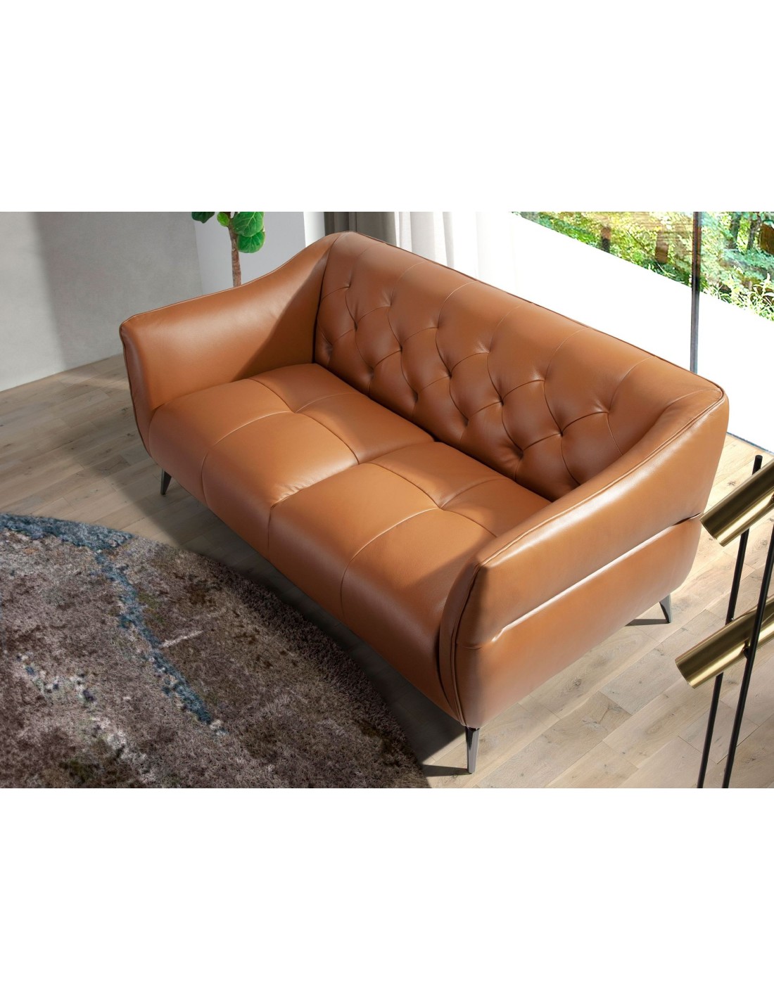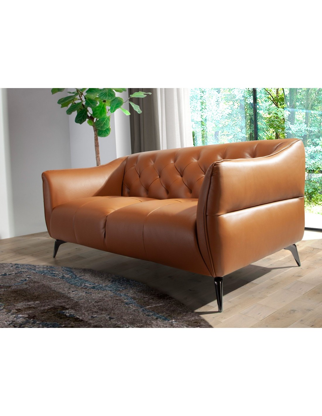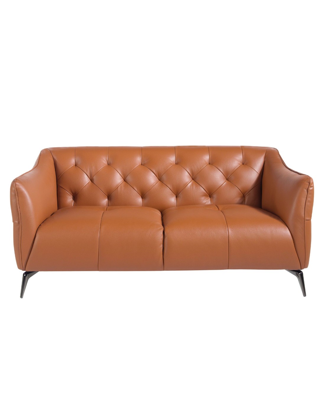 Sofá Chester 2 plazas piel marrón Sofá Chester de 2 plazas de diseño moderno tapizado en piel de origen vacuno color marrón. Tanto por su estilo, como por sus patas de acero inoxidable oscurecido, este sofá aportará el toque de vanguardia y elegancia que busca para su hogar.Medidas del producto: 171 x 95 x 77 cm.- La gran calidad de su tapizado en piel de origen vacuno de 1,5mm de espesor con efecto capitoné, le confiere además de elegancia y distinción, una gran durabilidad y comodidad. - Todos nuestros sofás están fabricados con materiales de la más alta calidad, con una robusta estructura interna fabricada en madera maciza de pino natural.