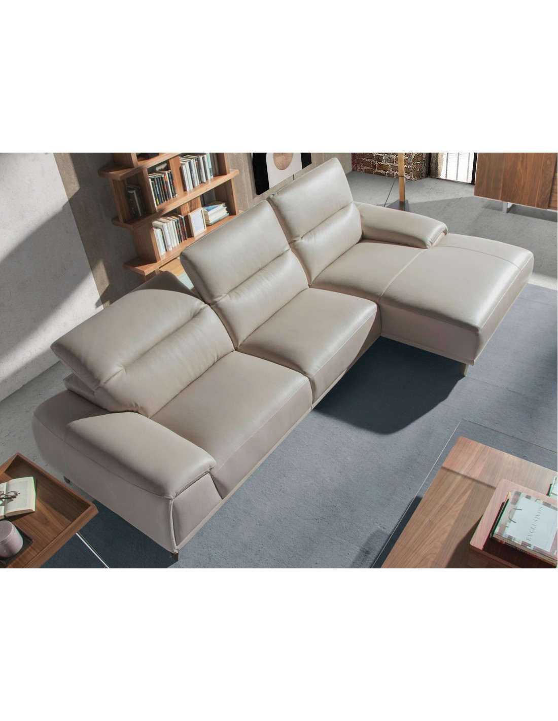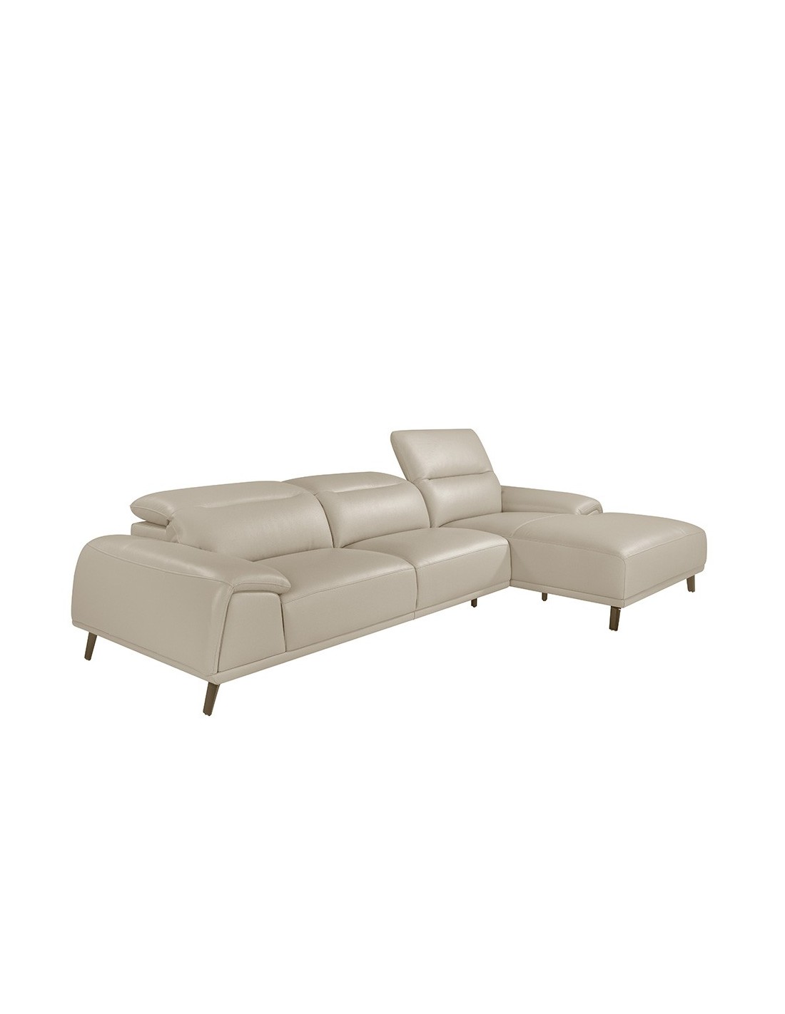Sofá chaise longue derecha piel gris taupe Sofá chaise longue derecha de 5 plazas de diseño moderno tapizado en piel de origen vacuno color gris taupe con reposacabezas para garantizar una mayor comodidad. Tanto por su estilo, como por sus patas de acero pintado en color marrón, este sofá aportará el toque de vanguardia y elegancia que busca para su hogar.Medidas del producto: 316 x 176 x 102 cm.- La gran calidad de su tapizado en piel de origen vacuno de 1,5mm de espesor, le confiere además de elegancia y distinción, una gran durabilidad y comodidad. - Sus reposacabezas articulados independientes le confieren ese extra de confort y adaptabilidad, sin dejar de lado la más alta tendencia. - Todos nuestros sofás están fabricados con materiales de la más alta calidad, con una robusta estructura interna fabricada en madera maciza de pino natural.