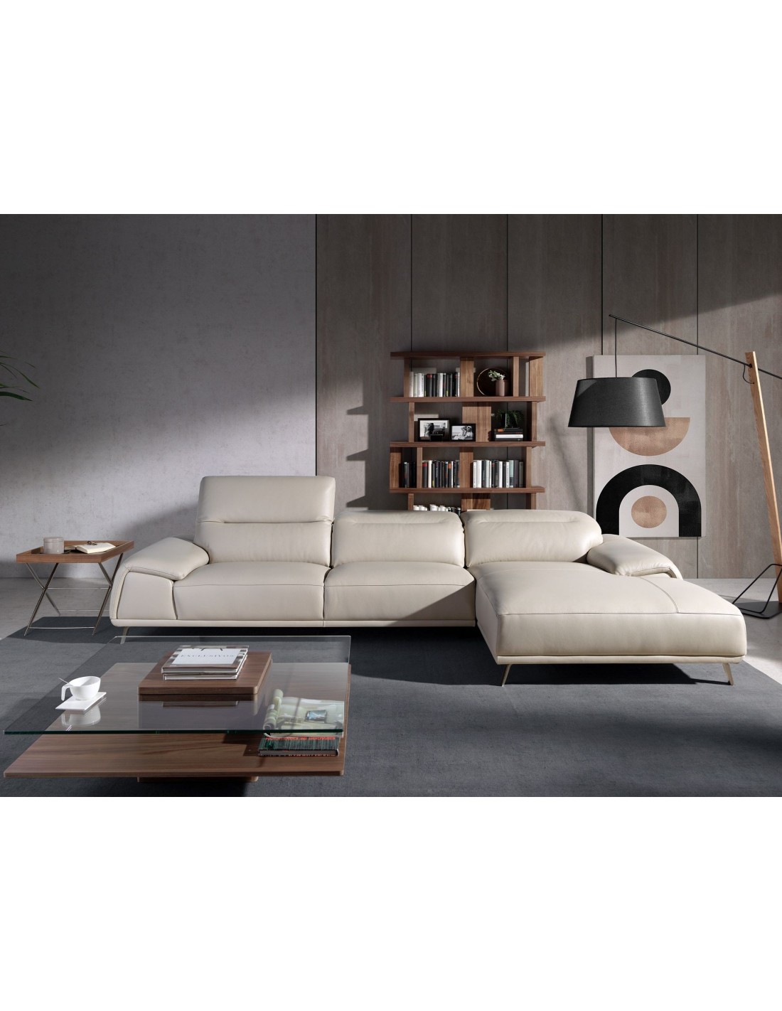 Sofá chaise longue derecha piel gris taupe