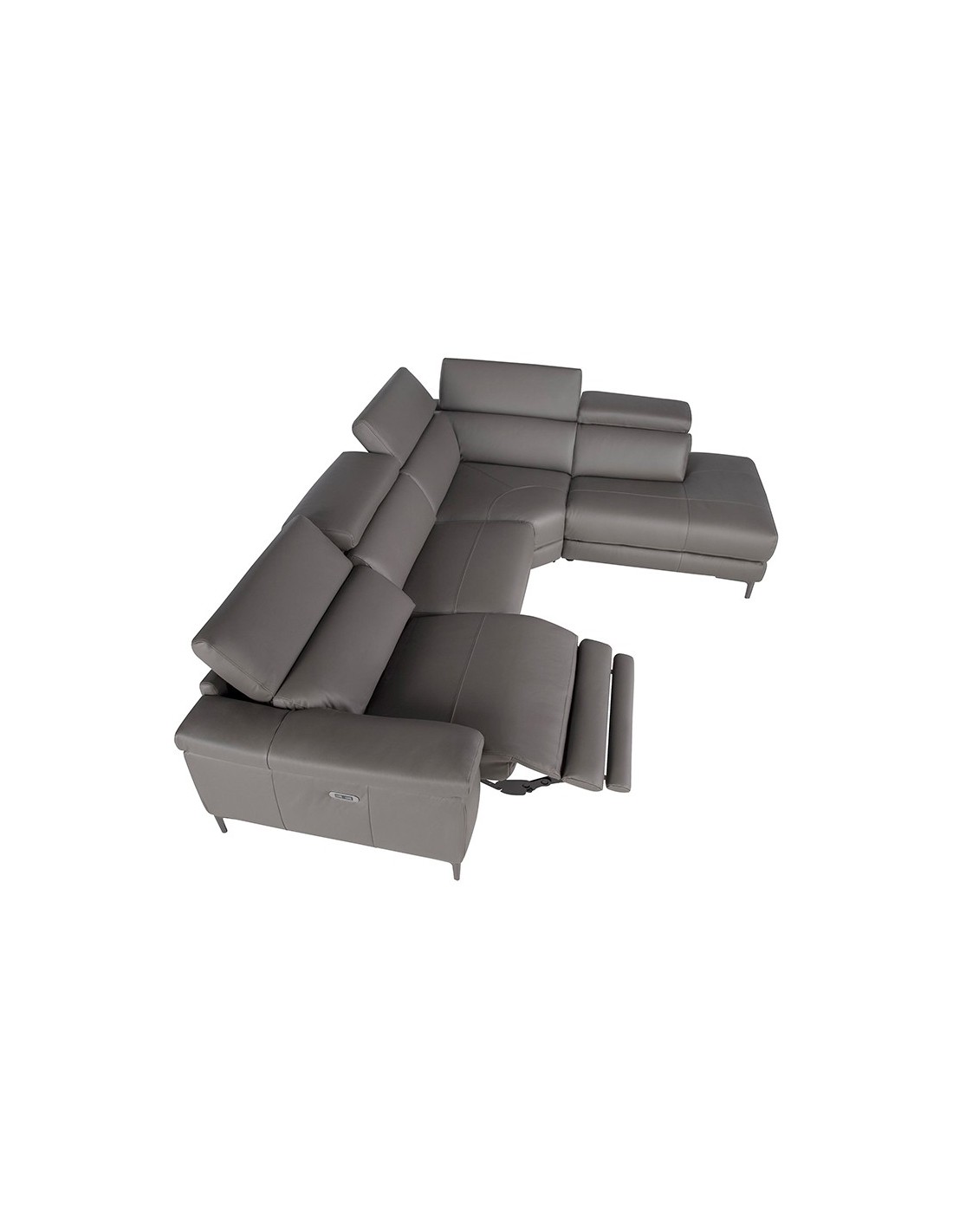 Sofá chaise longue relax derecha piel gris oscuro Sofá chaise longue relax derecha de 5 plazas de diseño moderno tapizado en piel de origen vacuno color gris oscuro con reposacabezas para garantizar una mayor comodidad. Tanto por su estilo, como por sus patas de acero inoxidable oscurecido, este sofá aportará el toque de vanguardia y elegancia que busca para su hogar.Su sistema de relax eléctrico, le aporta el extra de comodidad que necesita para relajarse.Medidas del producto: 295 x 232 x 97 cm.- La gran calidad de su tapizado en piel de origen vacuno de 1,5mm de espesor, le confiere además de elegancia y distinción, una gran durabilidad y comodidad. - Este sofá cuenta con sistema relax, lo que le aporta el extra de comodidad que necesita para relajarse. Su accionado eléctrico le ofrece además, una mayor practicidad y funcionalidad. - Sus reposacabezas articulados independientes le confieren ese extra de confort y adaptabilidad, sin dejar de lado la más alta tendencia. - Todos nuestros sofás están fabricados con materiales de la más alta calidad, con una robusta estructura interna fabricada en madera maciza de pino natural.