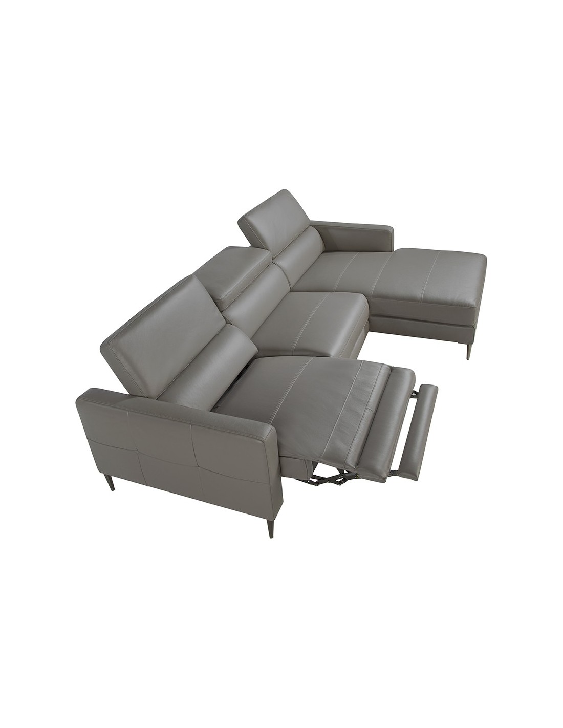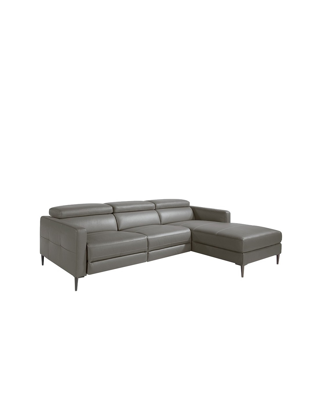 Sofá chaise longue relax derecha piel gris oscuro Sofá chaise longue relax derecha de 5 plazas de diseño moderno tapizado en piel de origen vacuno color gris oscuro con reposacabezas para garantizar una mayor comodidad. Tanto por su estilo, como por sus patas de acero inoxidable oscurecido, este sofá aportará el toque de vanguardia y elegancia que busca para su hogar.Su sistema de relax eléctrico, le aporta el extra de comodidad que necesita para relajarse.Medidas del producto: 258 x 173 x 95 cm.- La gran calidad de su tapizado en piel de origen vacuno de 1,5mm de espesor, le confiere además de elegancia y distinción, una gran durabilidad y comodidad. - Este sofá cuenta con sistema relax, lo que le aporta el extra de comodidad que necesita para relajarse. Su accionado eléctrico le ofrece además, una mayor practicidad y funcionalidad. - Sus reposacabezas articulados independientes le confieren ese extra de confort y adaptabilidad, sin dejar de lado la más alta tendencia. - Todos nuestros sofás están fabricados con materiales de la más alta calidad, con una robusta estructura interna fabricada en madera maciza de pino natural.
