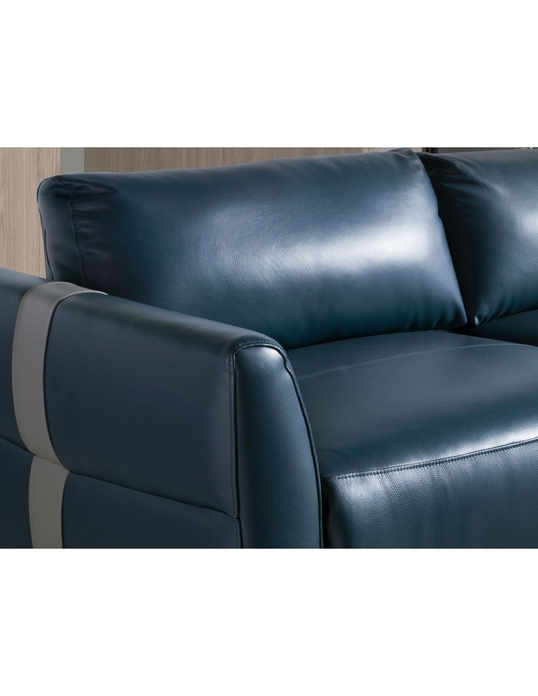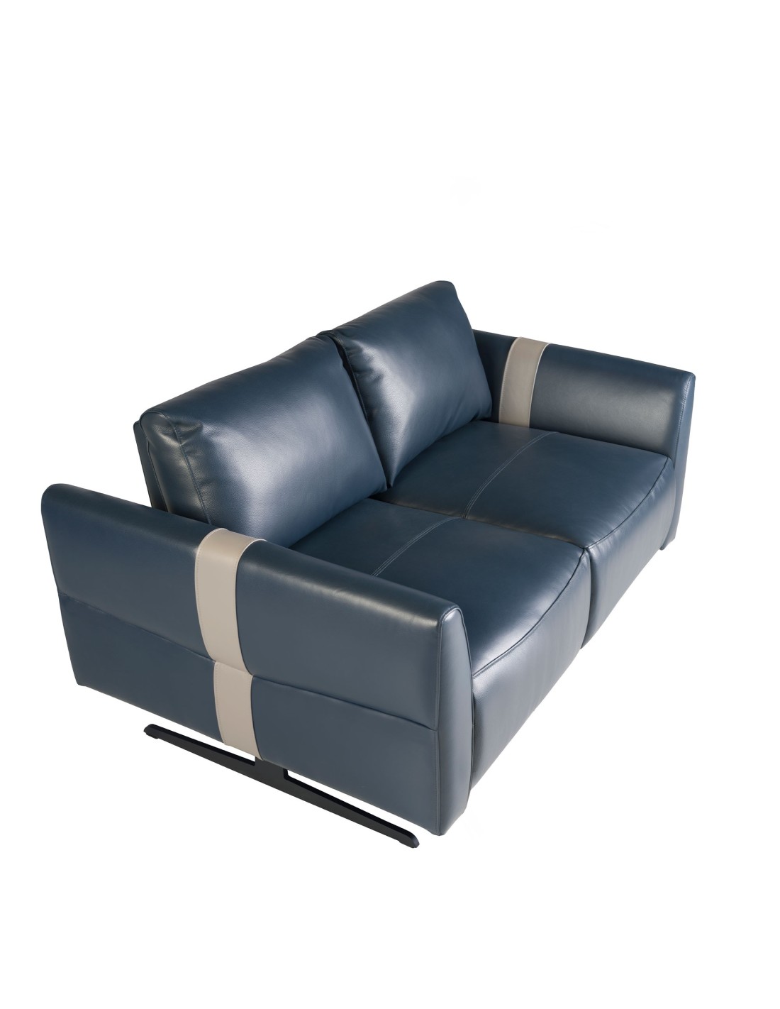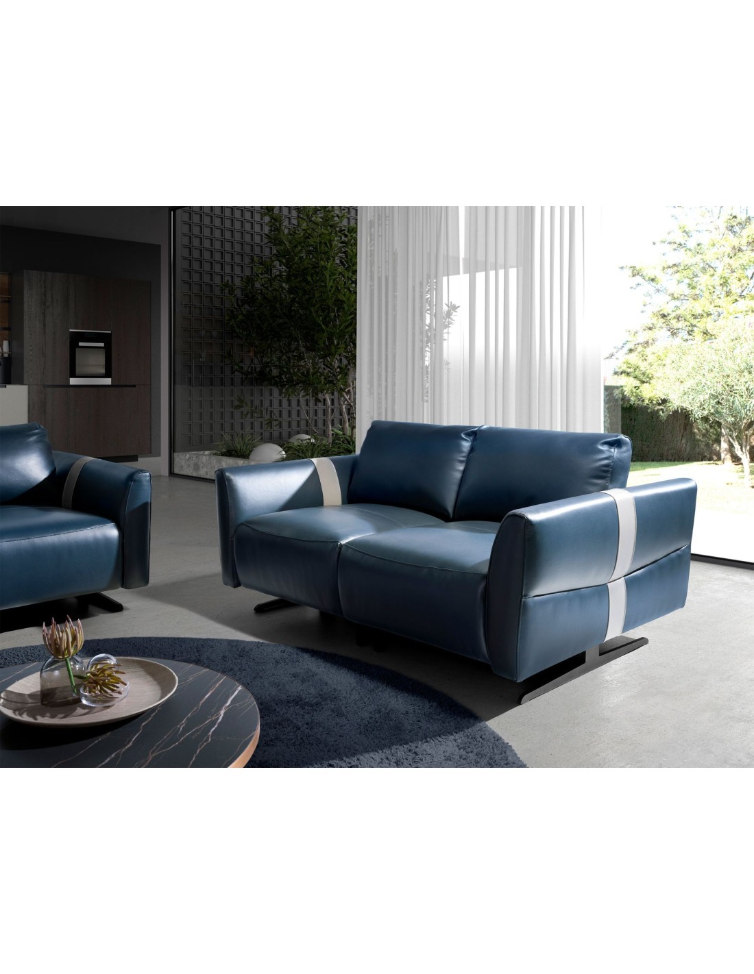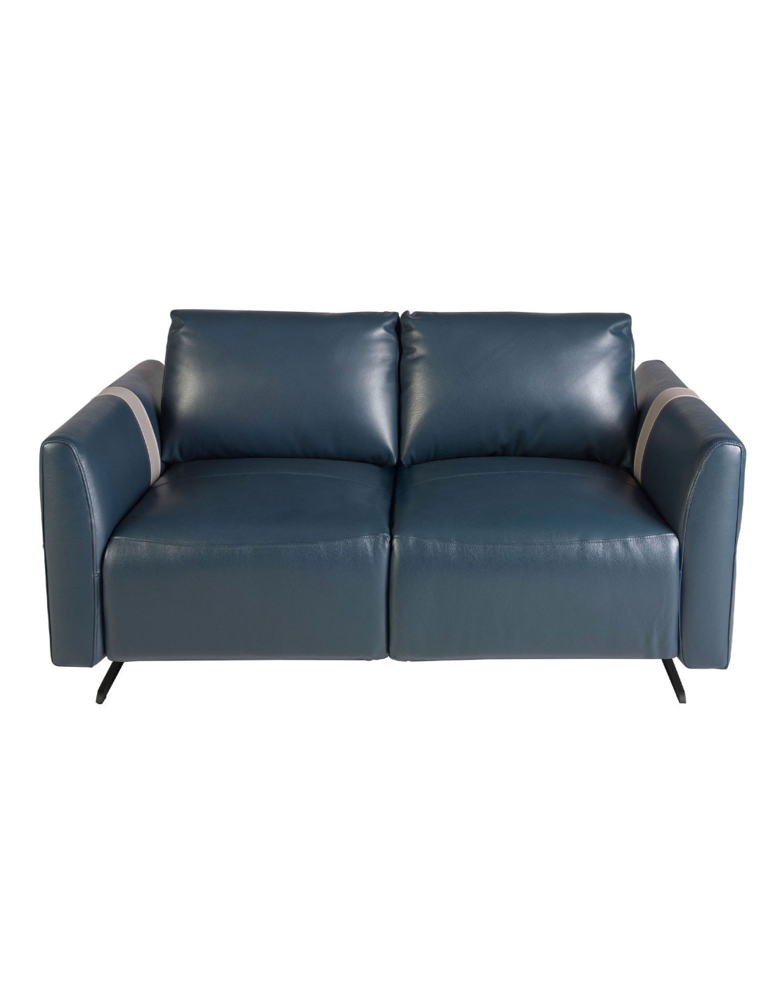 Sofá relax 2 plazas piel azul Sofá relax de 2 plazas de diseño moderno tapizado en piel de origen vacuno color azul. Tanto por su estilo, como por sus patas de acero inoxidable pintado en epoxi negro, este sofá aportará el toque de vanguardia y elegancia que busca para su hogar. Un sofá tendencia perfecto para su zona de descanso con un original detalle en piel color gris. Sus 2 sistemas de relax eléctrico, le aportan el extra de comodidad que necesita para relajarse.Medidas del producto: 173 x 110 x 92 cm.- La gran calidad de su tapizado en piel de origen vacuno de 1,5mm de espesor, le confiere además de elegancia y distinción, una gran durabilidad y comodidad. - Este sofá cuenta con sistema relax, lo que le aporta el extra de comodidad que necesita para relajarse. Su accionado eléctrico le ofrece además, una mayor practicidad y funcionalidad. - Todos nuestros sofás están fabricados con materiales de la más alta calidad, con una robusta estructura interna fabricada en madera maciza de pino natural. - Su respaldo basculante con accionado eléctrico permite adaptarlo a las necesidades del usuario, ofreciendo el máximo confort y practicidad. Además su original detalle de polipiel gris claro le aporta contraste y estilo.