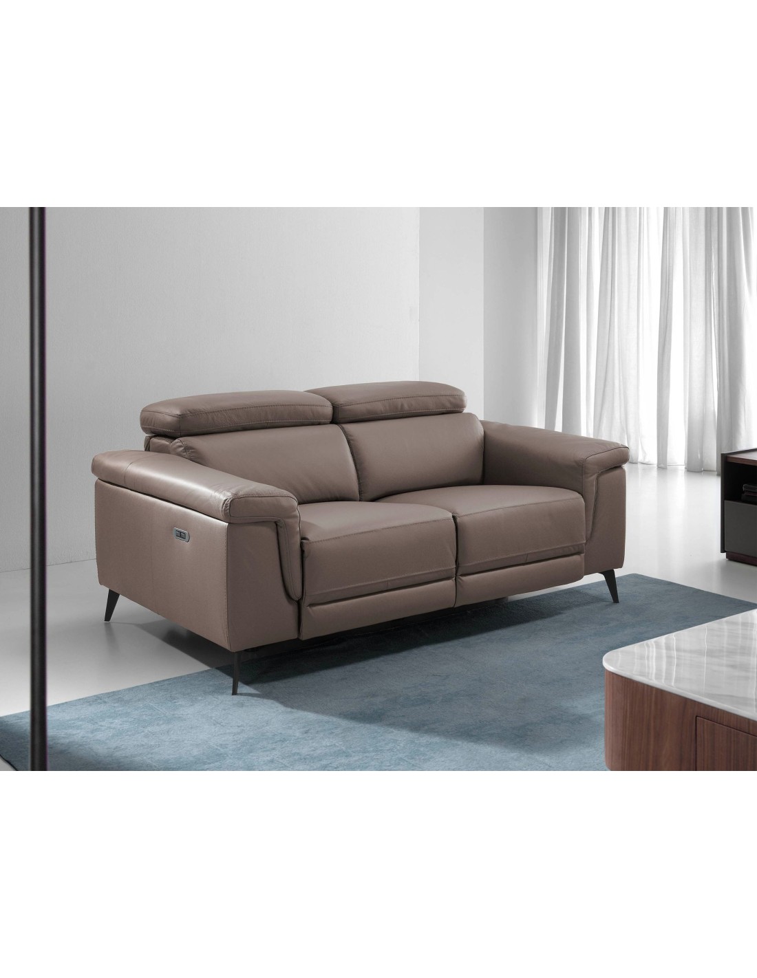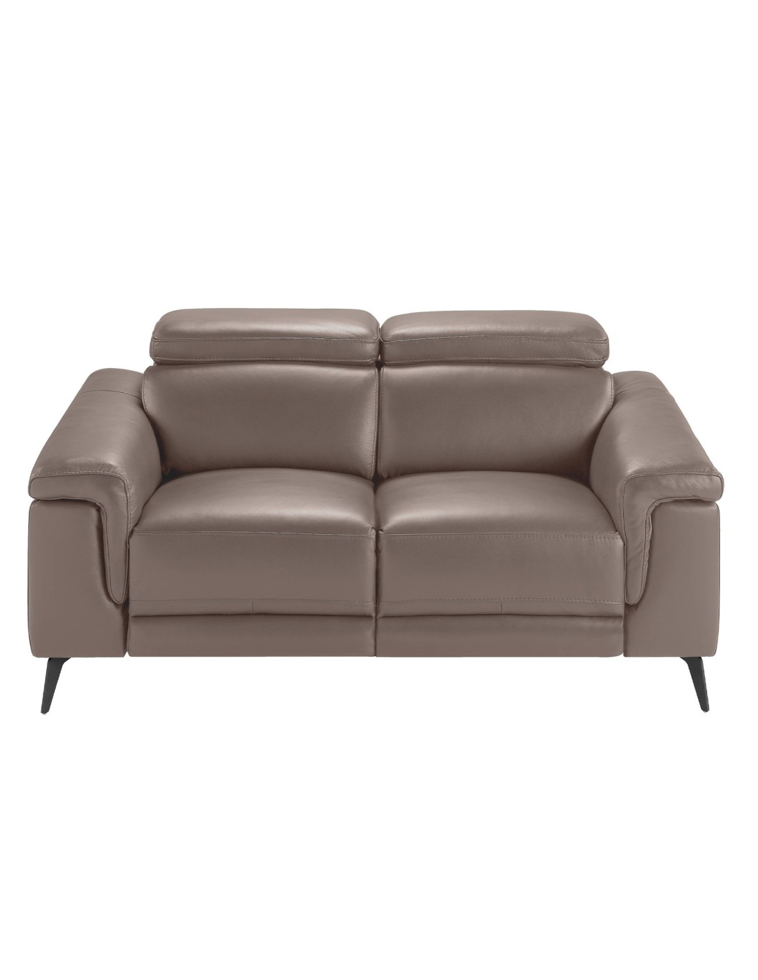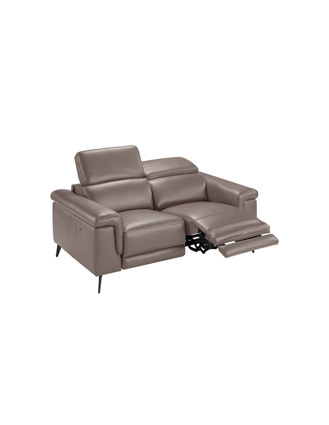 Sofá relax 2 plazas piel visón Sofá relax de 2 plazas de diseño moderno tapizado en piel de origen vacuno color visón con reposacabezas para garantizar una mayor comodidad. Tanto por su estilo, como por sus patas de acero inoxidable pintado en epoxi negro, este sofá aportará el toque de vanguardia y elegancia que busca para su hogar.Sus 2 sistemas de relax eléctrico, le aportan el extra de comodidad que necesita para relajarse.Medidas del producto: 170 x 103 x 99 cm.- La gran calidad de su tapizado en piel de origen vacuno de 1,5mm de espesor, le confiere además de elegancia y distinción, una gran durabilidad y comodidad. - Este sofá cuenta con sistema relax, lo que le aporta el extra de comodidad que necesita para relajarse. Su accionado eléctrico le ofrece además, una mayor practicidad y funcionalidad. - Sus reposacabezas articulados independientes le confieren ese extra de confort y adaptabilidad, sin dejar de lado la más alta tendencia. - Todos nuestros sofás están fabricados con materiales de la más alta calidad, con una robusta estructura interna fabricada en madera maciza de pino natural.