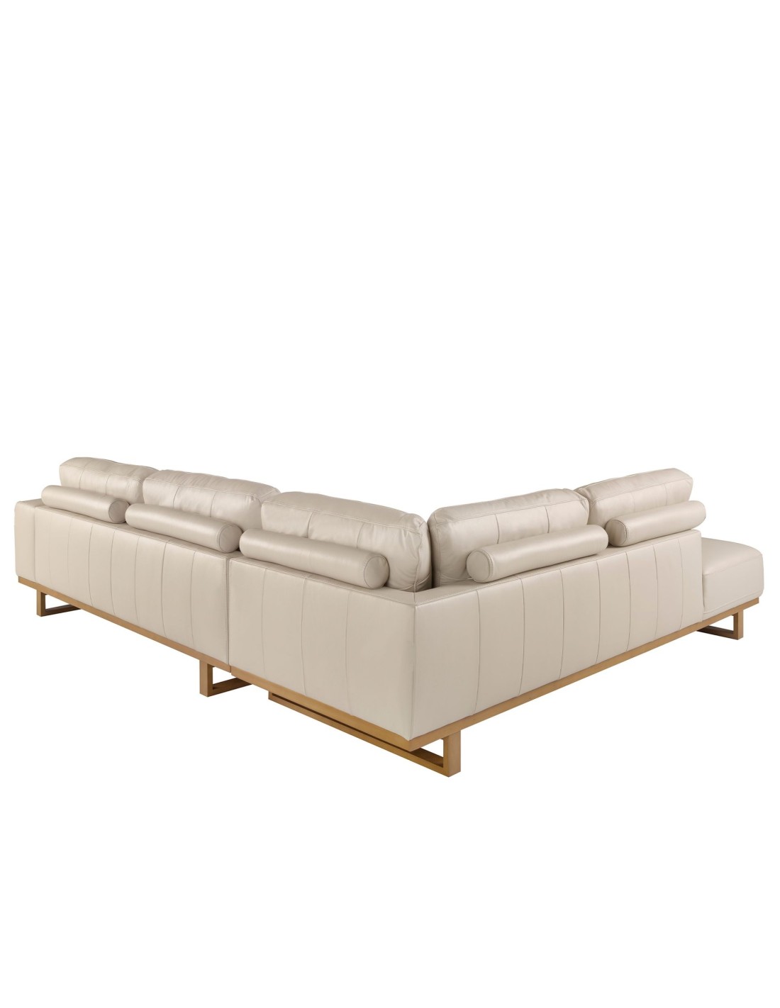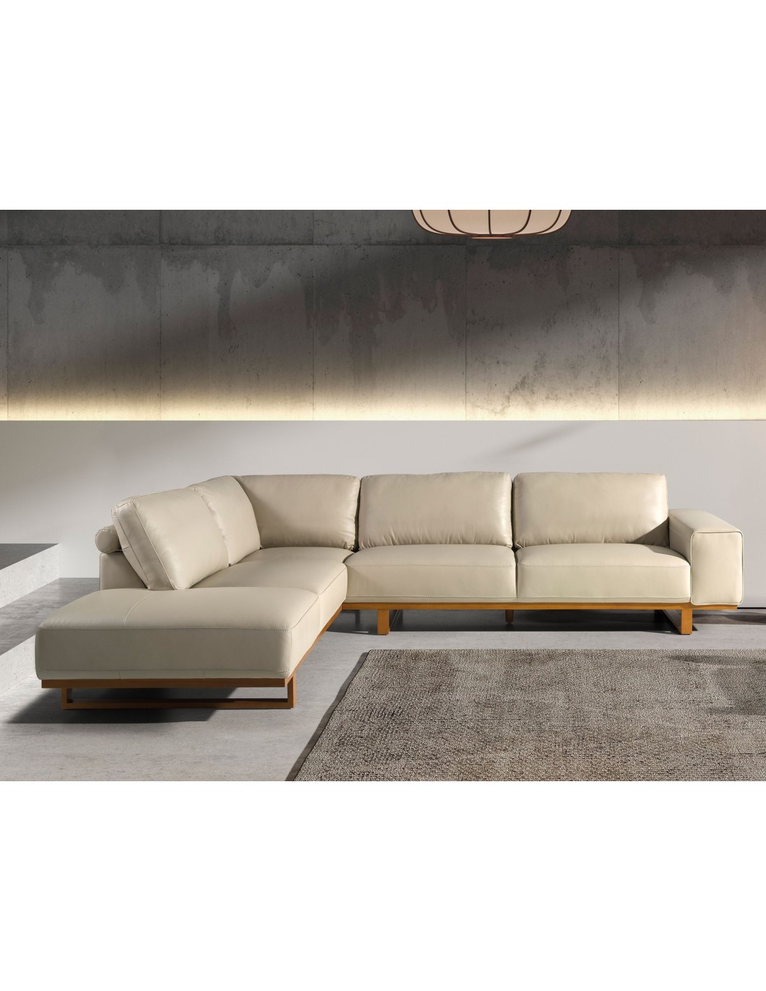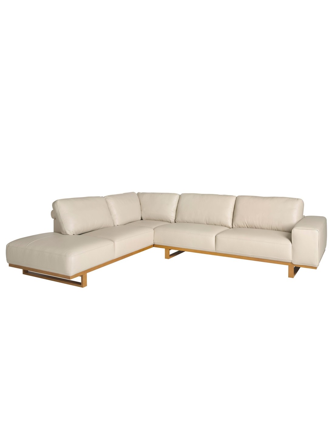 Sofá rinconera izquierda piel arena Sofá rinconera izquierda de 5 plazas de diseño moderno tapizado en piel de origen vacuno color arena. Tanto por su estilo, como por sus patas de madera en color miel, este sofá aportará el toque de vanguardia y elegancia que busca para su hogar.Medidas del producto: 316 x 252 x 82 cm.- La gran calidad de su tapizado en piel de origen vacuno de 1,5mm de espesor, le confiere además de elegancia y distinción, una gran durabilidad y comodidad. - Todos nuestros sofás están fabricados con materiales de la más alta calidad, con una robusta estructura interna fabricada en madera maciza de pino natural. - Los cojines del respaldo son extraíbles y desenfundables con sistema de cremallera.