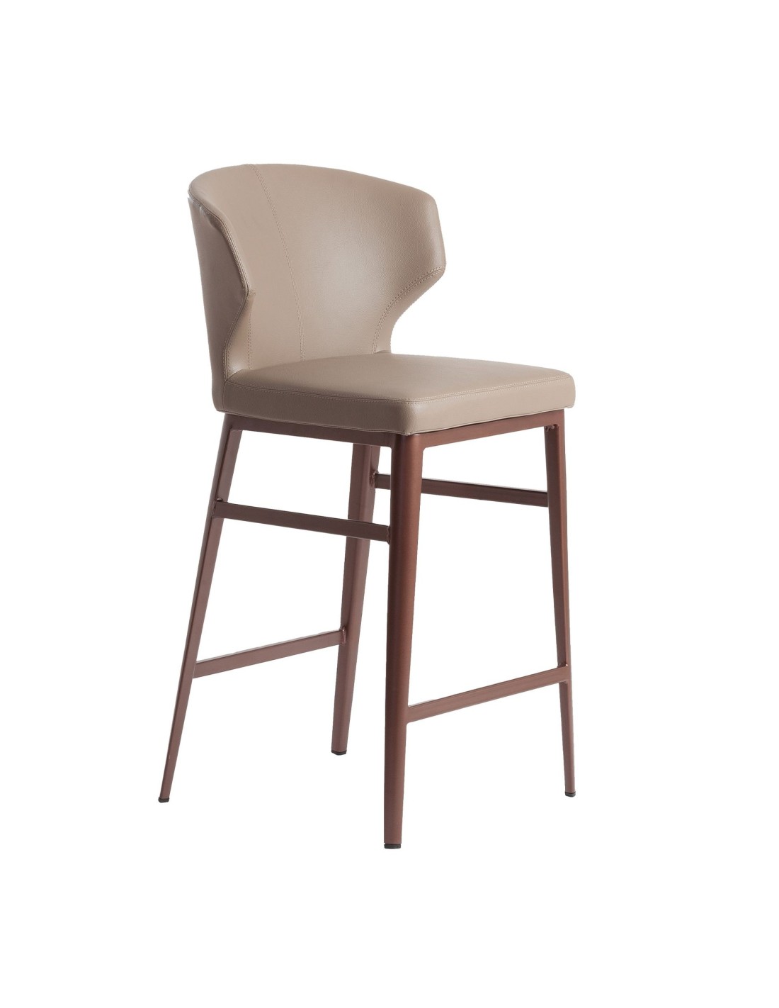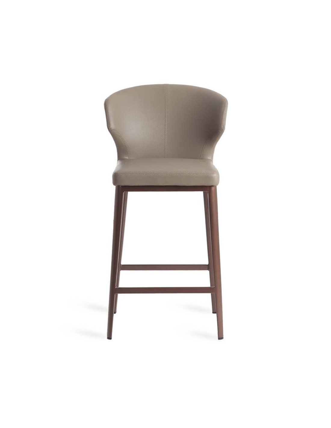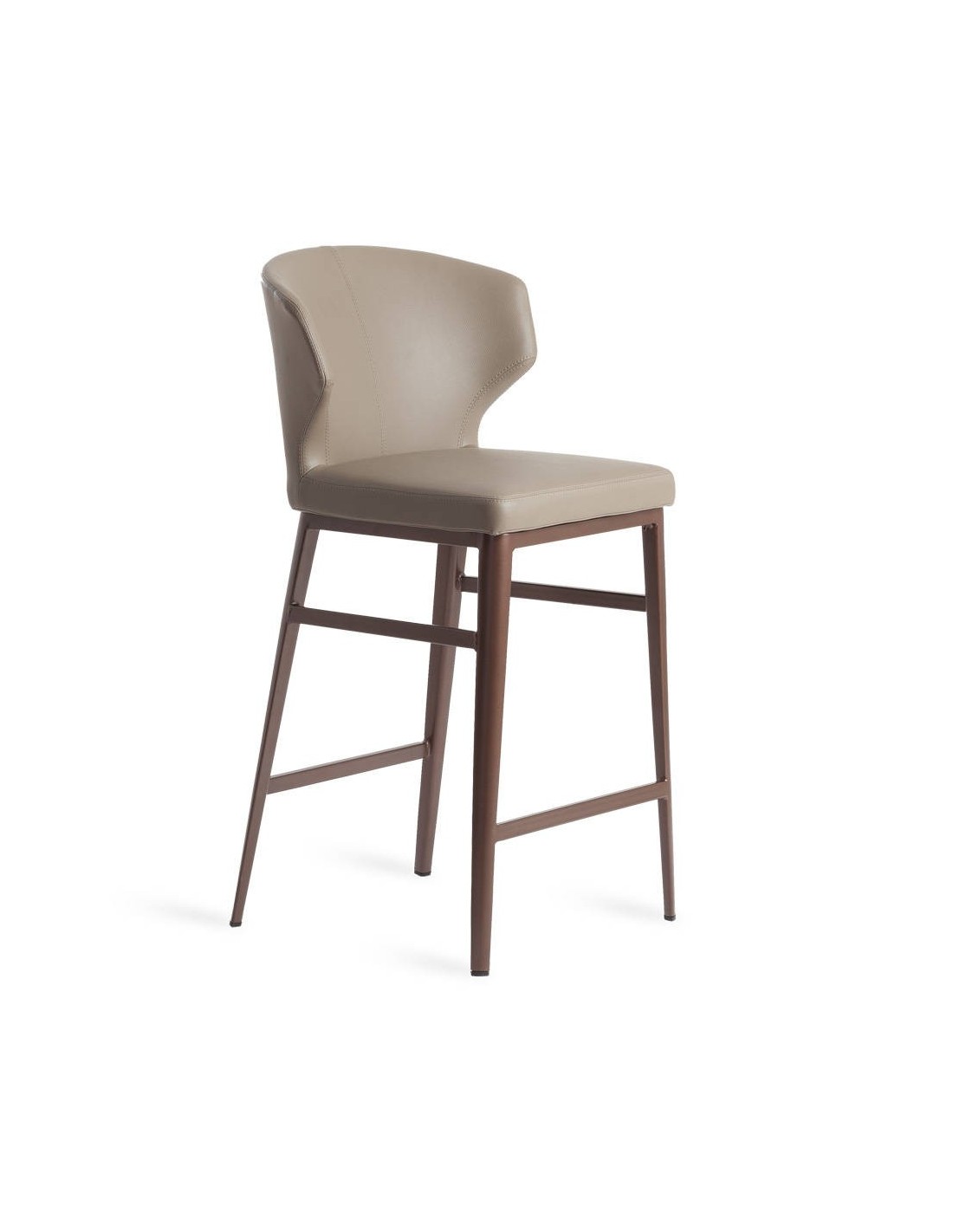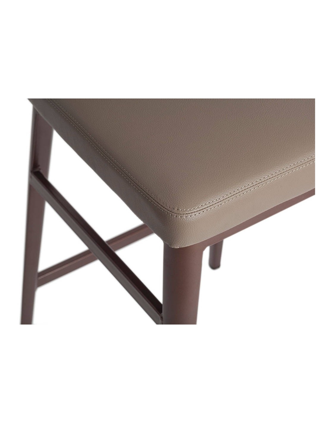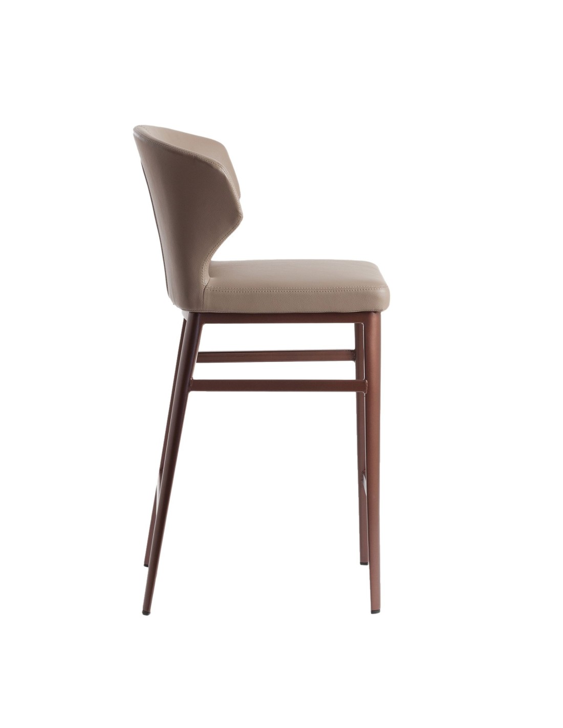 Taburete polipiel visón oscuro Taburete de diseño moderno con asiento y respaldo tapizados en polipiel color visón oscuro. Sus patas de acero inoxidable color bronce de estilo vanguardista a la vez que atemporal, lo convertirán en el must have de su cocina o comedor. Este taburete de la firma Angel Cerdá, aúna el estilo único y personal de la marca, así como la mayor comodidad y estabilidad, gracias a la alta calidad de su tapizado y la original estructura de patas.Medidas del producto: 48 x 48 x 93 cm.- La combinación del tapizado en polipiel y el acero de sus patas, lo convierte en un taburete perfecto para aportar modernidad y luminosidad al espacio. - Sus patas robustas y de carácter lineal lo convierten en una pieza que complementa al 100% diseño, confort y el estilo más vanguardista. - Si busca el taburete perfecto para su cocina o comedor, ésta es una opción ideal para aunar el toque moderno y de vanguardia que necesita, con la mayor calidad y funcionalidad. - El tamaño de su asiento y su relleno en espuma de poliuretano de 25kg/m3, así como su diseño de respaldo envolvente le permitirá contar con el máximo confort.