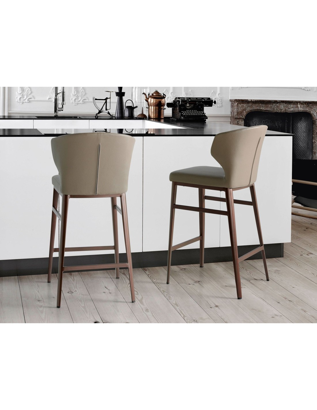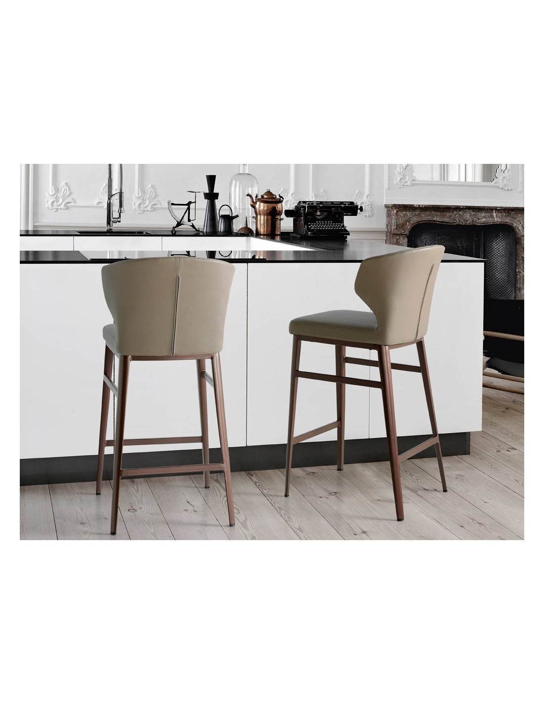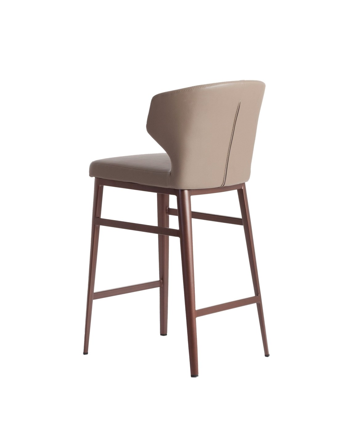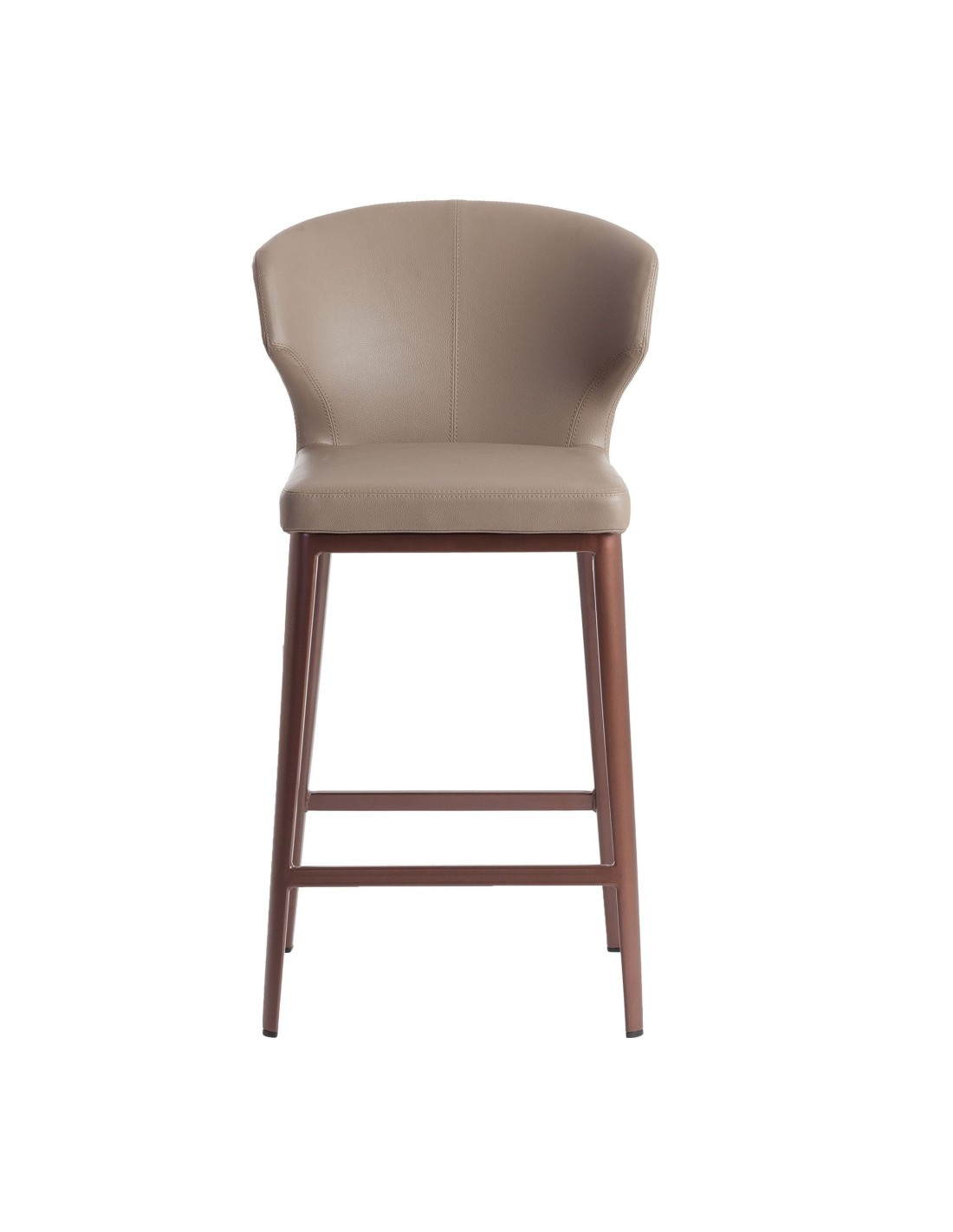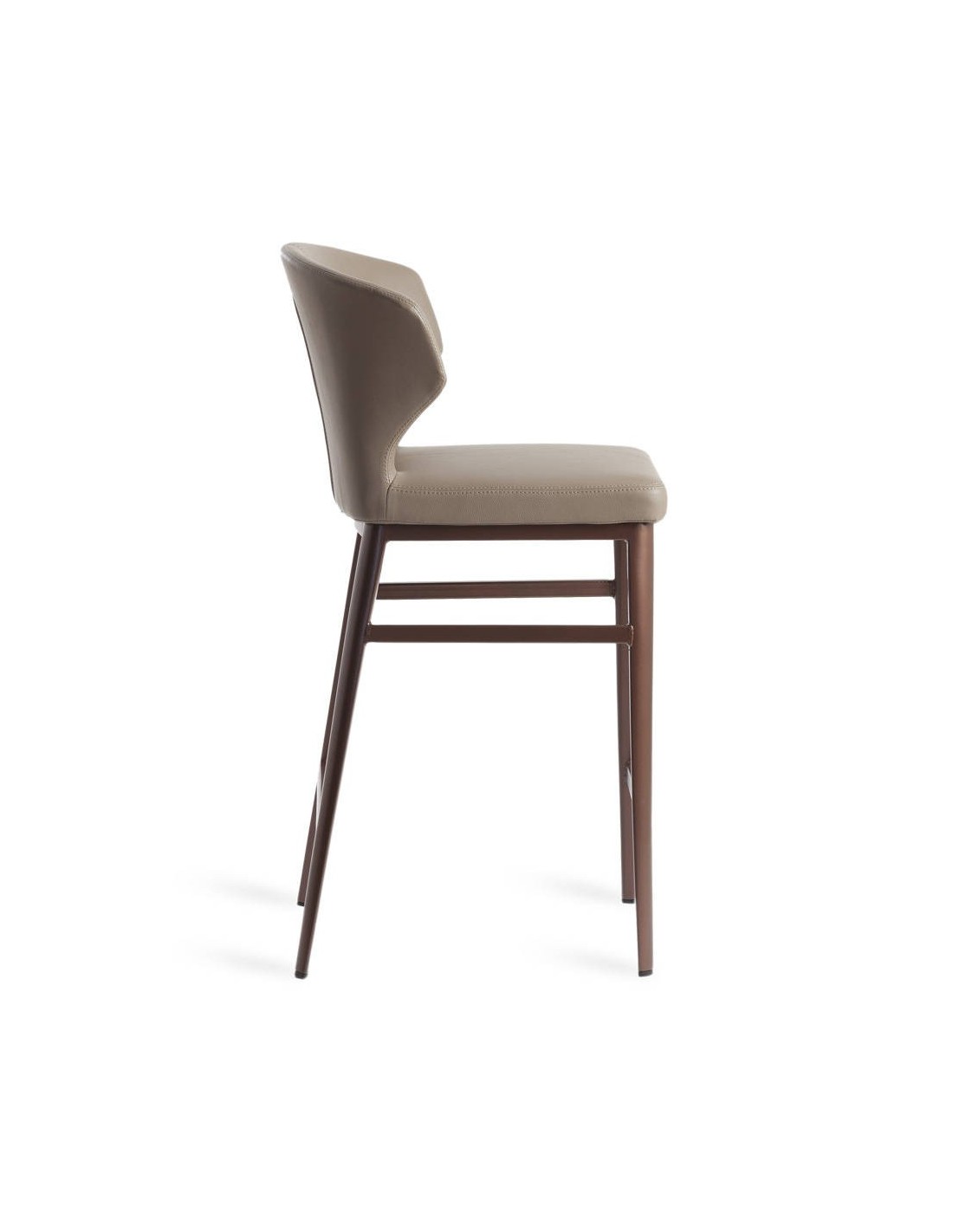 Taburete polipiel visón oscuro Taburete de diseño moderno con asiento y respaldo tapizados en polipiel color visón oscuro. Sus patas de acero inoxidable color bronce de estilo vanguardista a la vez que atemporal, lo convertirán en el must have de su cocina o comedor. Este taburete de la firma Angel Cerdá, aúna el estilo único y personal de la marca, así como la mayor comodidad y estabilidad, gracias a la alta calidad de su tapizado y la original estructura de patas.Medidas del producto: 48 x 48 x 93 cm.- La combinación del tapizado en polipiel y el acero de sus patas, lo convierte en un taburete perfecto para aportar modernidad y luminosidad al espacio. - Sus patas robustas y de carácter lineal lo convierten en una pieza que complementa al 100% diseño, confort y el estilo más vanguardista. - Si busca el taburete perfecto para su cocina o comedor, ésta es una opción ideal para aunar el toque moderno y de vanguardia que necesita, con la mayor calidad y funcionalidad. - El tamaño de su asiento y su relleno en espuma de poliuretano de 25kg/m3, así como su diseño de respaldo envolvente le permitirá contar con el máximo confort.