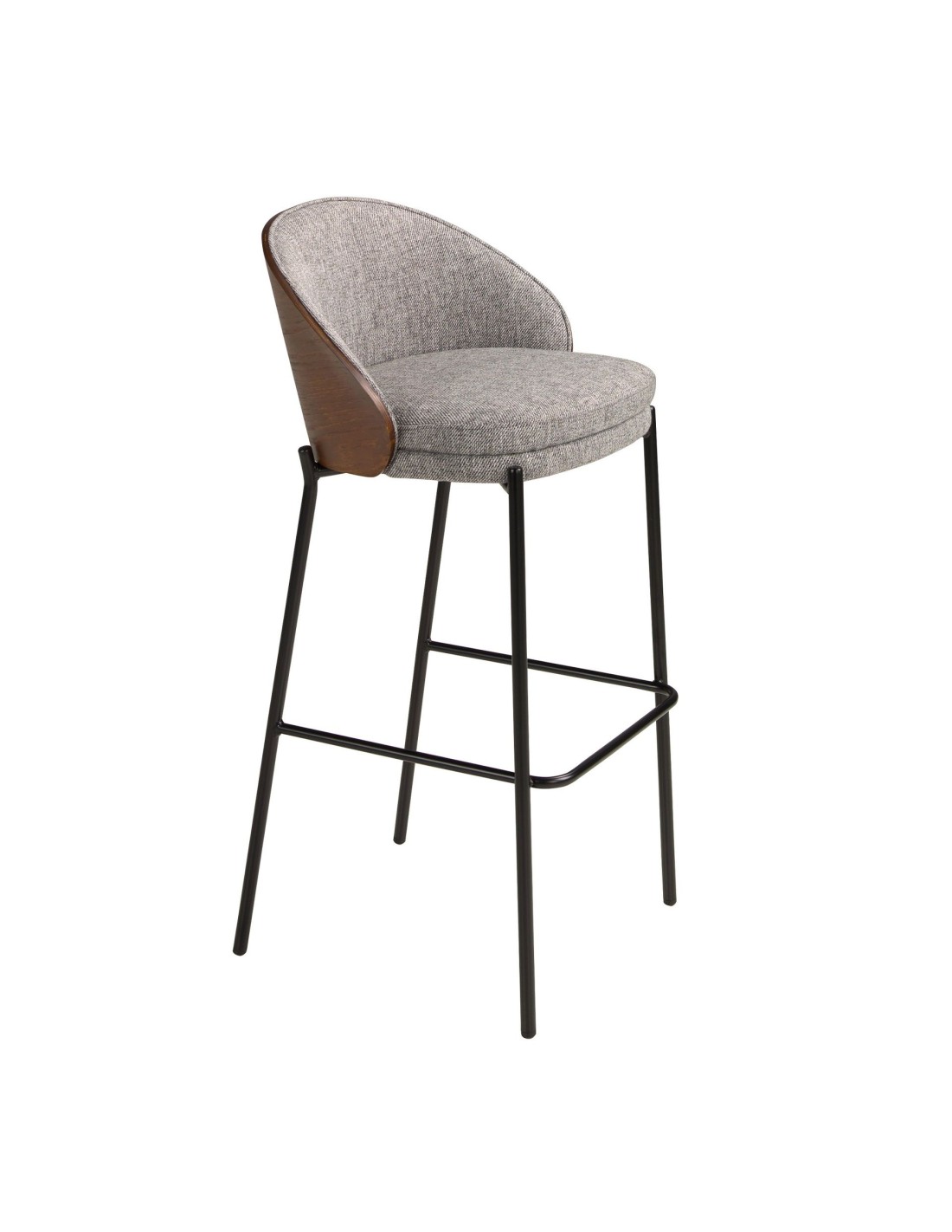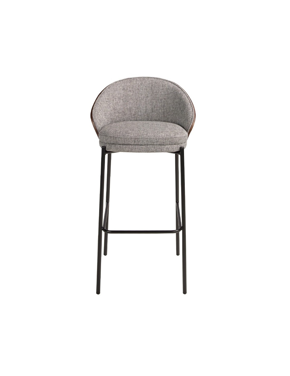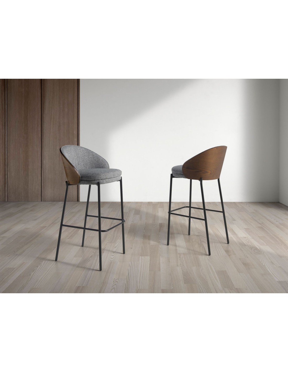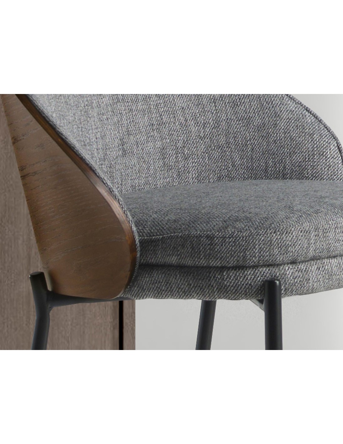 Taburete tela gris y nogal Taburete de diseño moderno con asiento y respaldo tapizados en tela color gris. El elegante acabado en madera chapada en nogal natural aporta el toque de distinción que busca para su hogar. Sus patas de acero inoxidable color negro de estilo vanguardista a la vez que atemporal, lo convertirán en el must have de su cocina o comedor. Este taburete de la firma Angel Cerdá, aúna el estilo único y personal de la marca, así como la mayor comodidad y estabilidad, gracias a la alta calidad de su tapizado y la original estructura de patas.Medidas del producto: 53 x 51 x 98 cm.- Gracias al tapizado en tela de este taburete, conseguirá el toque distintivo y diferente que busca para su zona de cocina o comedor. - Sus patas robustas y de carácter lineal lo convierten en una pieza que complementa al 100% diseño, confort y el estilo más vanguardista. - Si busca el taburete perfecto para su cocina o comedor, ésta es una opción ideal para aunar el toque moderno y de vanguardia que necesita, con la mayor calidad y funcionalidad. - El tamaño de su asiento y su relleno en espuma de poliuretano de 25kg/m3, así como su diseño de respaldo envolvente le permitirá contar con el máximo confort. - Su original respaldo de madera chapada en nogal de 0,5 mm de espesor, ofrece ese toque de tendencia y personalidad que caracteriza nuestra marca. Toda una pieza de diseño que se convertirá en uno de los elementos clave en la decoración de su hogar.