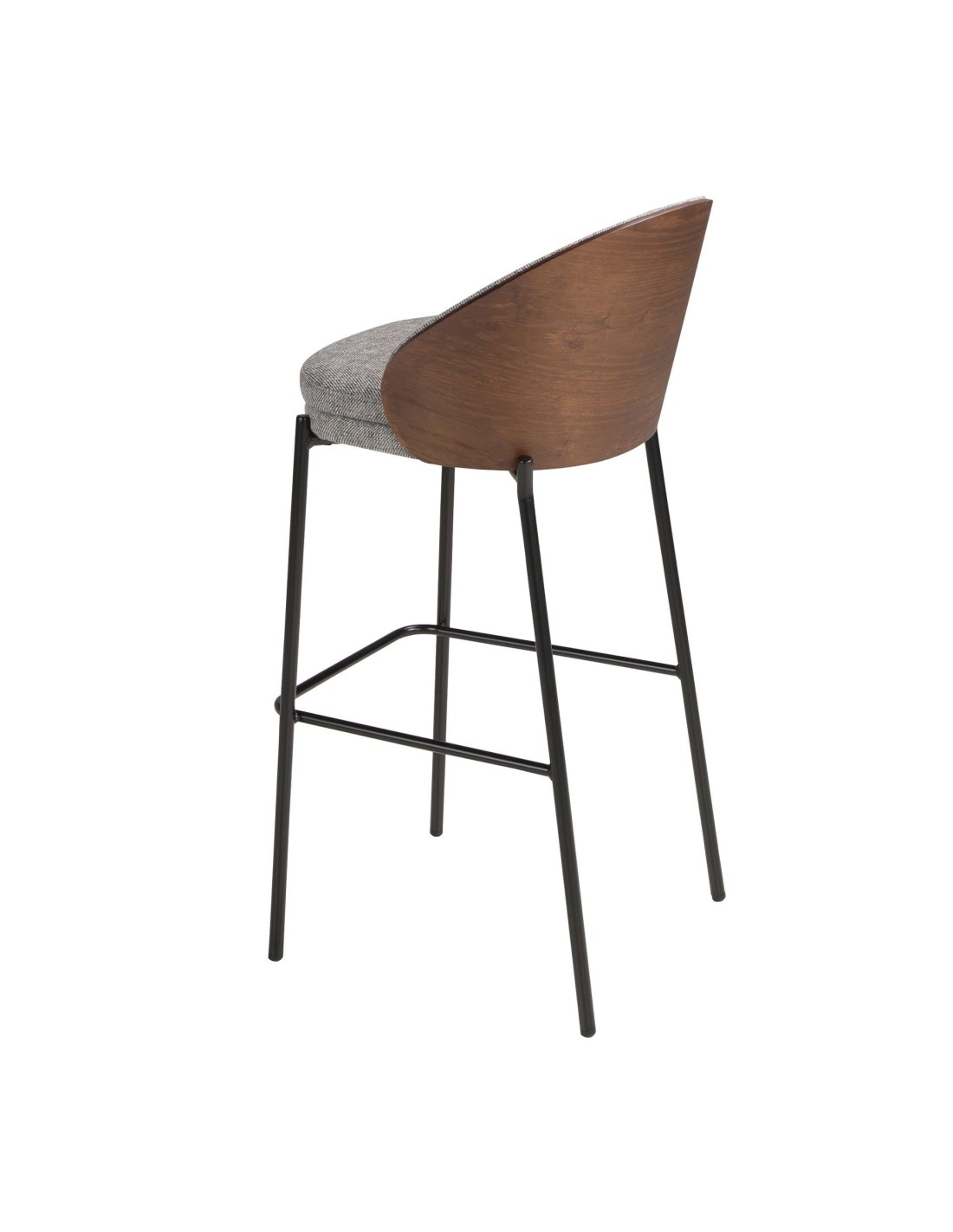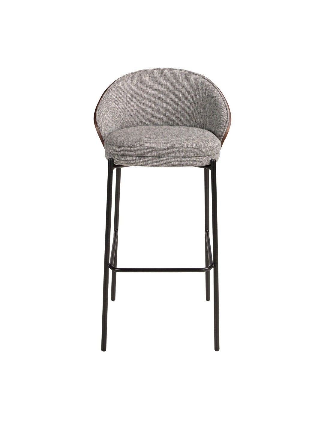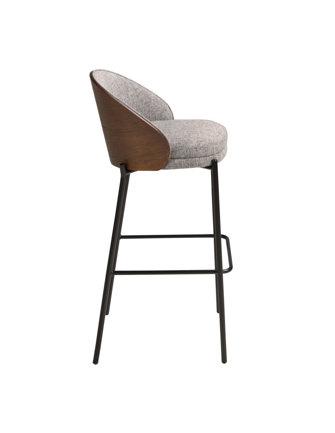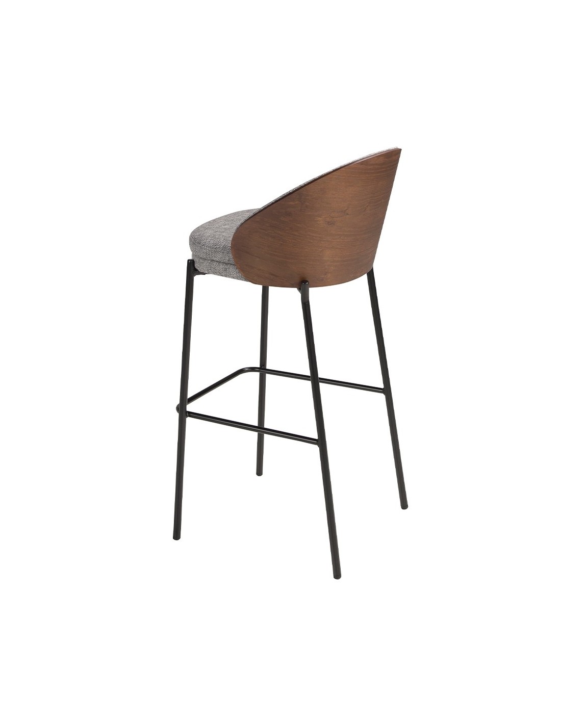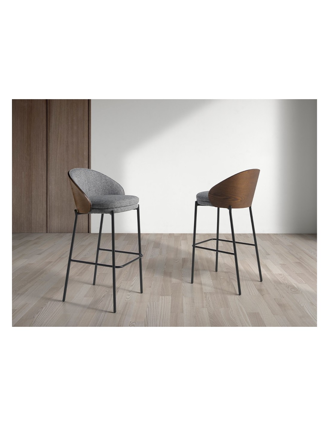 Taburete tela gris y nogal Taburete de diseño moderno con asiento y respaldo tapizados en tela color gris. El elegante acabado en madera chapada en nogal natural aporta el toque de distinción que busca para su hogar. Sus patas de acero inoxidable color negro de estilo vanguardista a la vez que atemporal, lo convertirán en el must have de su cocina o comedor. Este taburete de la firma Angel Cerdá, aúna el estilo único y personal de la marca, así como la mayor comodidad y estabilidad, gracias a la alta calidad de su tapizado y la original estructura de patas.Medidas del producto: 53 x 51 x 98 cm.- Gracias al tapizado en tela de este taburete, conseguirá el toque distintivo y diferente que busca para su zona de cocina o comedor. - Sus patas robustas y de carácter lineal lo convierten en una pieza que complementa al 100% diseño, confort y el estilo más vanguardista. - Si busca el taburete perfecto para su cocina o comedor, ésta es una opción ideal para aunar el toque moderno y de vanguardia que necesita, con la mayor calidad y funcionalidad. - El tamaño de su asiento y su relleno en espuma de poliuretano de 25kg/m3, así como su diseño de respaldo envolvente le permitirá contar con el máximo confort. - Su original respaldo de madera chapada en nogal de 0,5 mm de espesor, ofrece ese toque de tendencia y personalidad que caracteriza nuestra marca. Toda una pieza de diseño que se convertirá en uno de los elementos clave en la decoración de su hogar.