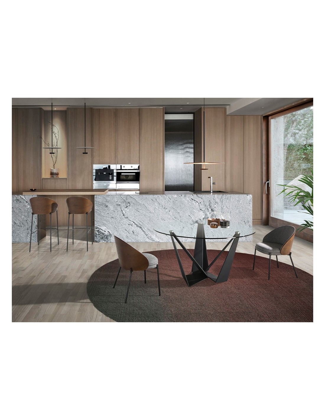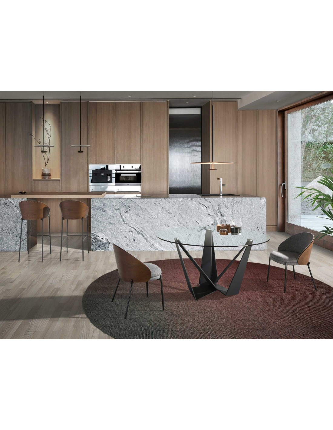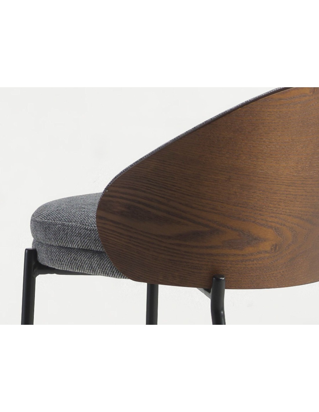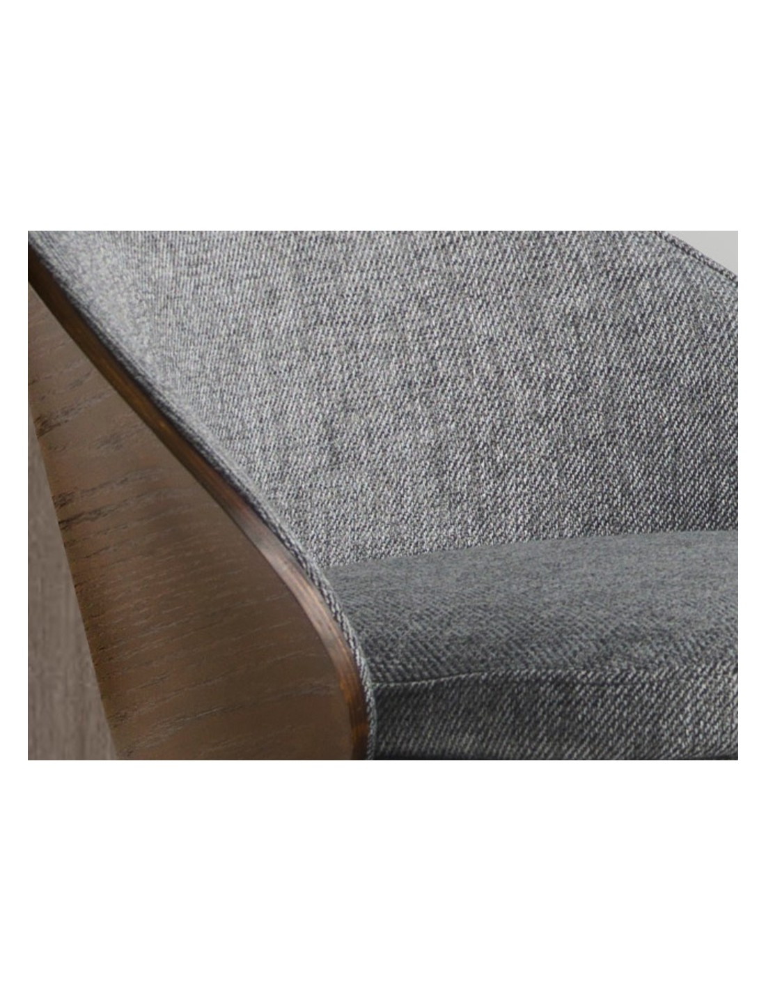 Taburete tela gris y nogal Taburete de diseño moderno con asiento y respaldo tapizados en tela color gris. El elegante acabado en madera chapada en nogal natural aporta el toque de distinción que busca para su hogar. Sus patas de acero inoxidable color negro de estilo vanguardista a la vez que atemporal, lo convertirán en el must have de su cocina o comedor. Este taburete de la firma Angel Cerdá, aúna el estilo único y personal de la marca, así como la mayor comodidad y estabilidad, gracias a la alta calidad de su tapizado y la original estructura de patas.Medidas del producto: 53 x 51 x 98 cm.- Gracias al tapizado en tela de este taburete, conseguirá el toque distintivo y diferente que busca para su zona de cocina o comedor. - Sus patas robustas y de carácter lineal lo convierten en una pieza que complementa al 100% diseño, confort y el estilo más vanguardista. - Si busca el taburete perfecto para su cocina o comedor, ésta es una opción ideal para aunar el toque moderno y de vanguardia que necesita, con la mayor calidad y funcionalidad. - El tamaño de su asiento y su relleno en espuma de poliuretano de 25kg/m3, así como su diseño de respaldo envolvente le permitirá contar con el máximo confort. - Su original respaldo de madera chapada en nogal de 0,5 mm de espesor, ofrece ese toque de tendencia y personalidad que caracteriza nuestra marca. Toda una pieza de diseño que se convertirá en uno de los elementos clave en la decoración de su hogar.