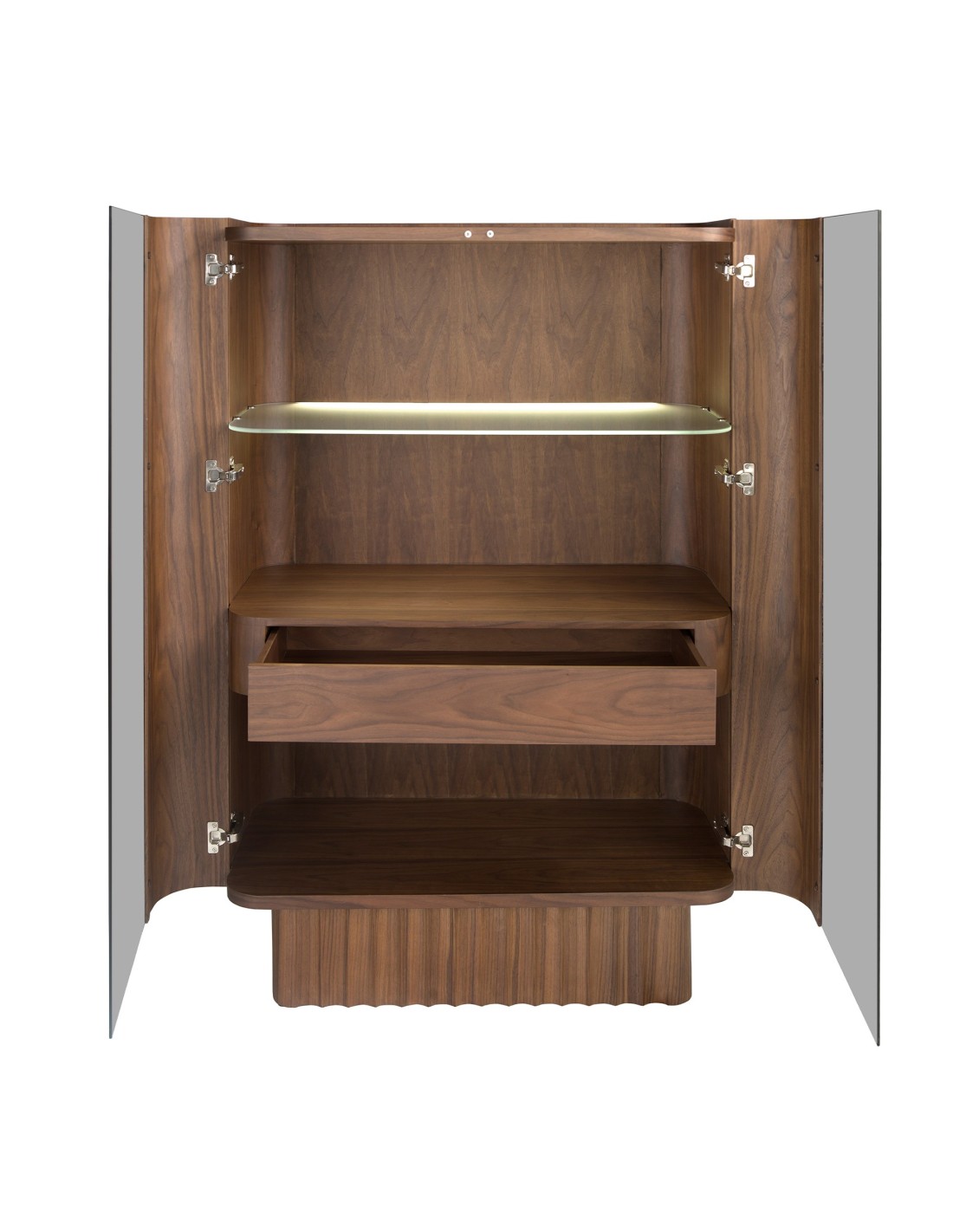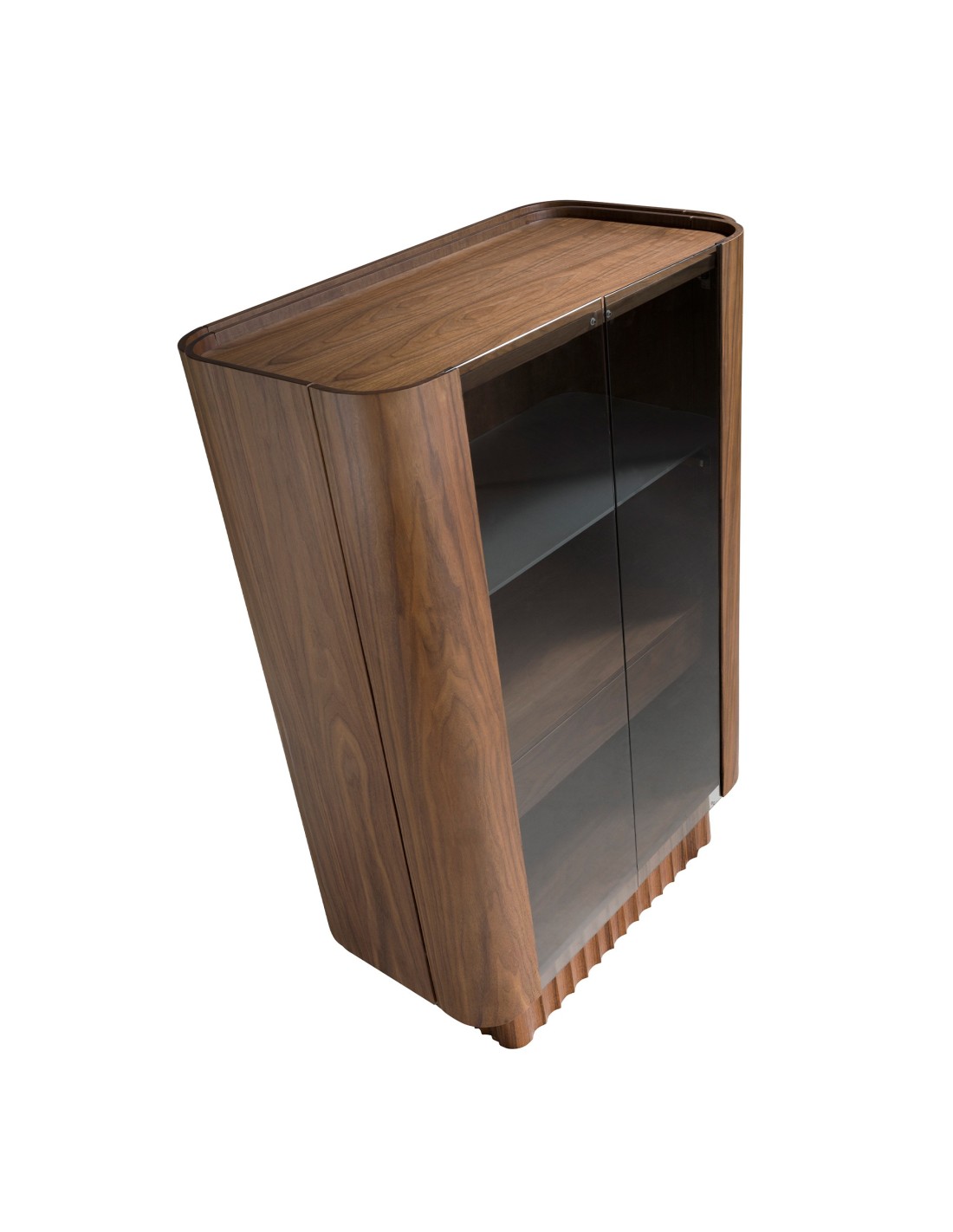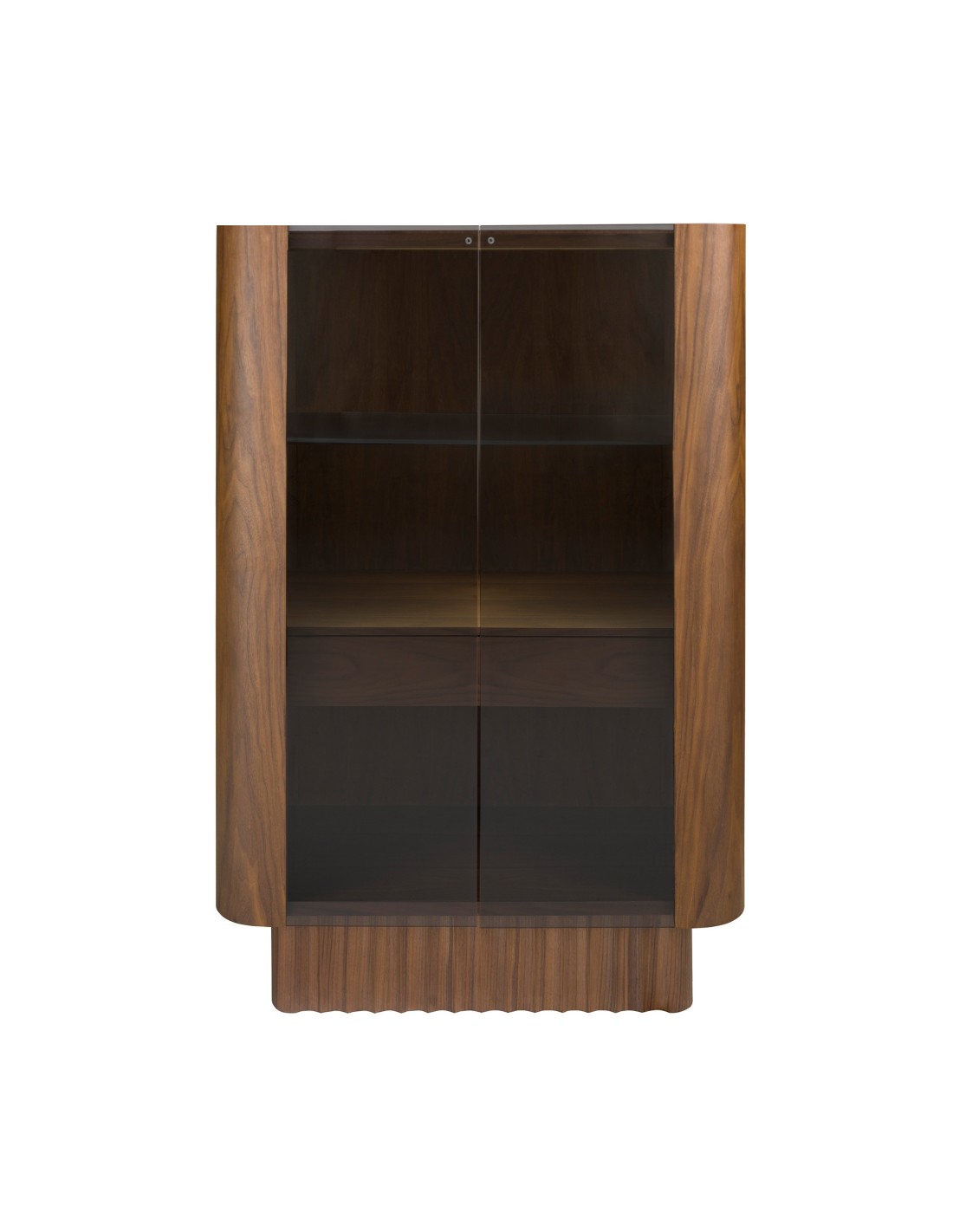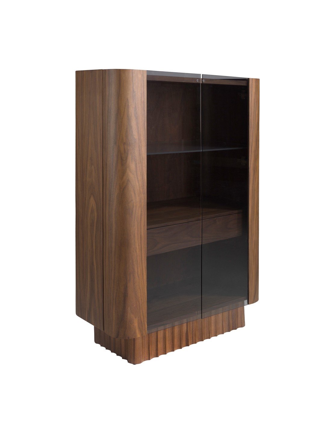 Aparador alto cristal templado, nogal con iluminación interior