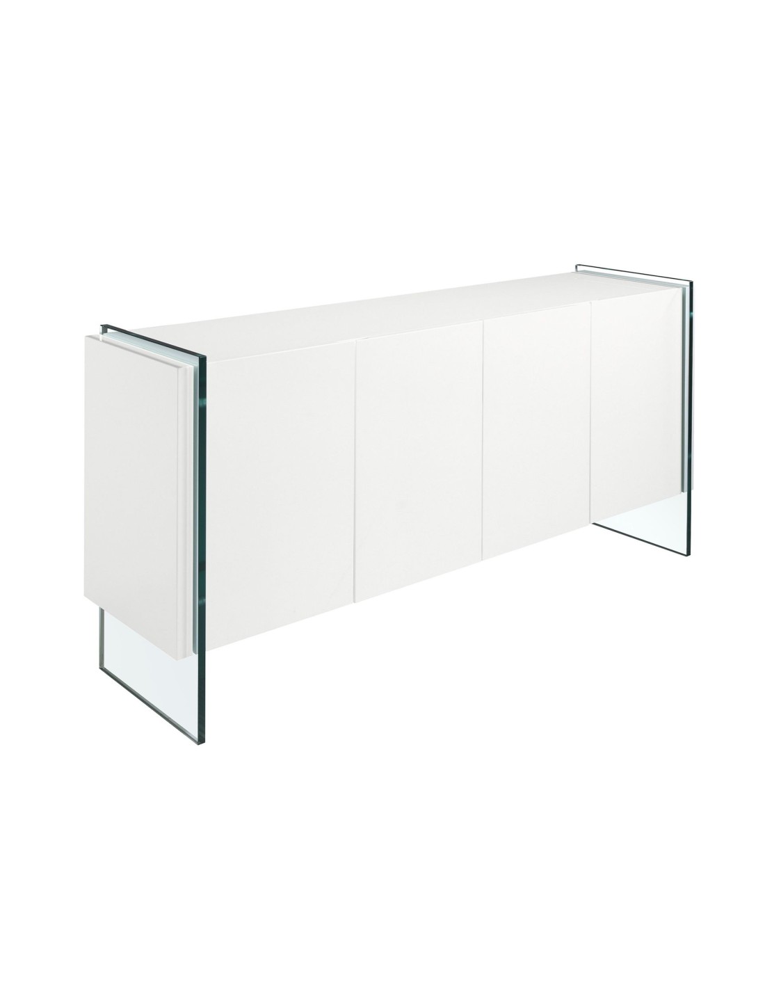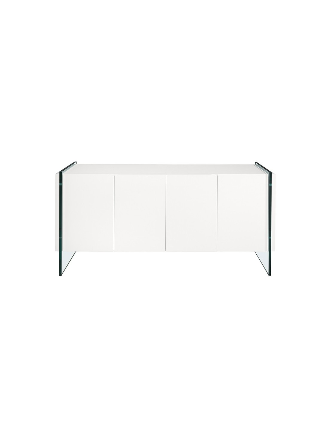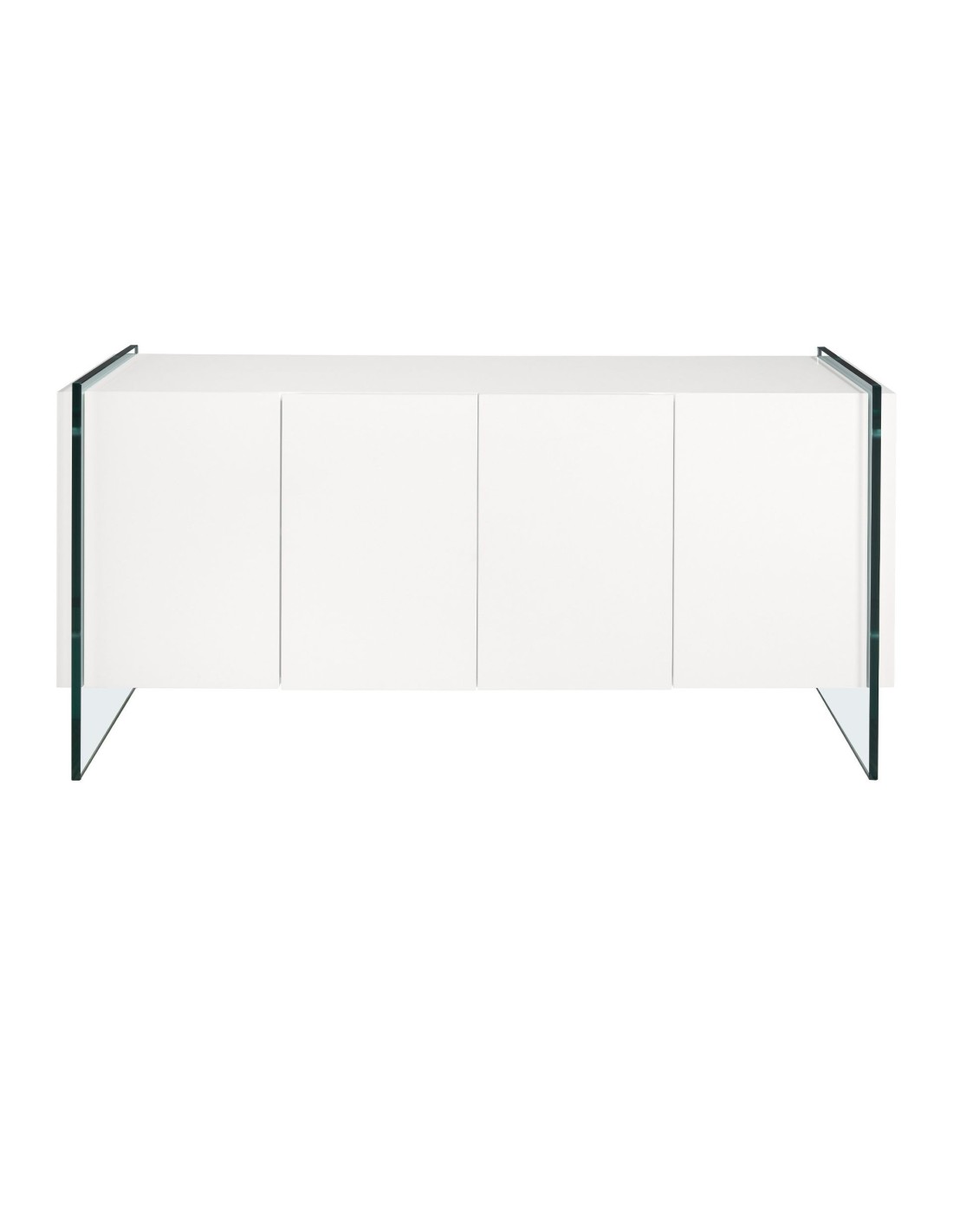 Aparador madera blanco y cristal templado Aparador de diseño moderno con estructura de madera de MDF color blanco y unas originales patas de cristal templado. Cuenta con un amplio espacio de almacenaje con 4 puertas con sistema de apertura uñero y cierre soft-closing. Medidas del producto: 170 x 43 x 77 cm.- Tanto por el lacado como por su diseño lineal y moderno, este aparador se convertirá en la pieza perfecta para su salón o comedor. - El acabado de sus patas en cristal templado creará una mayor sensación de luminosidad, a la vez que de mayor calidez. - Por su diseño de líneas rectas, aportará un aire de calma y calidez a cualquier estancia. - Gracias a sus baldas de madera, podrá disfrutar de un amplio espacio para guardar su vajilla o menaje de mesa. - Si lo que busca es un hogar tranquilo y relajado, este mueble auxiliar le ayudará a mantener el orden gracias a su gran espacio de almacenaje.