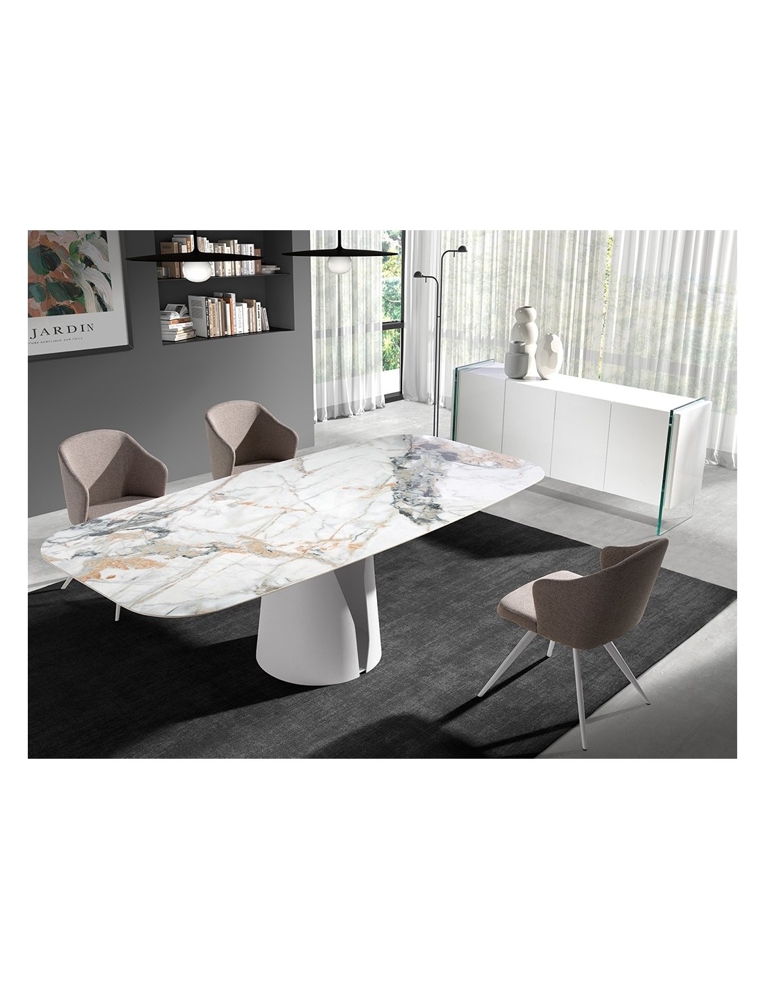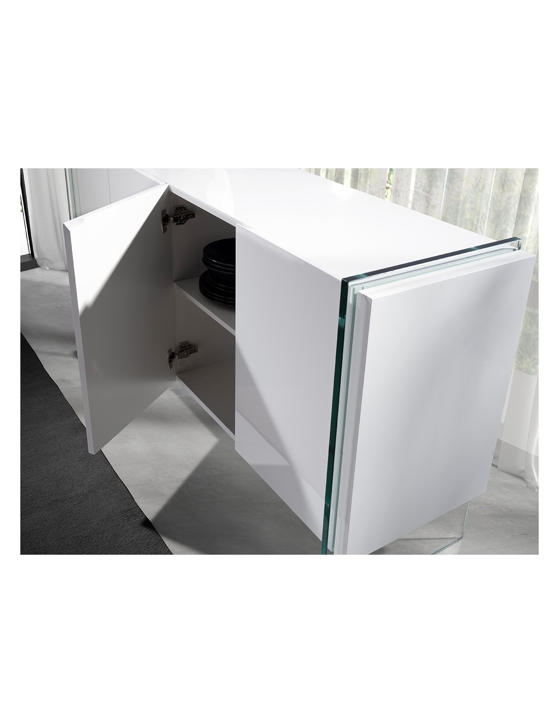 Aparador madera blanco y cristal templado