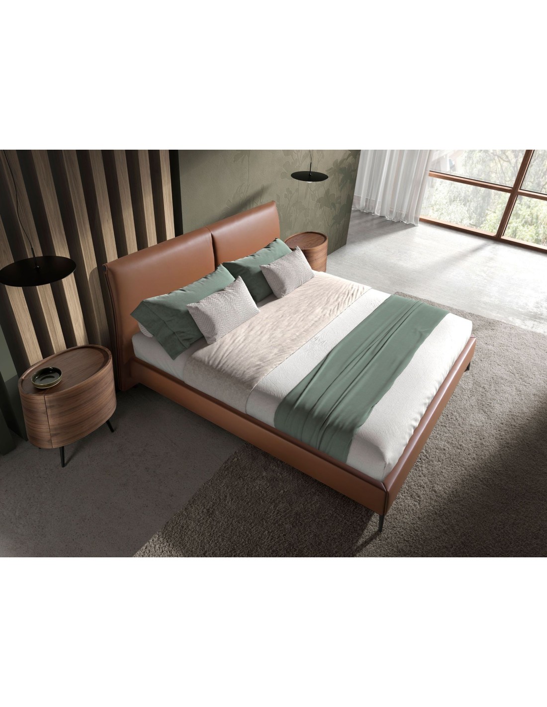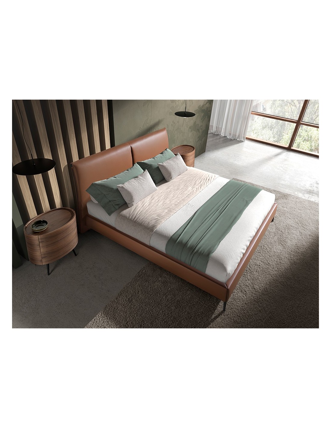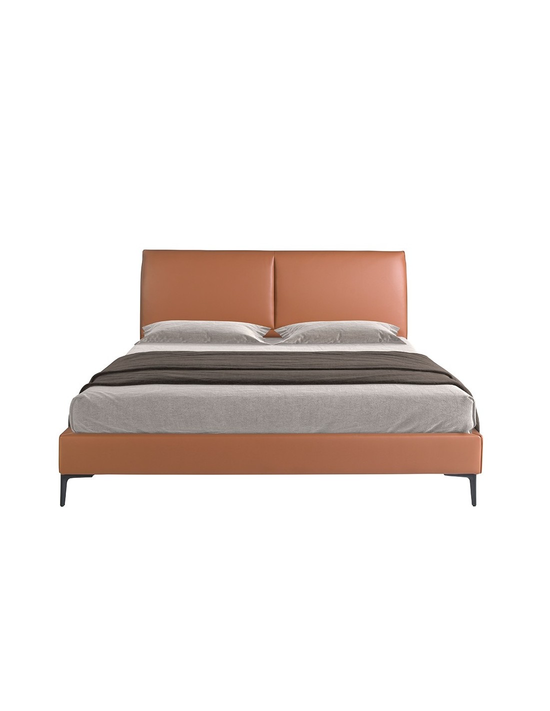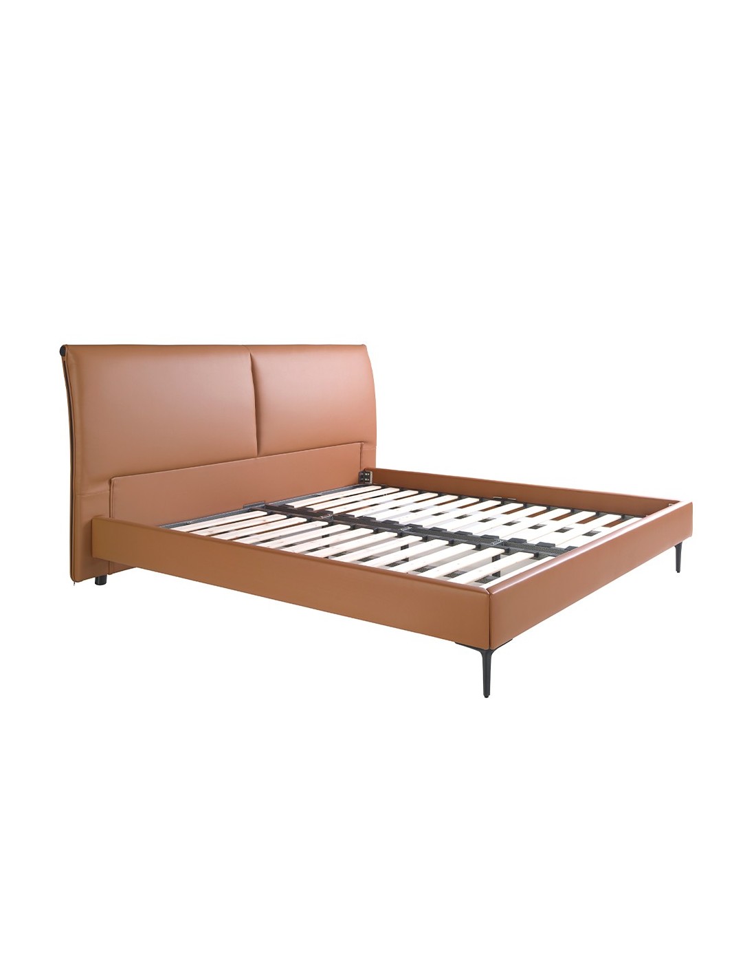 Cama polipiel color marrón Cama de matrimonio de diseño moderno con un original cabecero y estructura fabricada en polipiel color marrón, y patas de acero inoxidable pintado en epoxi negro. Una pieza clave para su dormitorio con la que aportará un estilo elegante y acogedor.Incluye un confortable somier multilamas fabricado en madera de pino.Cama compatible con colchón de 180 x 200 cm.Medidas del producto: 205 x 212 x 110 cm.- El tapizado en polipiel de esta cama se convertirá en el protagonista de su dormitorio, aportando calidez y vanguardia a su zona de descanso. - La combinación del tapizado con sus patas de acero, le ofrecen ese aire sofisticado y único de nuestra marca. - Su diseño elegante y moderno, la convierte en un mueble perfecto para cualquier tipo de dormitorio, creando un ambiente perfecto para relajarse y descansar. - Todas nuestras camas están fabricadas con materiales de la más alta calidad, y con una estructura interna de madera de pino natural. - Cama compatible con colchón de 180x200 cm.
