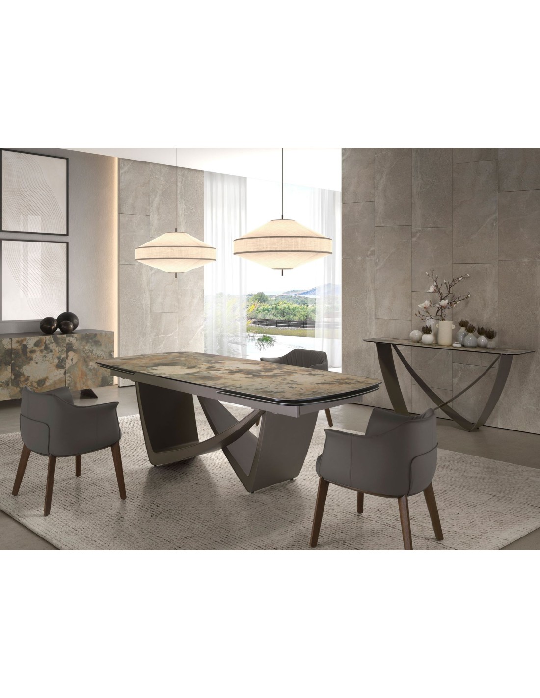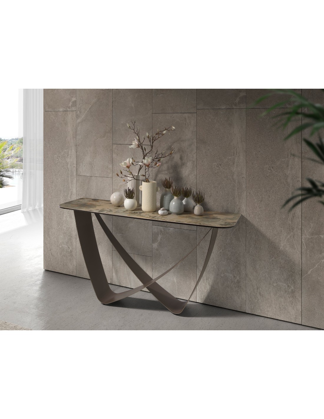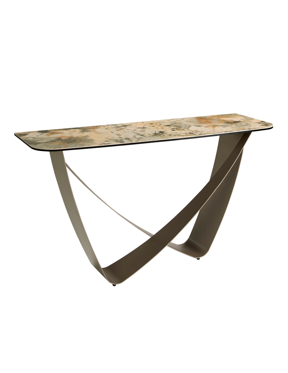 Consola rectangular mármol porcelánico y acero taupé metalizado