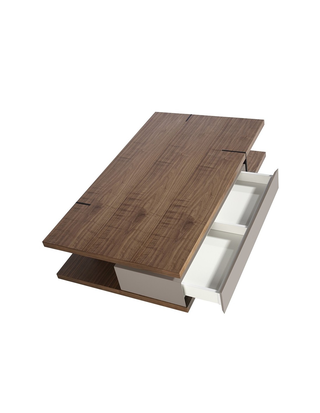 Mesa centro rectangular nogal, madera beige y acero negro Mesa centro rectangular de diseño moderno fabricada en madera de MDF color beige y una elegante tapa de madera chapada en nogal natural. Su estructura de patas de acero inoxidable pintado en epoxi negro, aporta el toque de modernidad y vanguardia que busca para su hogar. Cuenta con un amplio espacio de almacenaje con 1 cajón con sistema de apertura uñero y cierre soft-closing. Medidas del producto: 140 x 80 x 35 cm.- Gracias a su tapa de madera chapada en nogal natural de 0,5 mm de espesor podrá crear un ambiente cálido, acogedor y repleto de estilo. - Su acabado en madera MDF lacada en color es perfecta para combinar con las últimas tendencias en decoración. - Su diseño de líneas rectas le permitirá conseguir un ambiente de estilo vanguardista a la vez que sofisticado. - Tanto por su diseño como por su espacio de almacenaje, esta mesa auxiliar es perfecta para crear ambientes amplio y cálidos, a la vez que mantener todo en su sitio. - Fiel a las últimas tendencias en decoración, el acero negro le permitirá crear un espacio único, personal y con carácter.