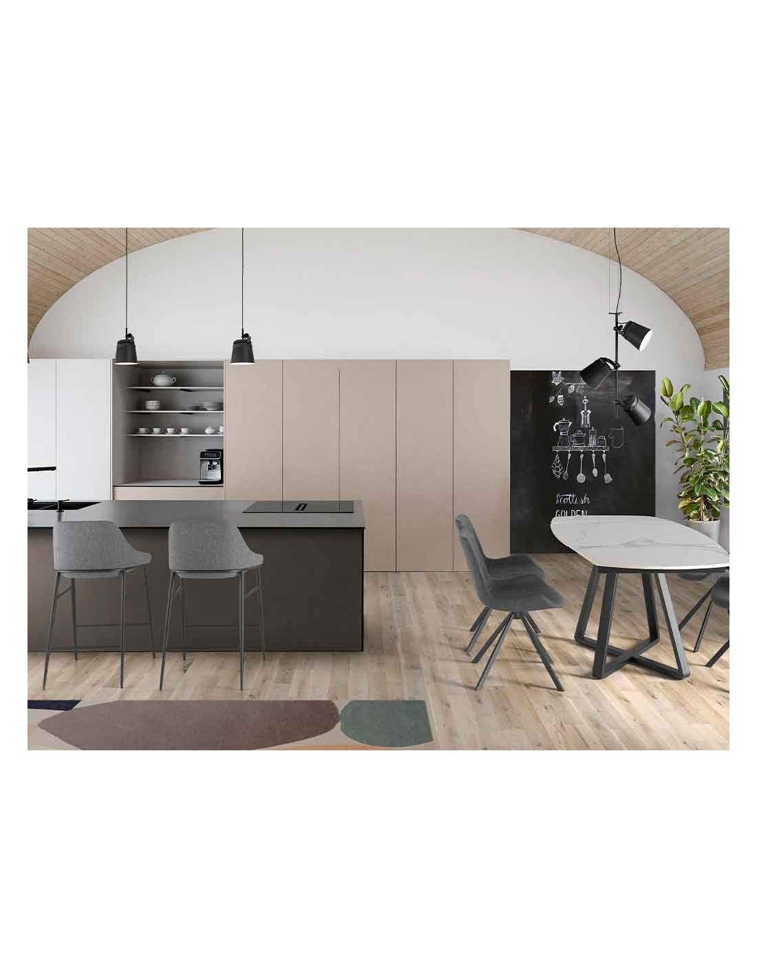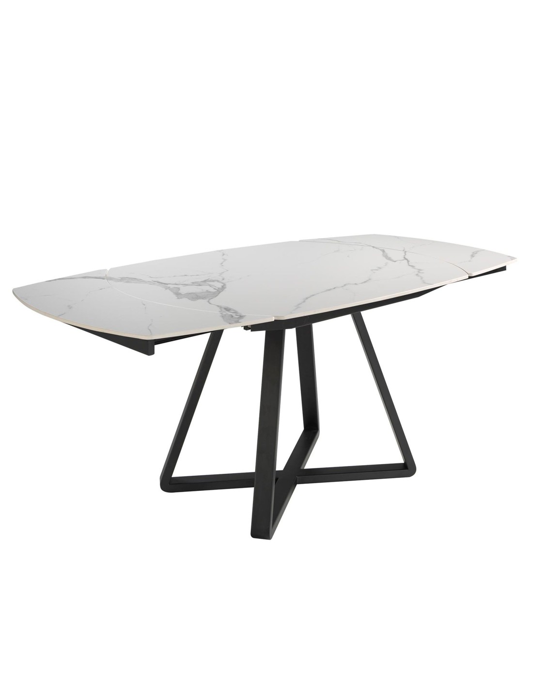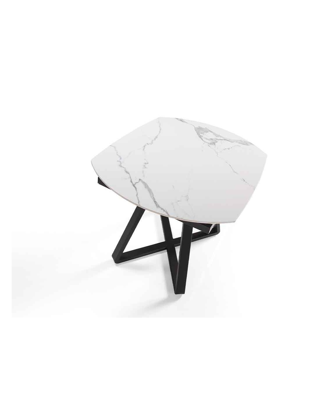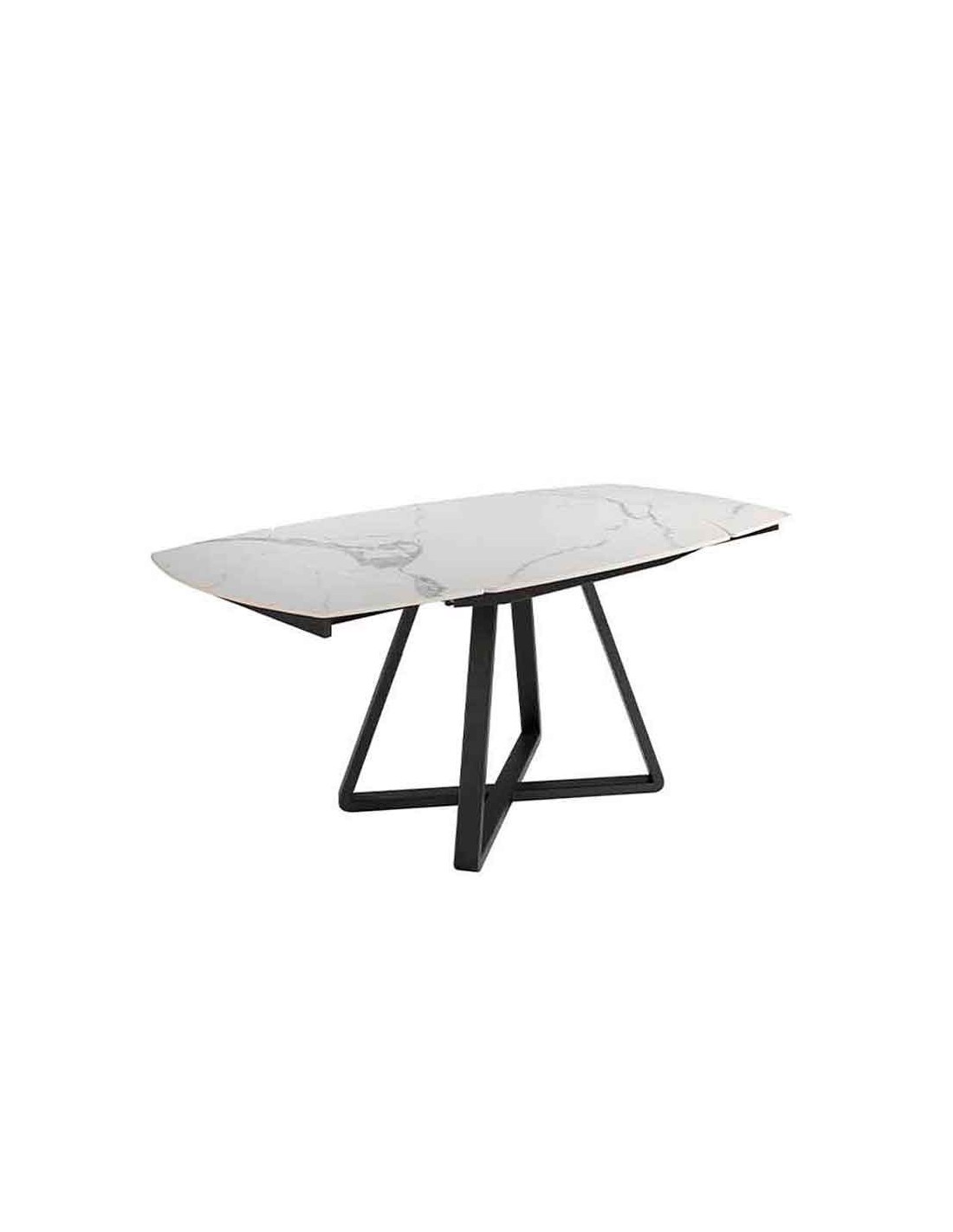 Mesa comedor extensible ovalada barril mármol porcelánico y acero negro