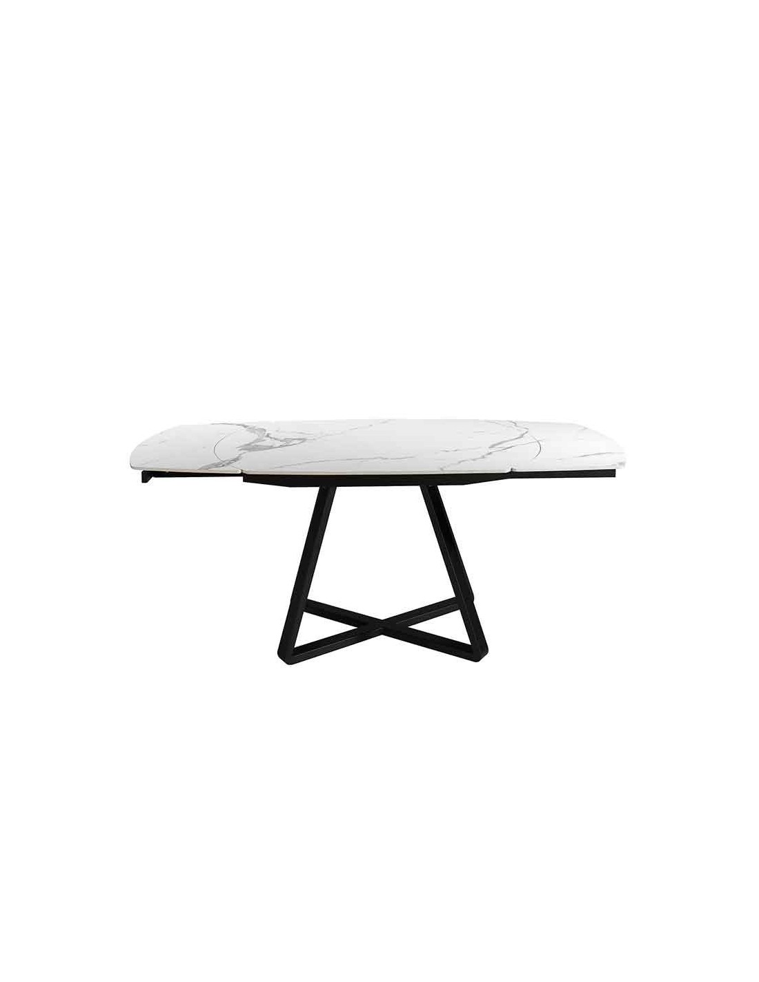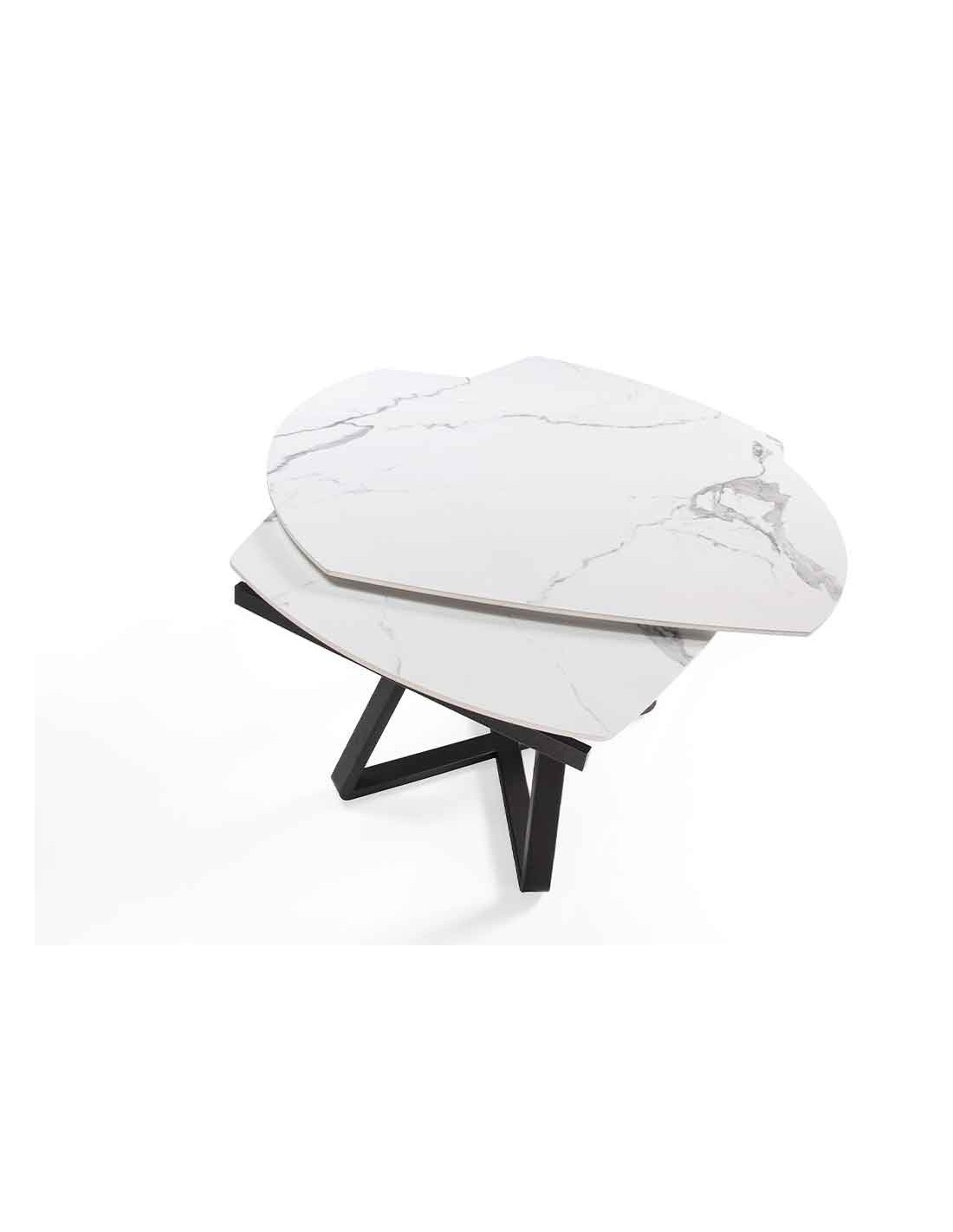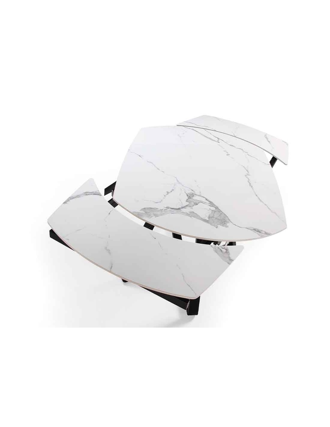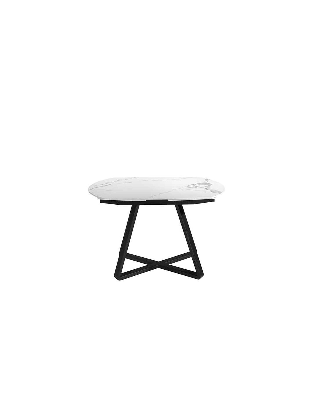 Mesa comedor extensible ovalada barril mármol porcelánico y acero negro Mesa comedor extensible ovalada barril de diseño moderno con tapa de mármol porcelánico blanco con vetas en color gris en acabado brillo. Sus patas de acero inoxidable color negro así como su adaptabilidad, la convierten en un mueble totalmente funcional y versátil para el día a día.Medidas del producto: Ø120 x 90 x 77 cm.Esta mesa comedor cuenta con 2 extensibles de 29 cm., pudiendo ampliarla de 120 a 178 cm.- Su tapa de mármol porcelánico es resistente y duradera, ofreciendo además un toque de vanguardia y elegancia al ambiente. - La originalidad de su estructura aúna modernidad y robustez, así como la mayor comodidad para sus comensales. - El perfil de la tapa pulido de esta mesa de comedor ofrece un acabado de alta calidad, siendo además, sinónimo de comodidad y elegancia. - Su extensible giratorio convierte esta mesa comedor de redonda a ovalada, siendo una elección perfecta para su comedor de diseño moderno. - Apta para un máximo de 6 comensales.