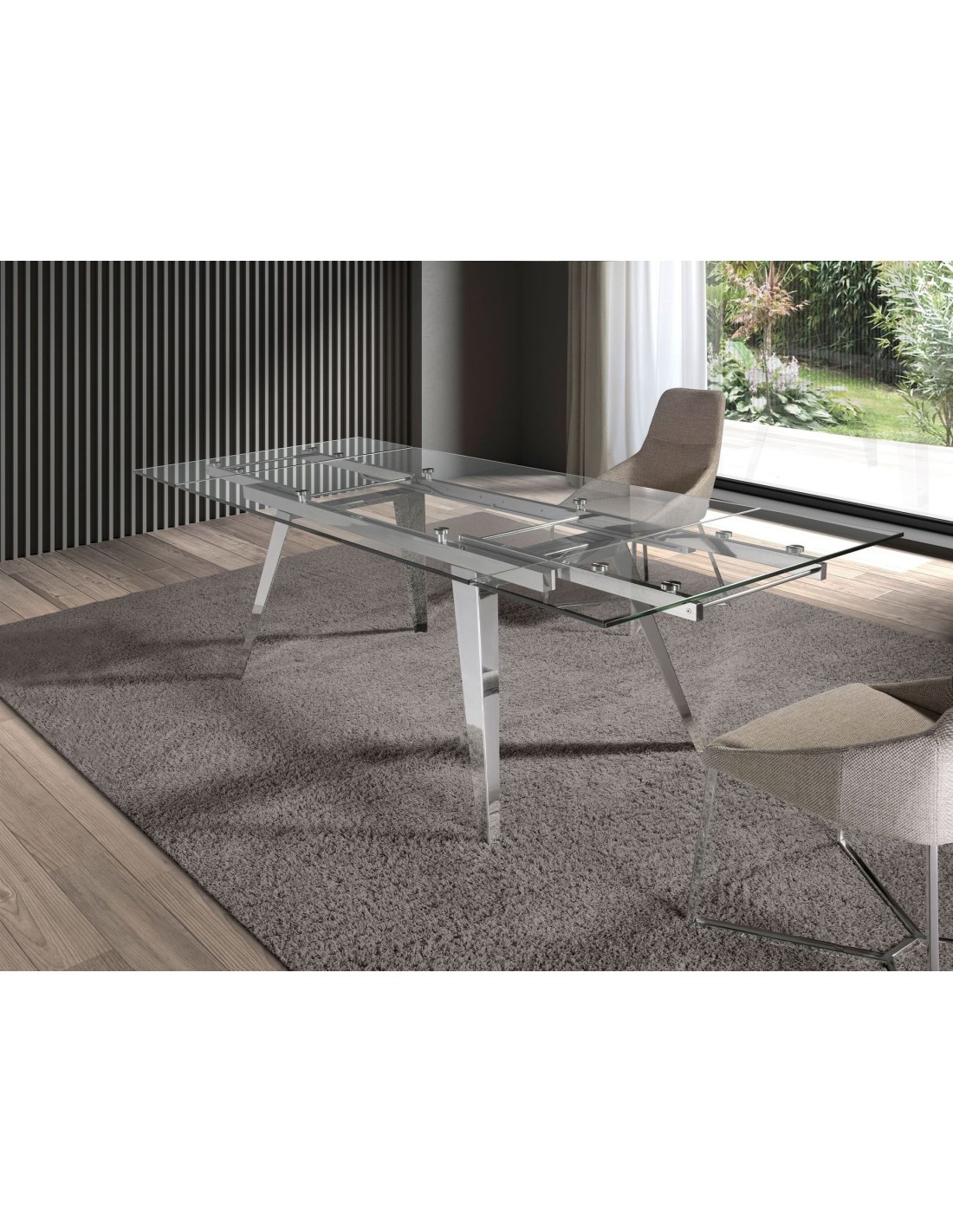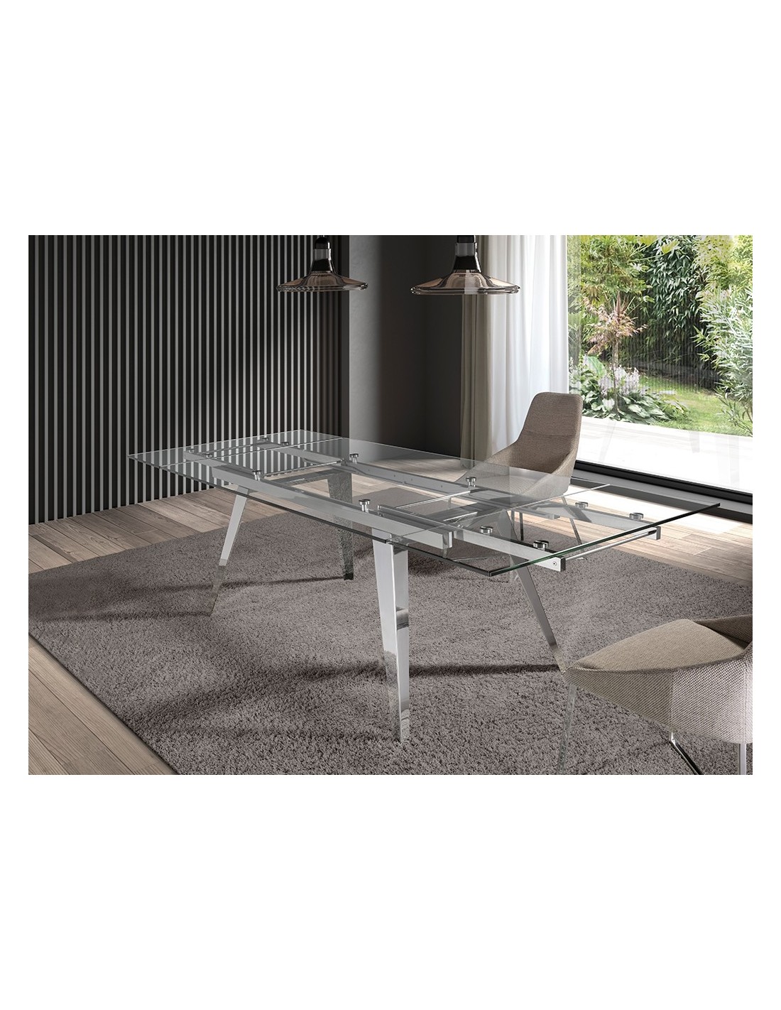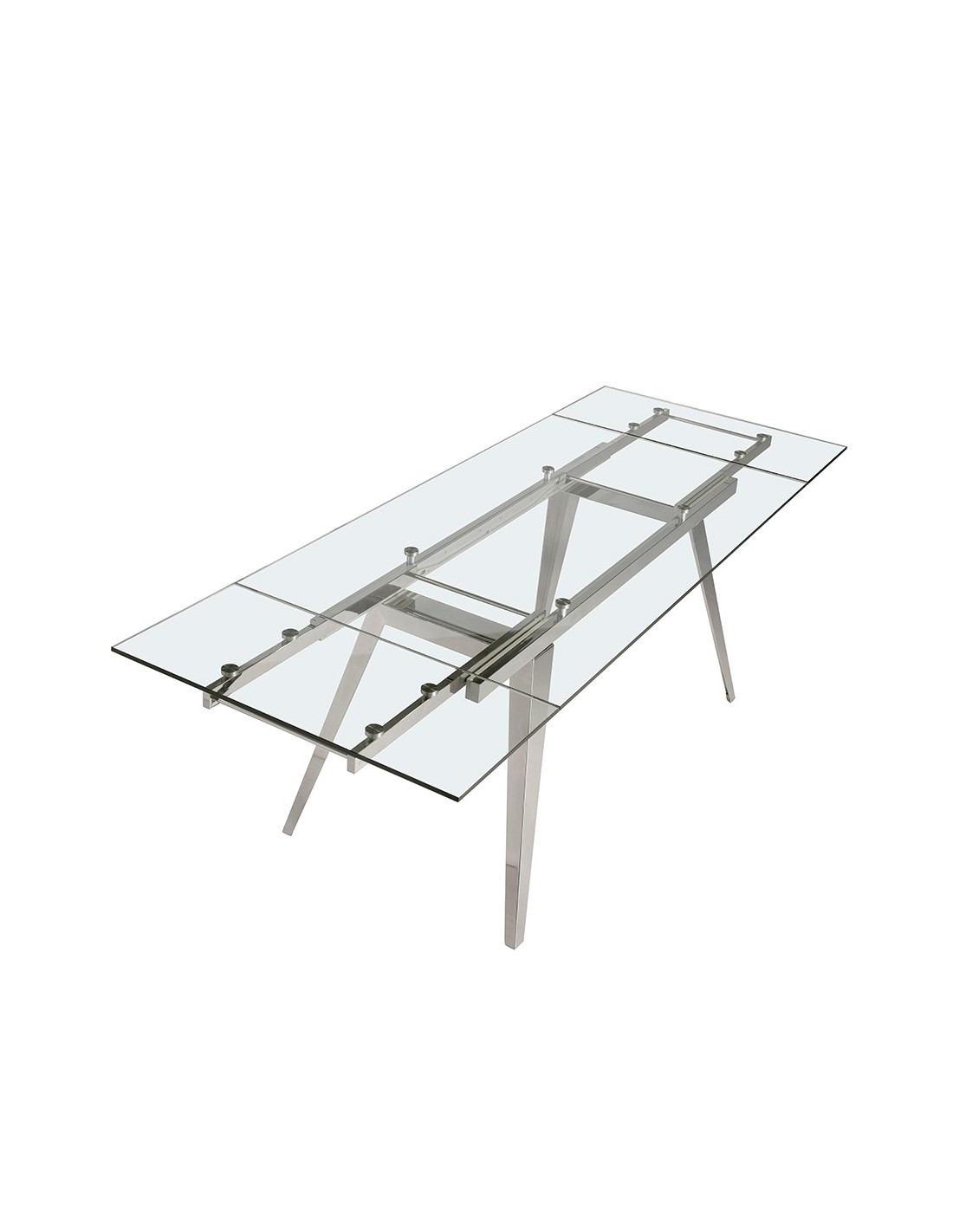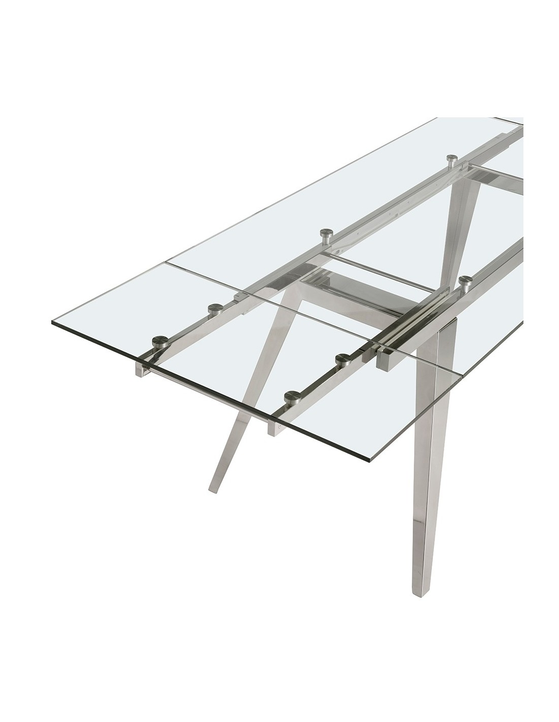 Mesa comedor extensible rectangular cristal templado y acero cromado