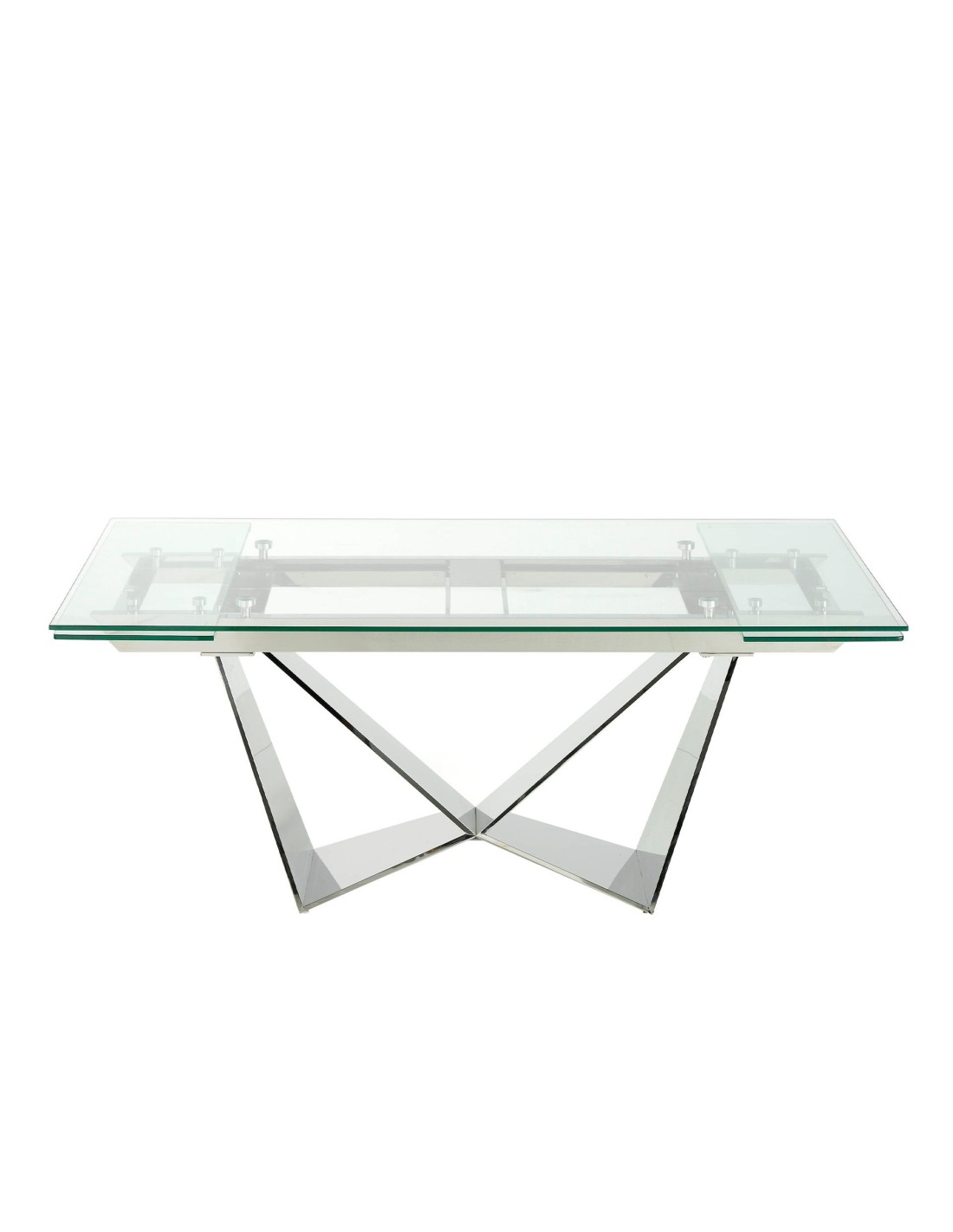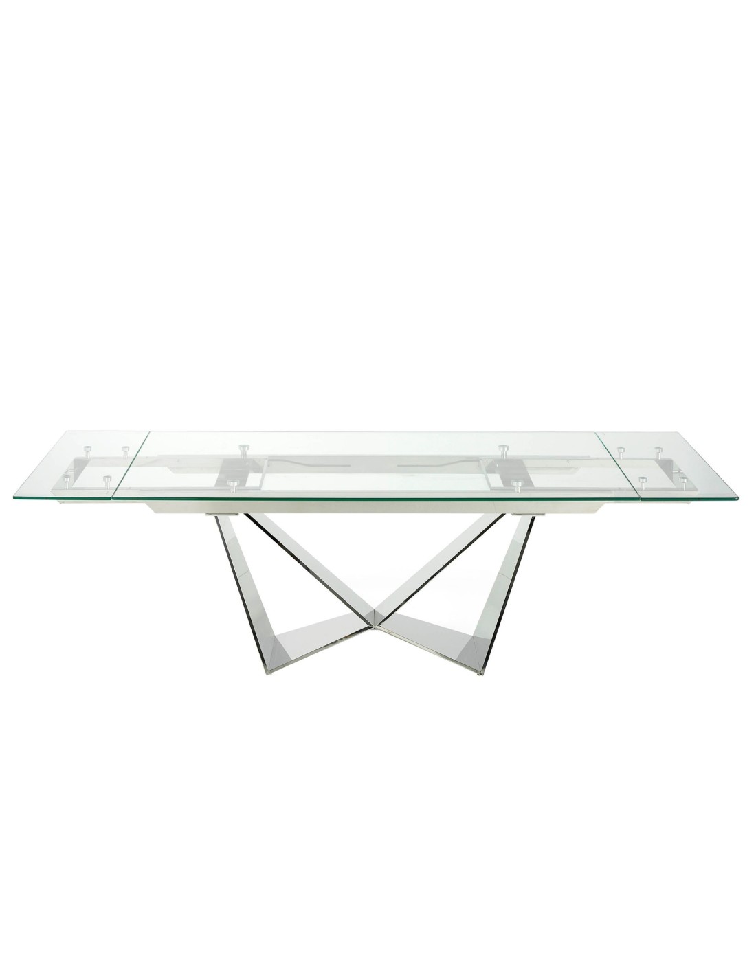 Mesa comedor extensible rectangular cristal templado y acero cromado
