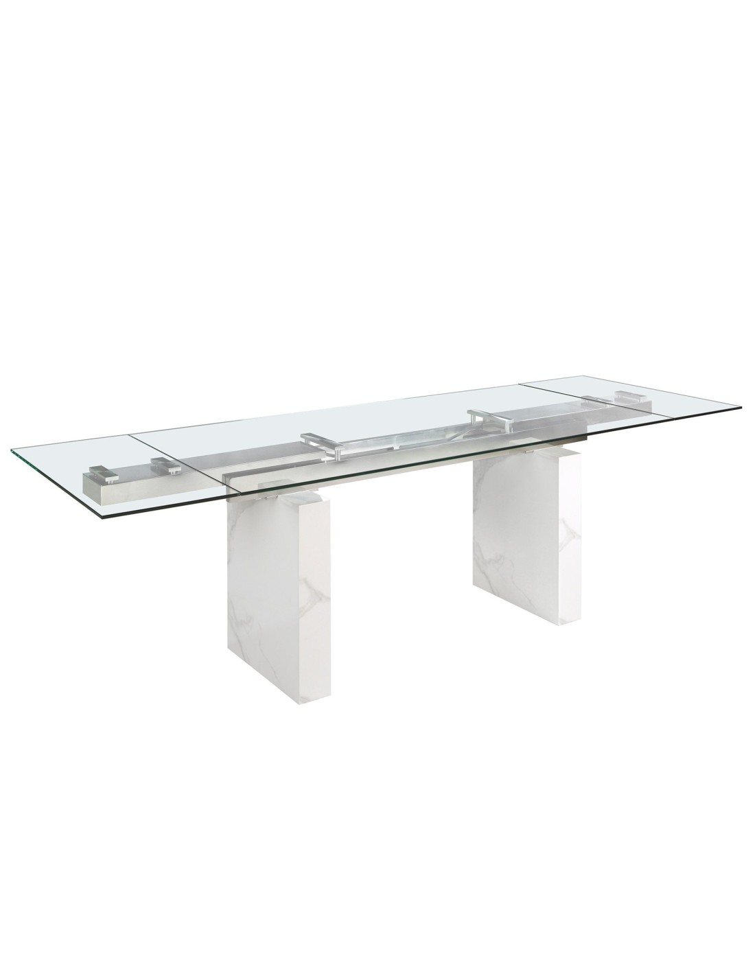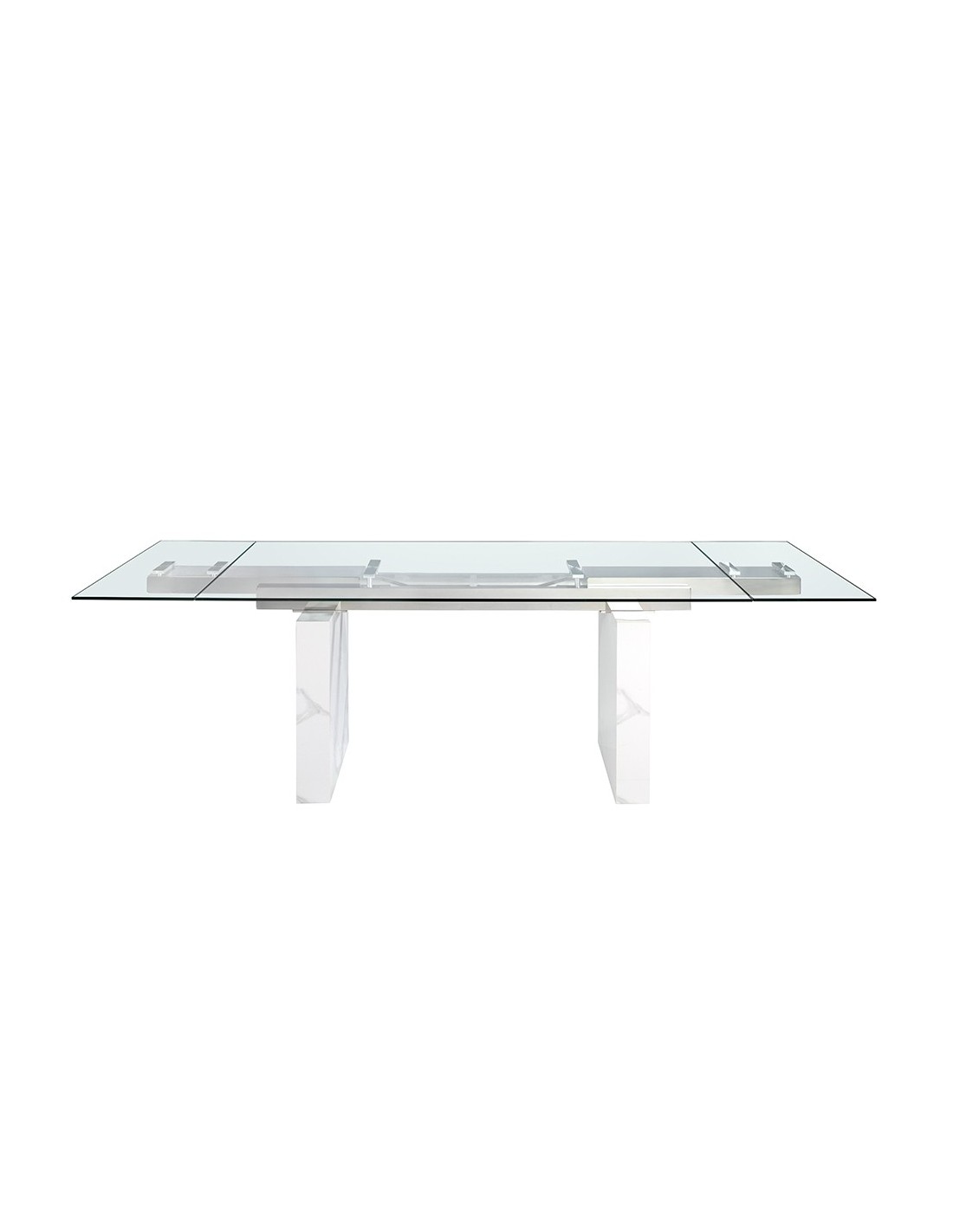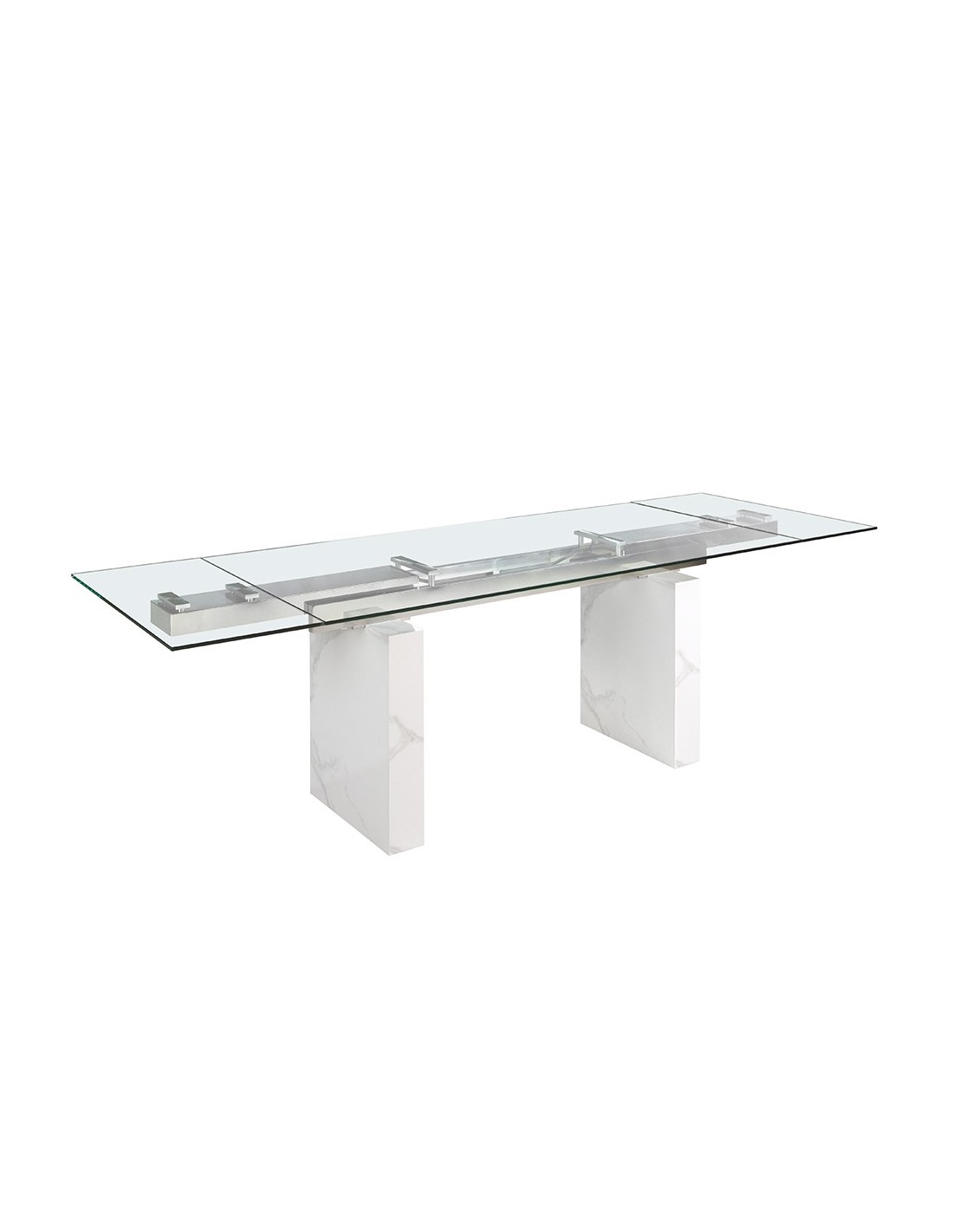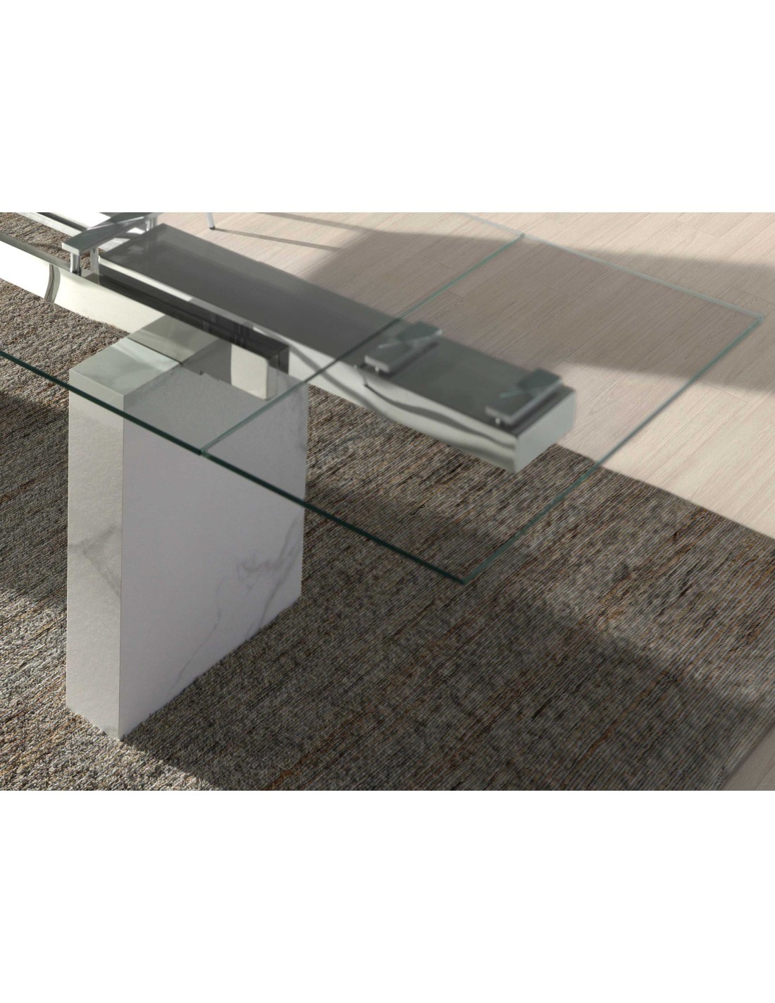 Mesa comedor extensible rectangular cristal templado, mármol porcelánico
