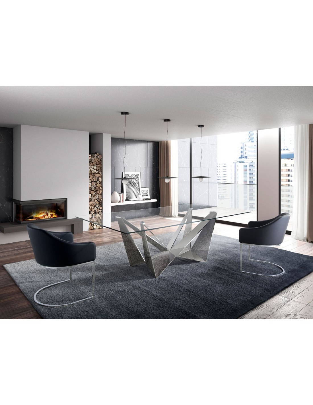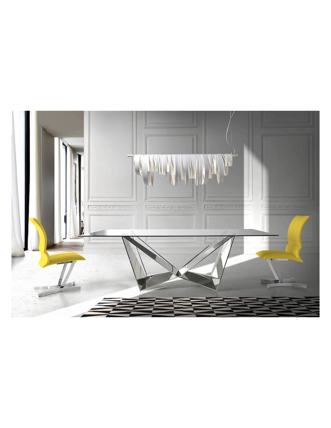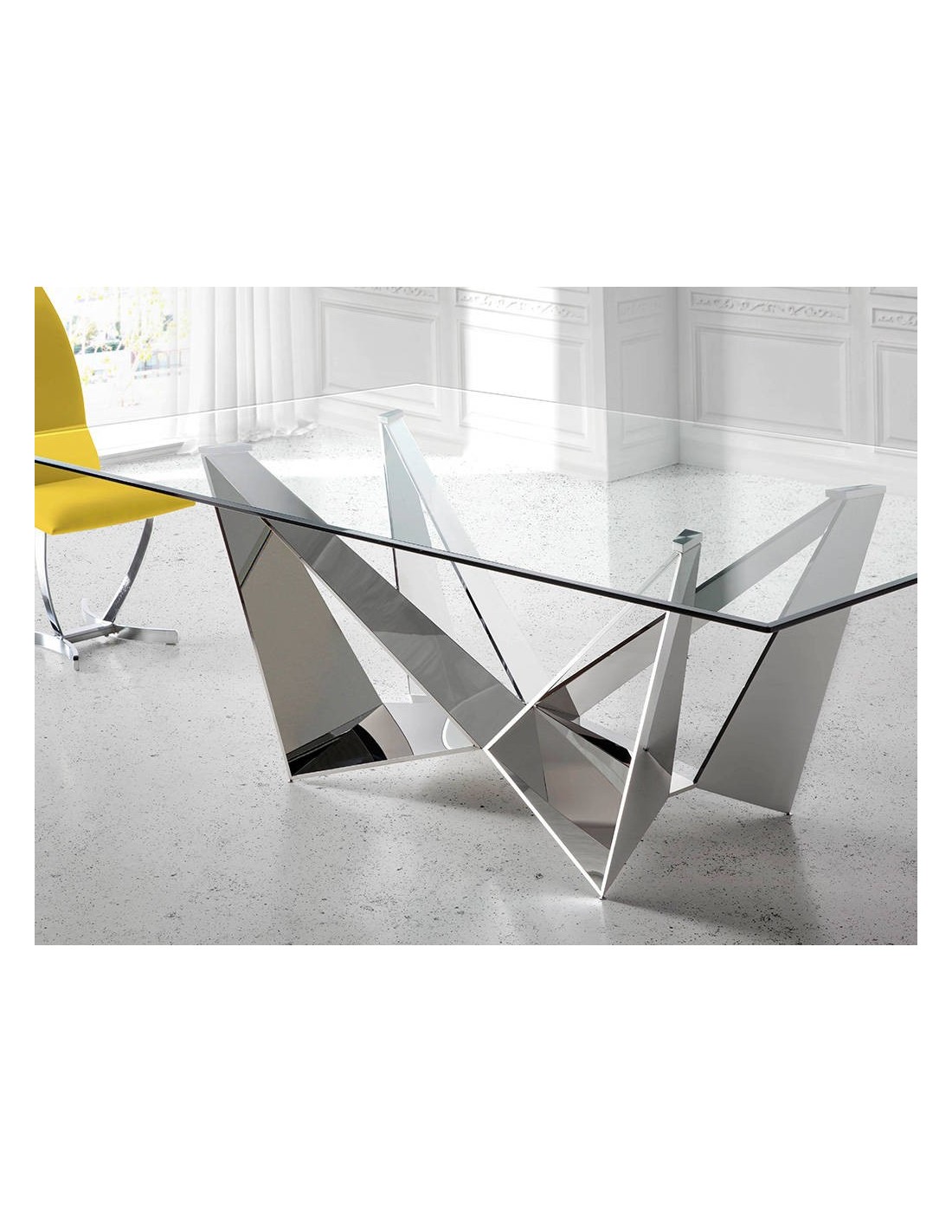 Mesa comedor rectangular cristal templado y acero cromado