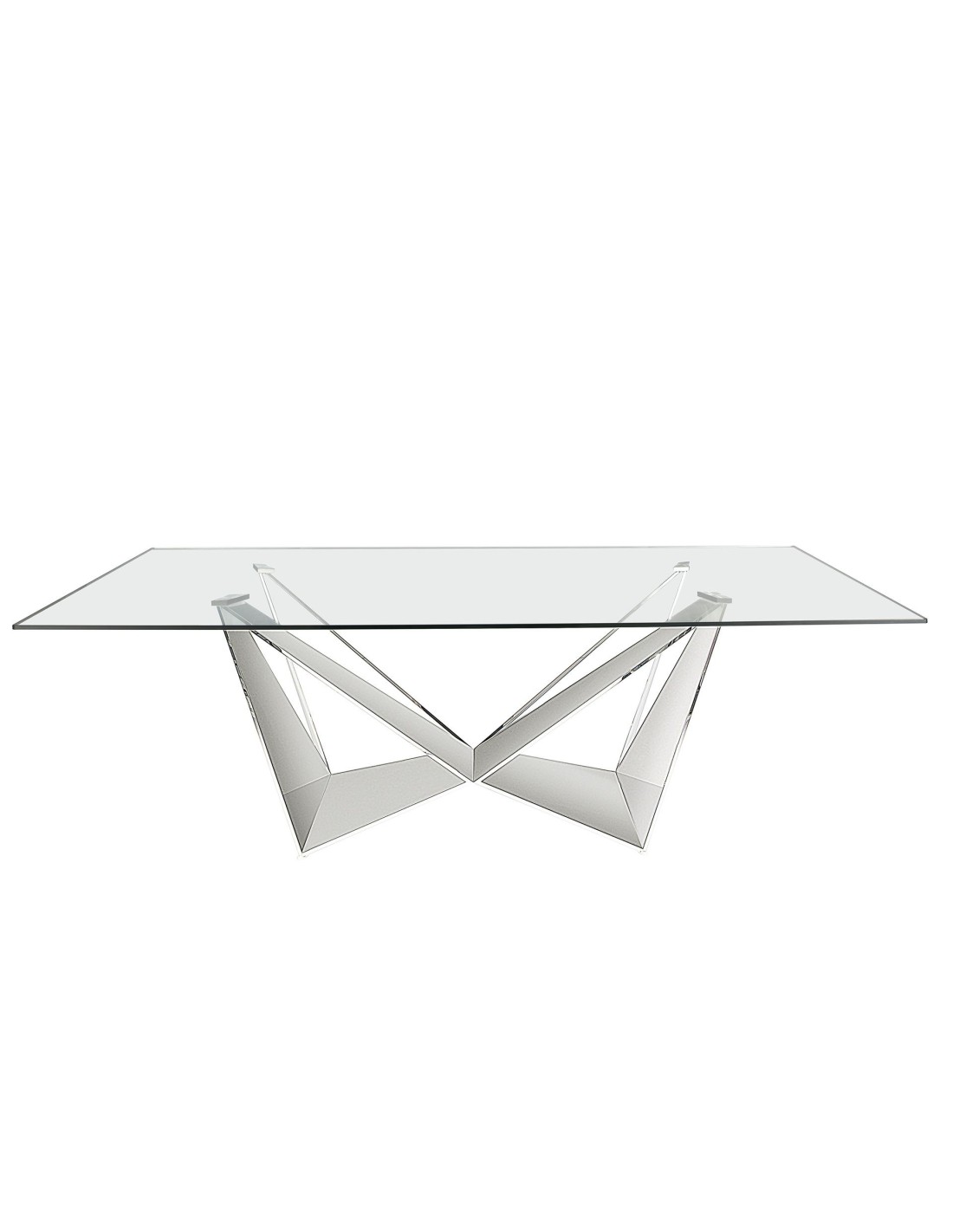 Mesa comedor rectangular cristal templado y acero cromado Mesa comedor rectangular de diseño moderno con tapa fija de cristal templado. Sus originales patas de acero inoxidable cromado son elementos claves a destacar de su diseño.Medidas del producto: 240 x 120 x 75 cm.- Su tapa de cristal templado de 12 mm de espesor es resistente, duradera, y favorece la sensación de amplitud en el espacio. - La originalidad de sus patas aúnan el estilo más vanguardista de nuestra marca con la mayor calidad y comodidad para sus comensales. - El perfil de la tapa pulido de esta mesa de comedor ofrece un acabado de alta calidad, siendo además, sinónimo de comodidad y elegancia. - El diseño versátil a la vez que funcional, convertirá esta mesa en la protagonista de su comedor. - Apta para un máximo de 8 comensales.