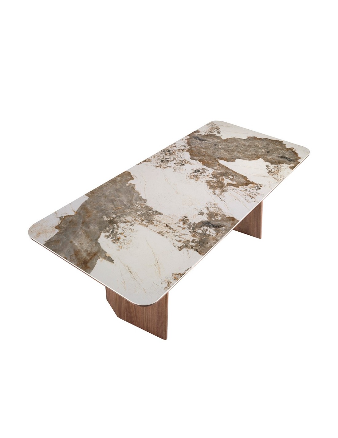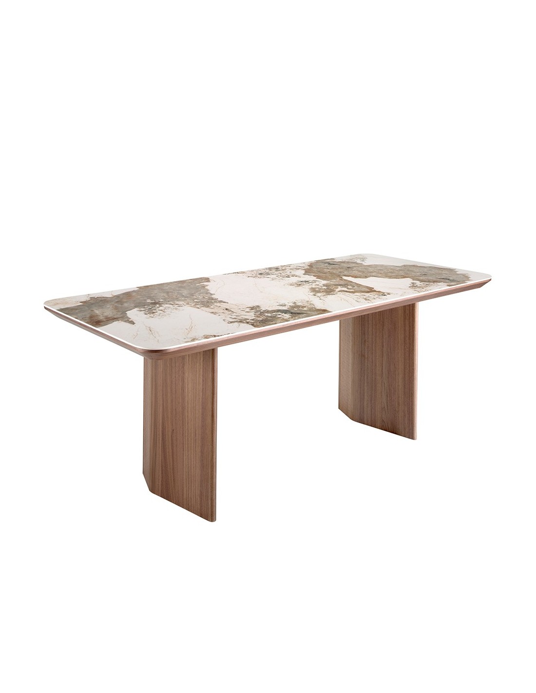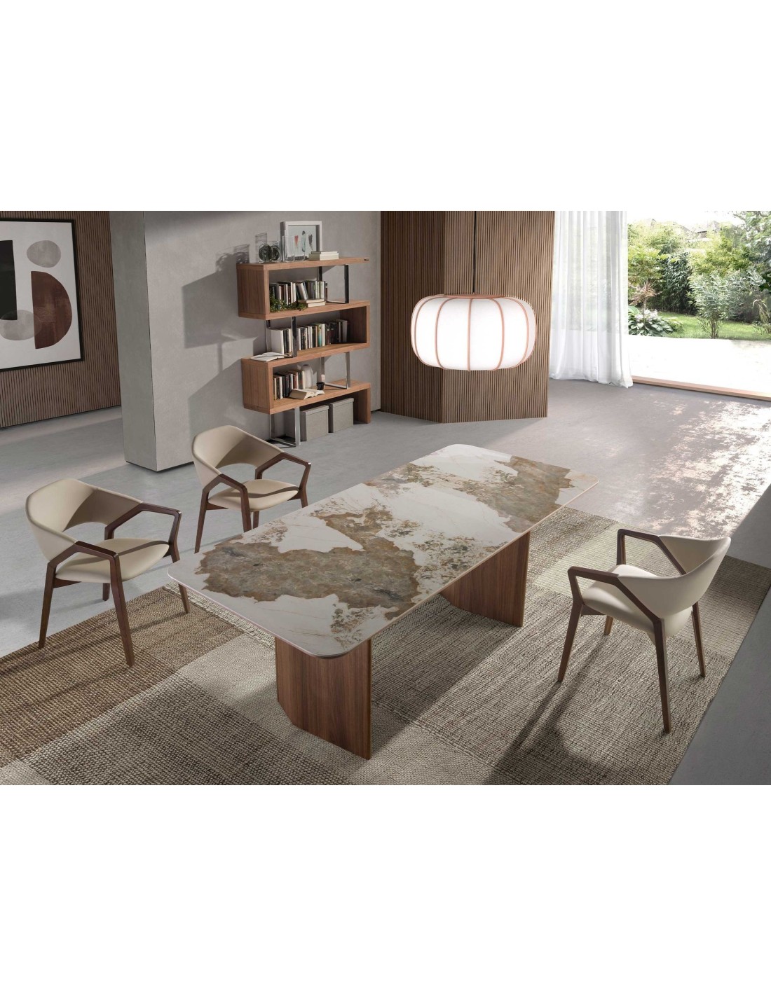 Mesa comedor rectangular mármol porcelánico y nogal