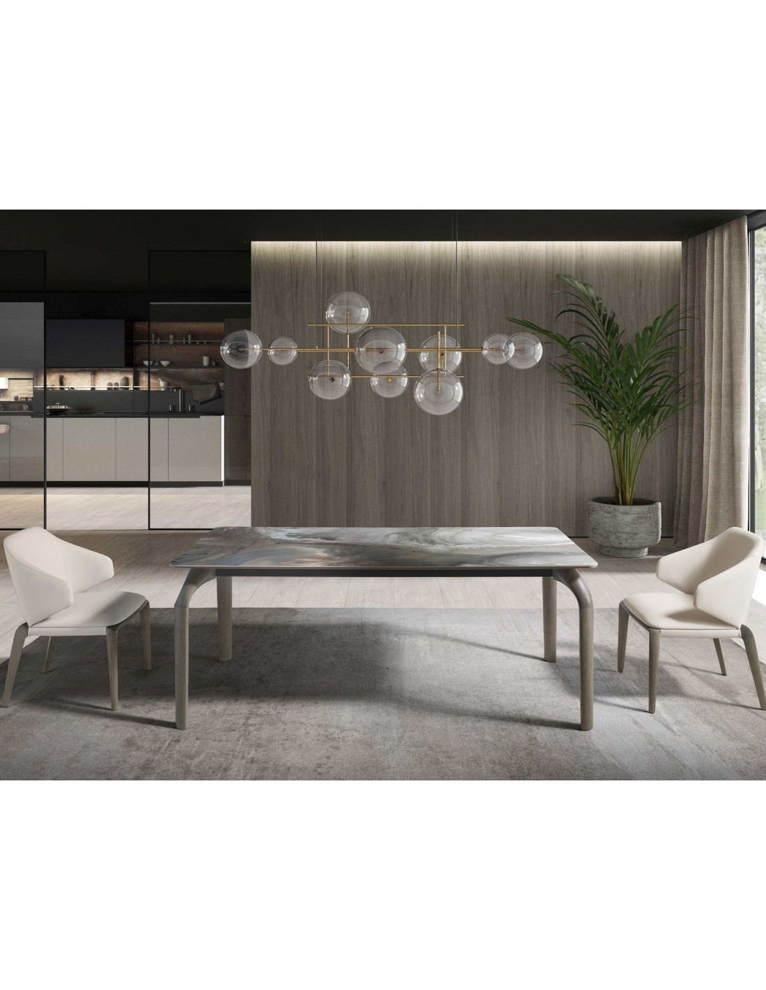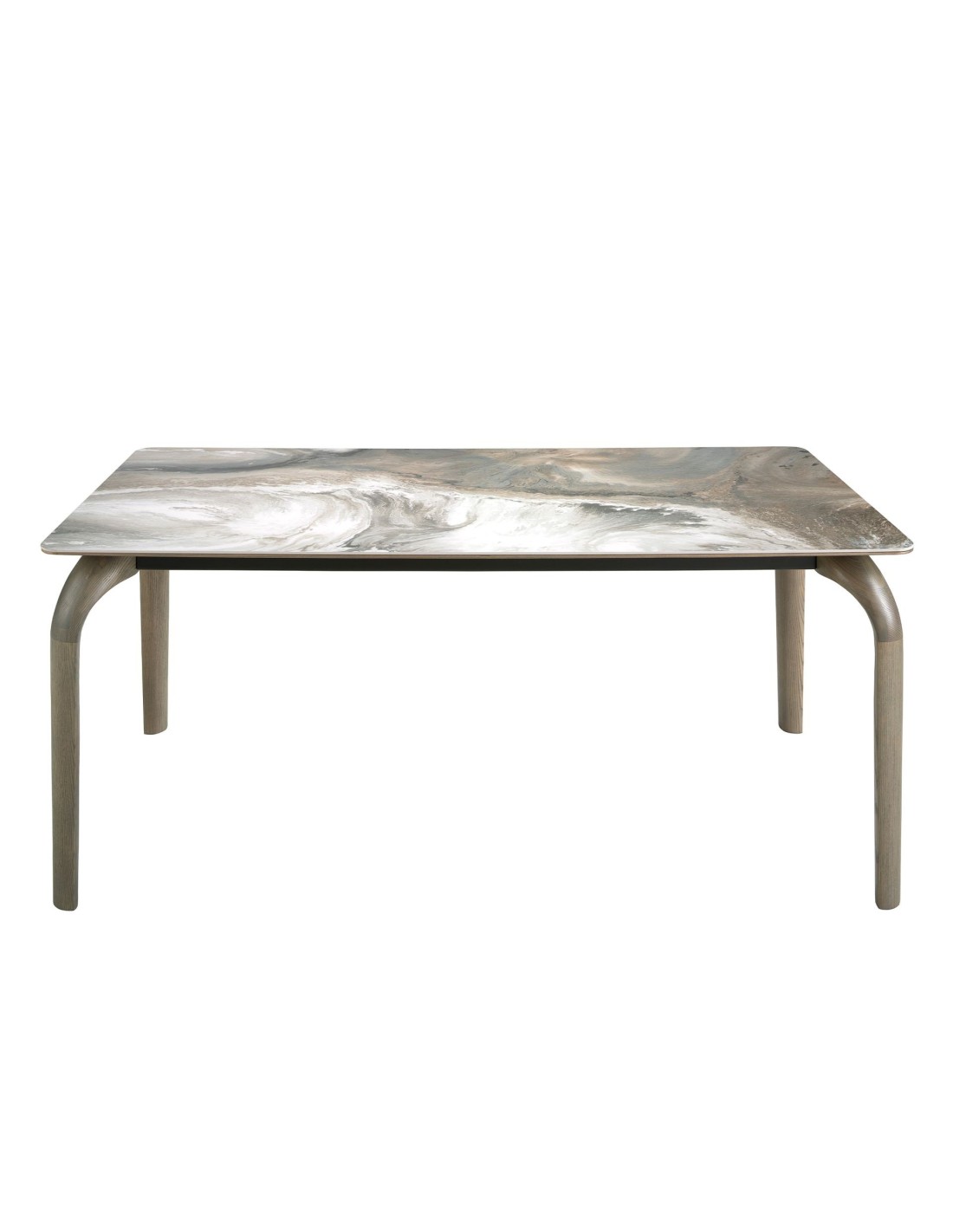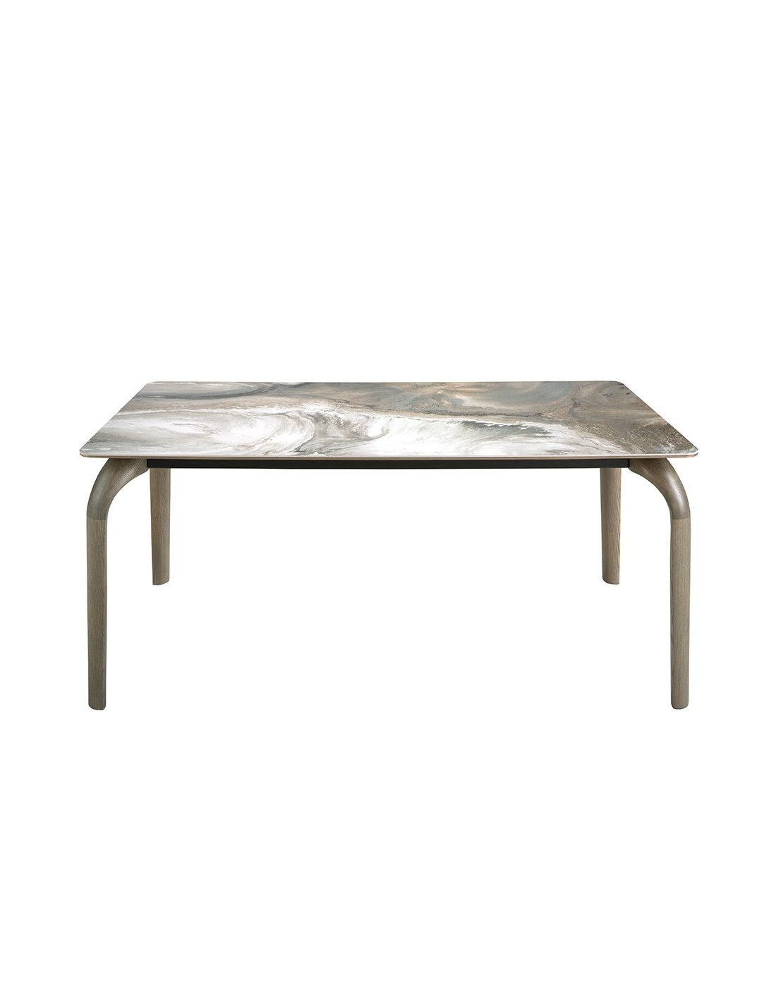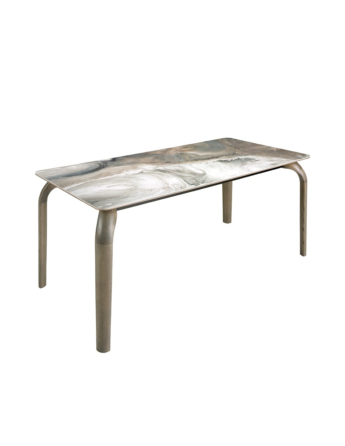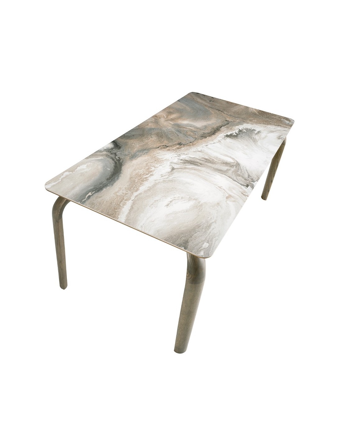 Mesa comedor rectangular mármol porcelánico y roble ceniza Mesa comedor rectangular de diseño moderno con tapa fija de mármol porcelánico en tonalidades blancas, marrones y grises brillo. Sus originales patas de madera de roble en color ceniza son elementos claves a destacar de su diseño.Medidas del producto: 180 x 90 x 76 cm.- Su tapa de mármol porcelánico es resistente y duradera, ofreciendo además un toque de vanguardia y elegancia al ambiente. - Sus patas robustas y de carácter lineal permite combinarla con cualquier silla de nuestro catálogo, sin molestar o interferir en la comodidad de los comensales. - El perfil de la tapa biselado de esta mesa de comedor ofrece la máxima calidad en acabado y comodidad. - Apta para un máximo de 10 comensales.