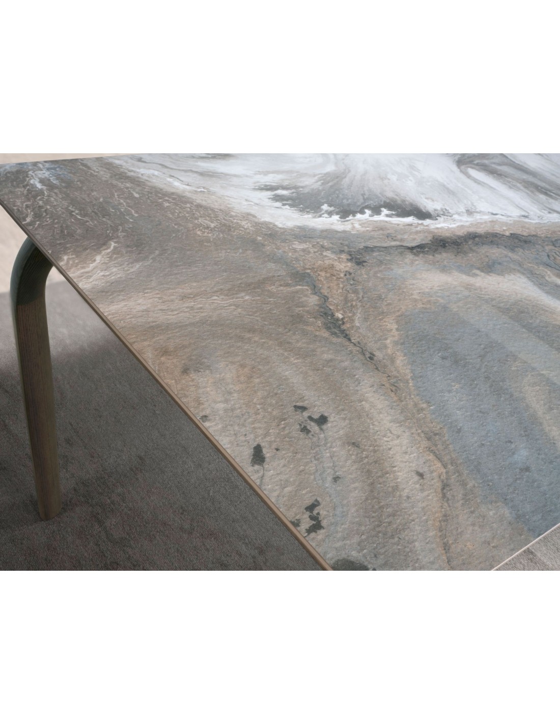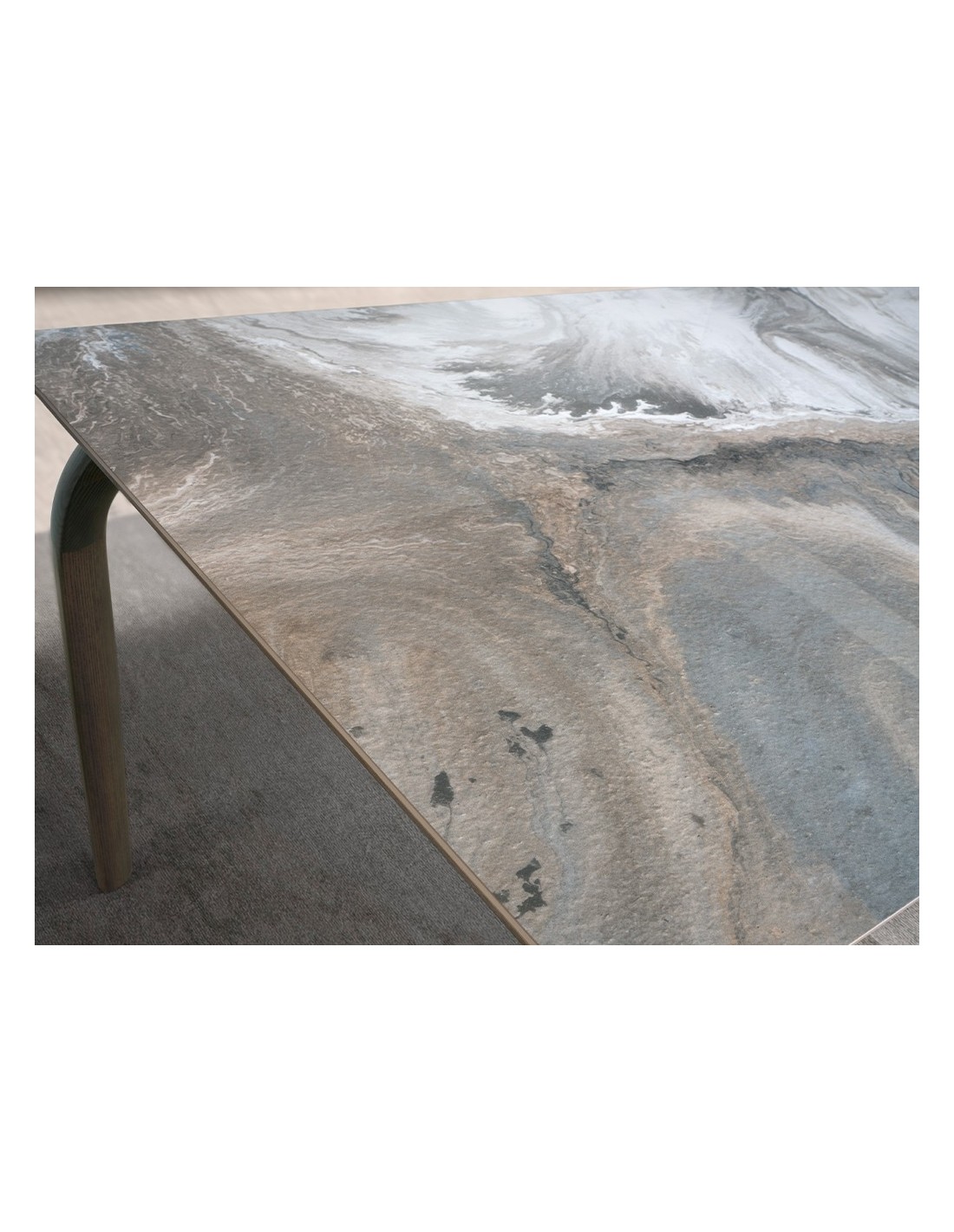 Mesa comedor rectangular mármol porcelánico y roble ceniza