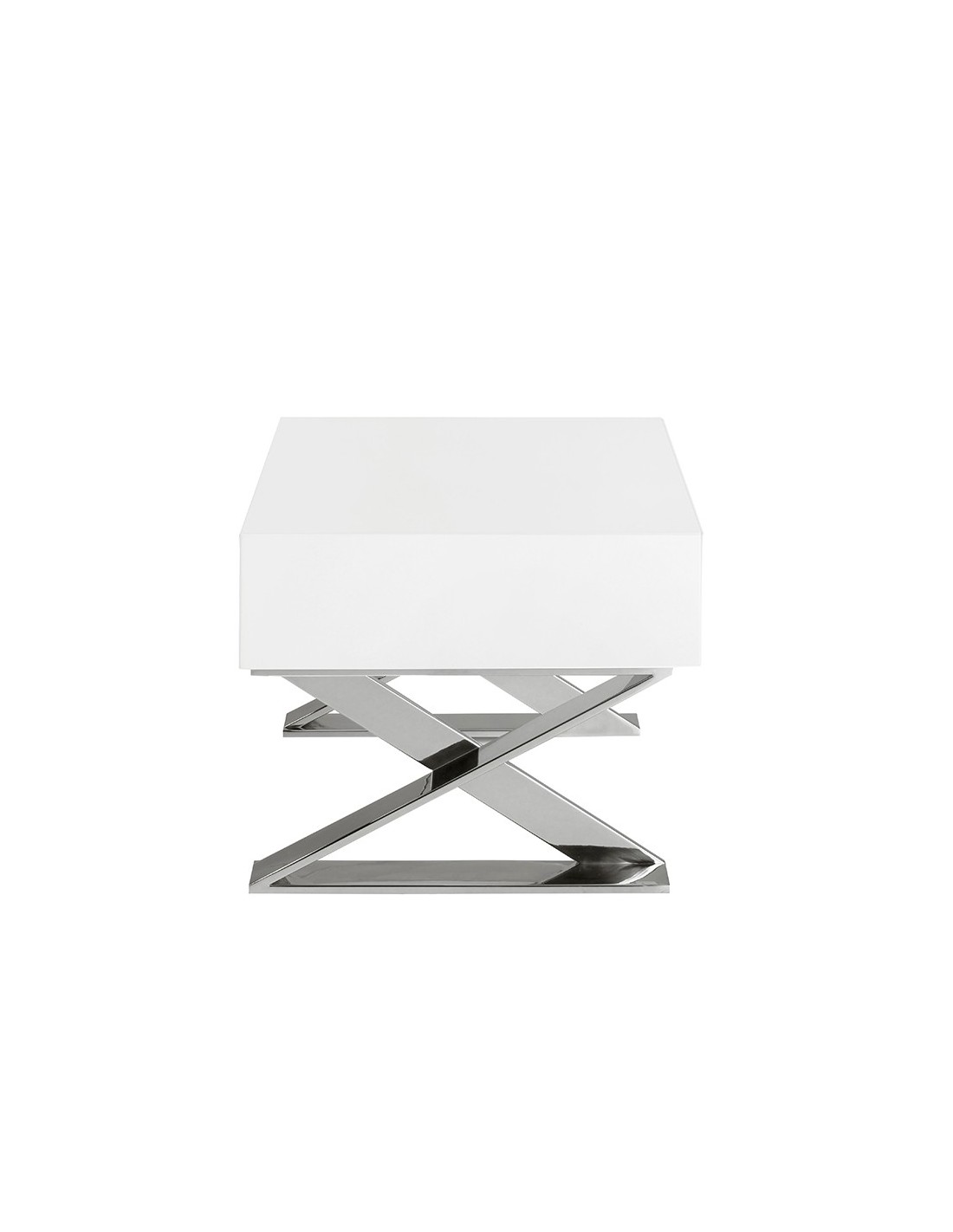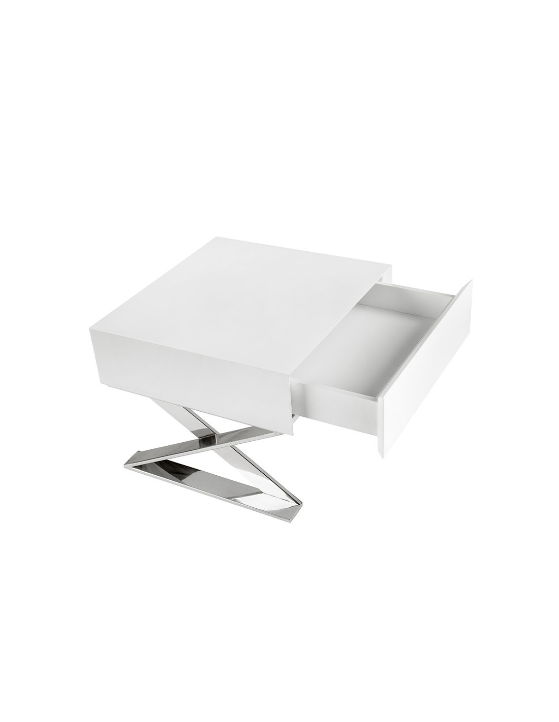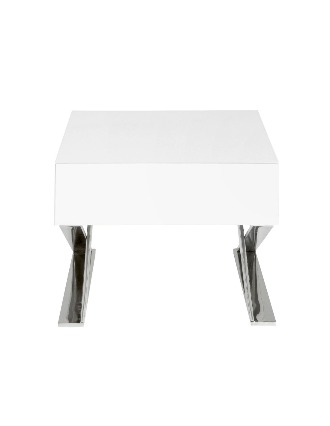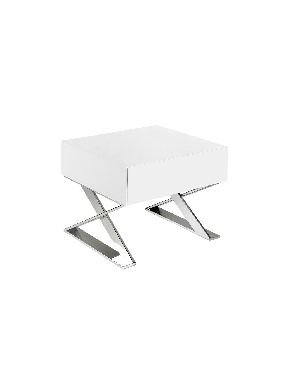 Mesita de noche madera blanca y acero cromado Mesita de noche de diseño moderno con estructura de madera de MDF color blanco y unas originales patas de acero inoxidable cromado. Cuenta con un amplio espacio de almacenaje con 1 cajón con sistema de apertura uñero y cierre soft-closing. Medidas del producto: 50 x 48 x 38 cm.- Tanto por el lacado como por su diseño lineal y moderno, esta mesita de noche se convertirá en la pieza perfecta para su dormitorio. - La originalidad de sus patas en acero inoxidable cromado aúnan el estilo más vanguardista de nuestra marca con la mayor calidad y diseño. - Versátil y funcional, su diseño permite que encaje en cualquier ambiente, convirtiéndose en un elemento clave de la decoración de su hogar. - Tanto por su tamaño como por su gran espacio de almacenaje es ideal para mantener todo en orden y en su sitio.