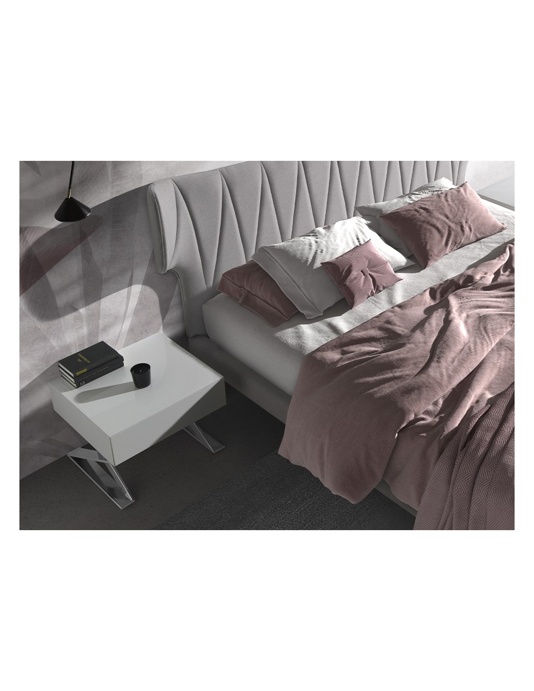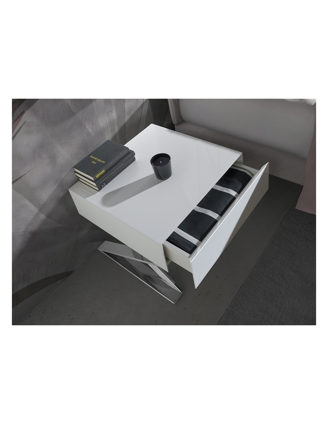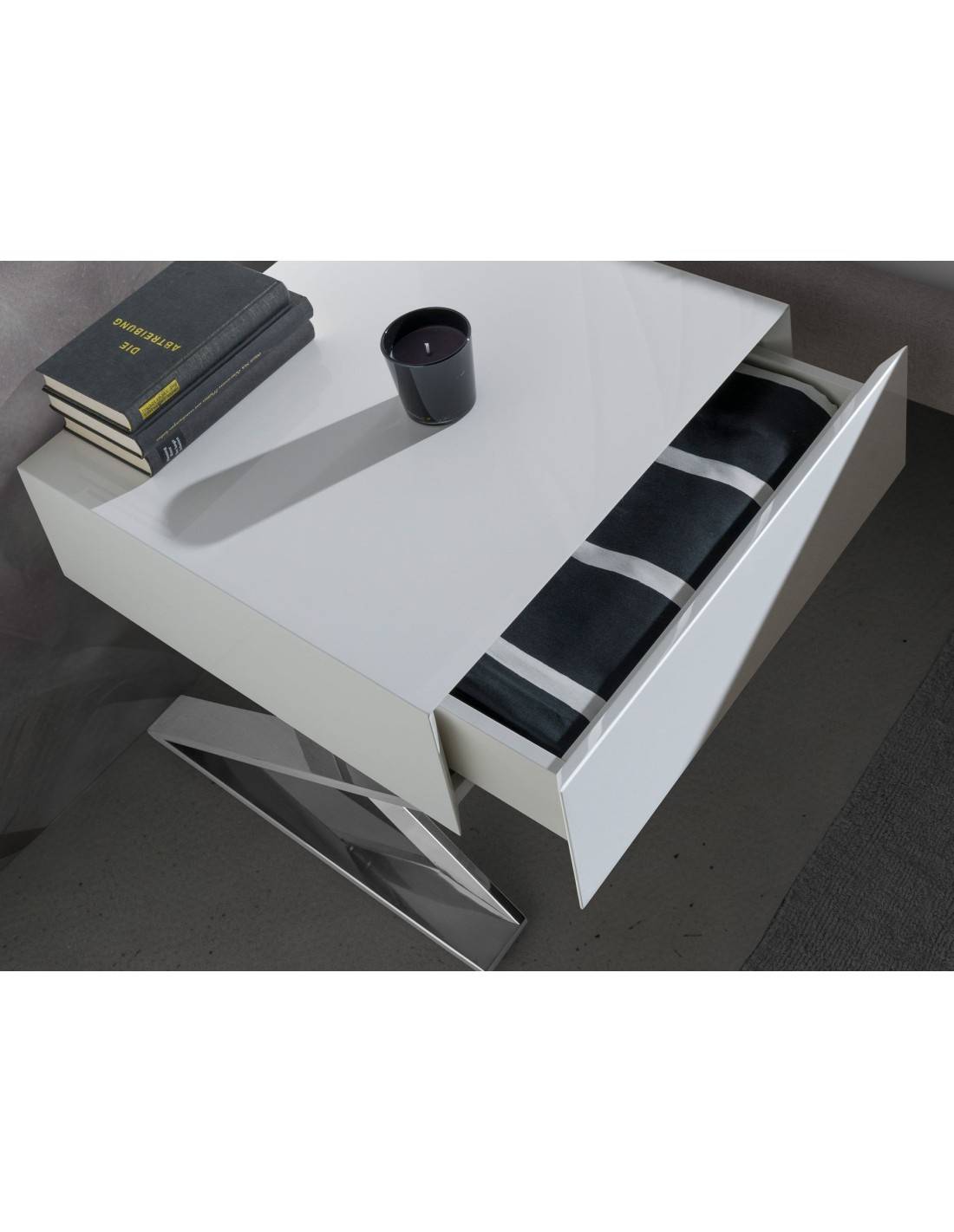 Mesita de noche madera blanca y acero cromado