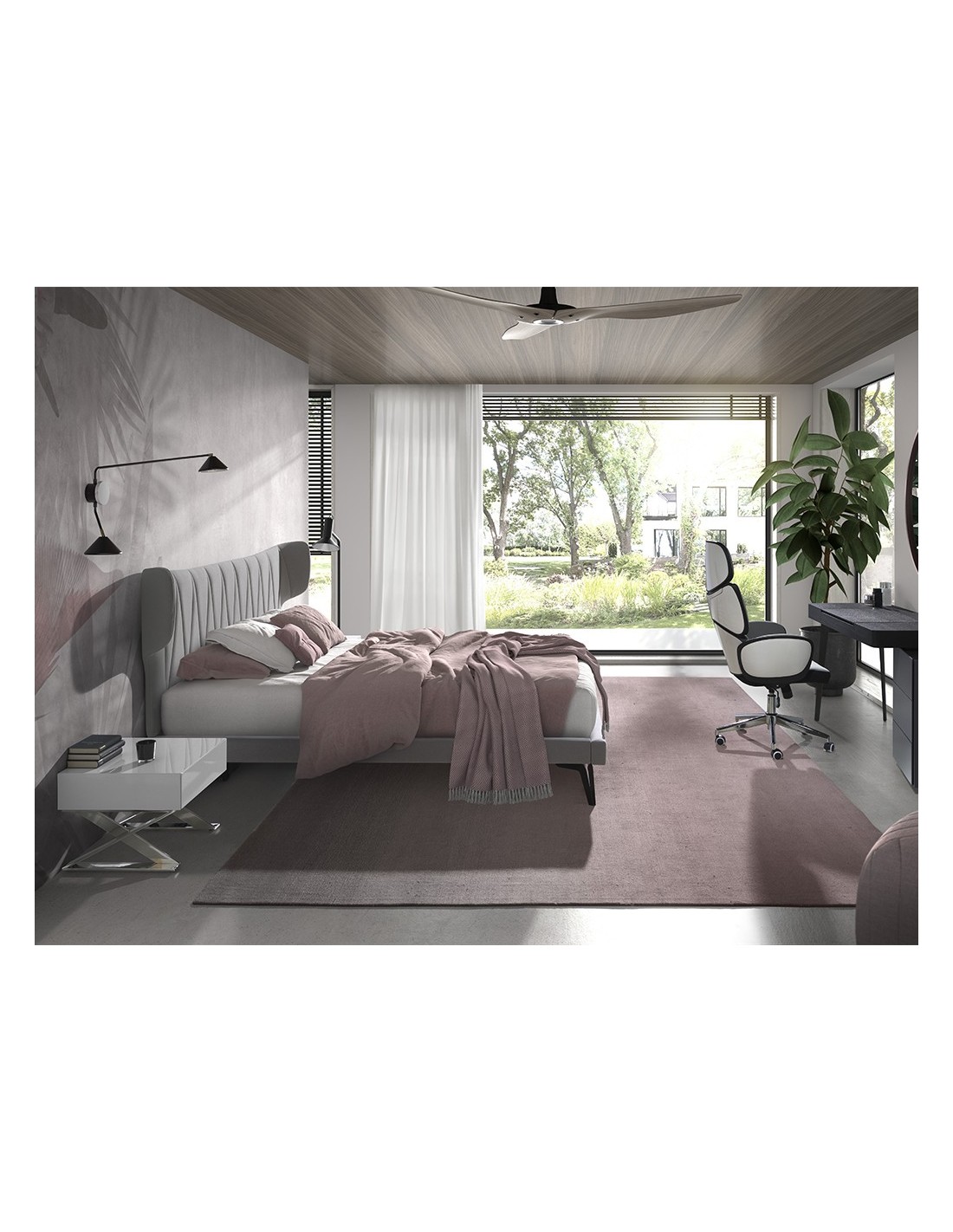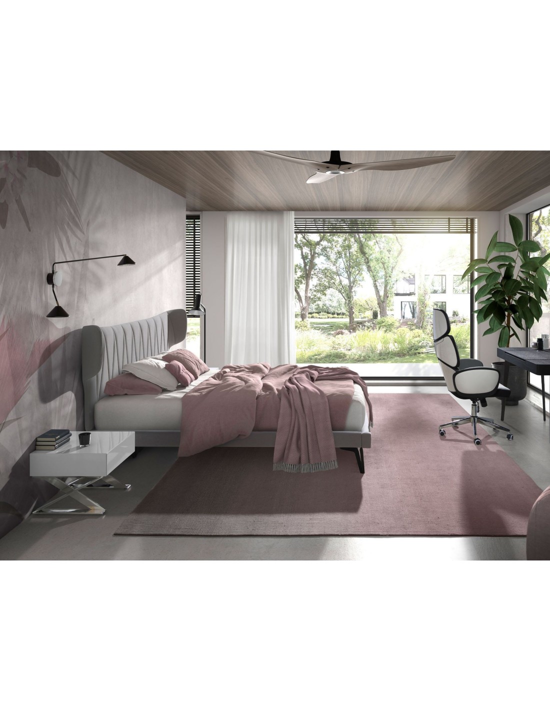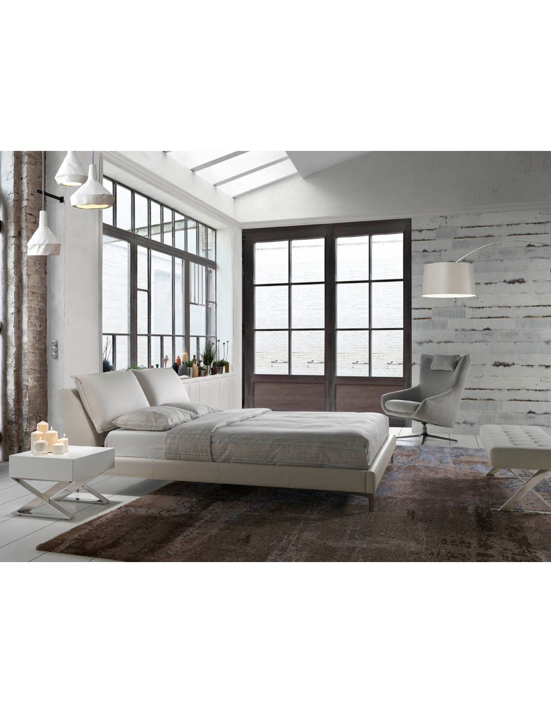 Mesita de noche madera blanca y acero cromado