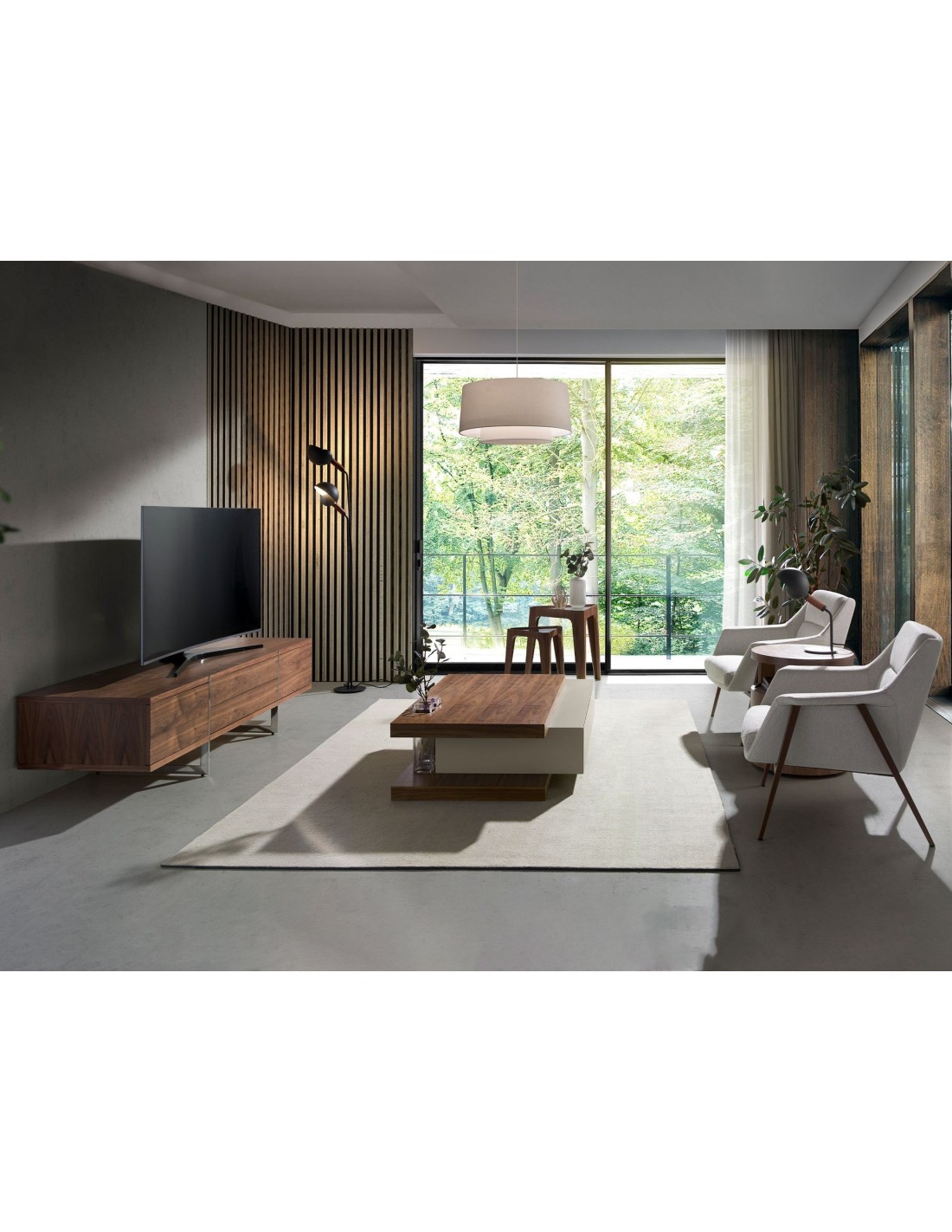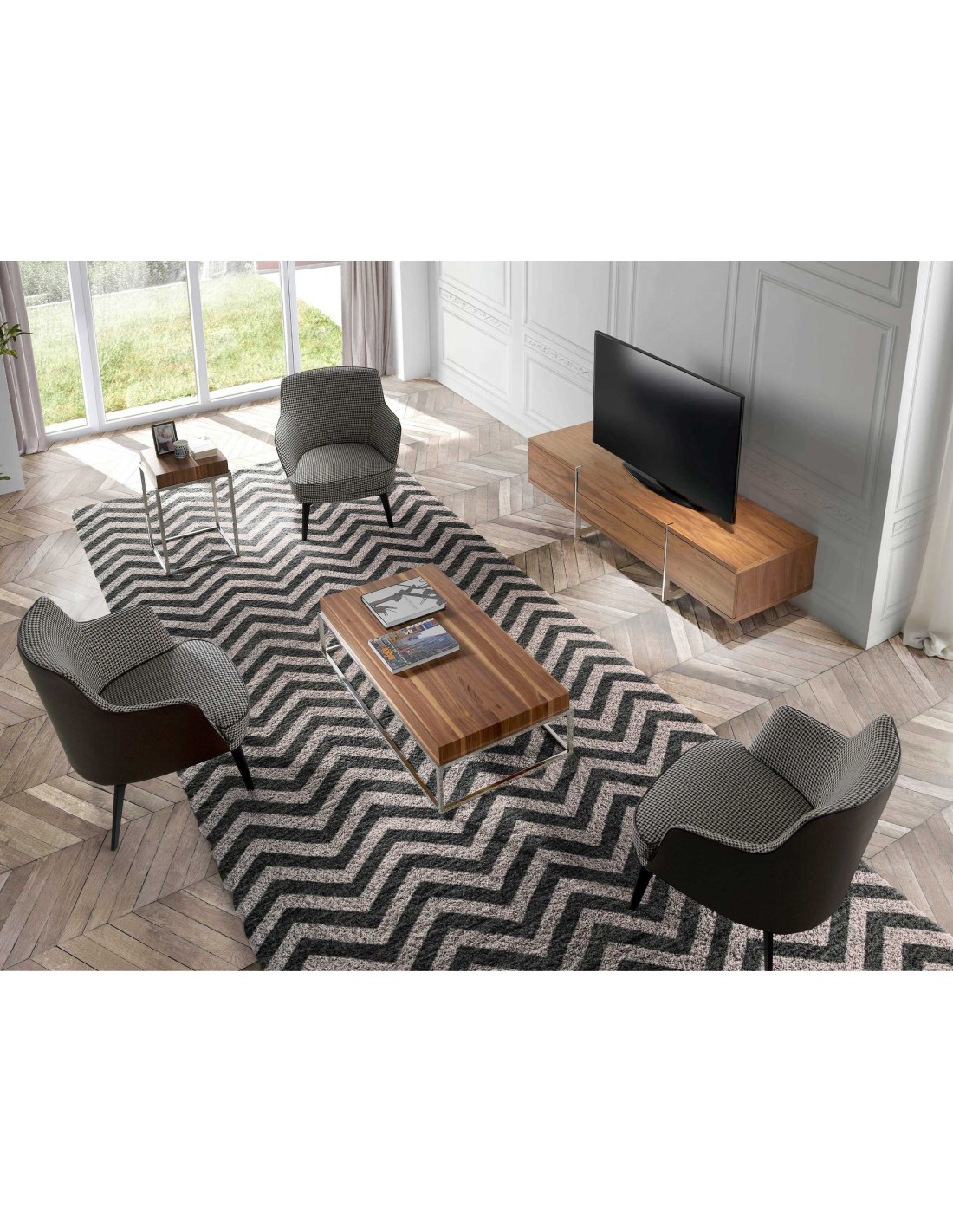 Mueble TV nogal y acero cromado