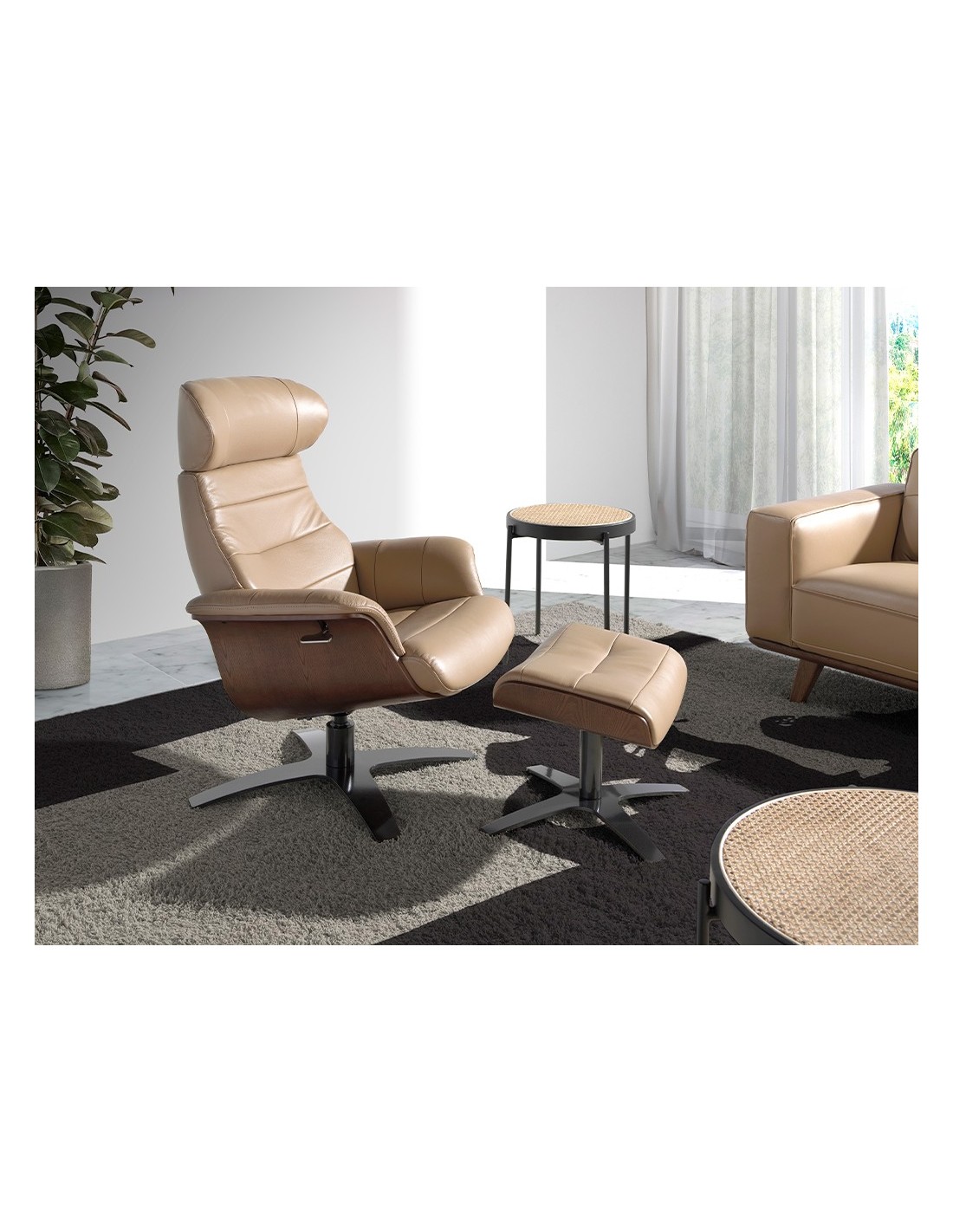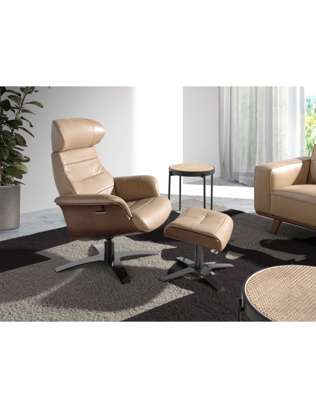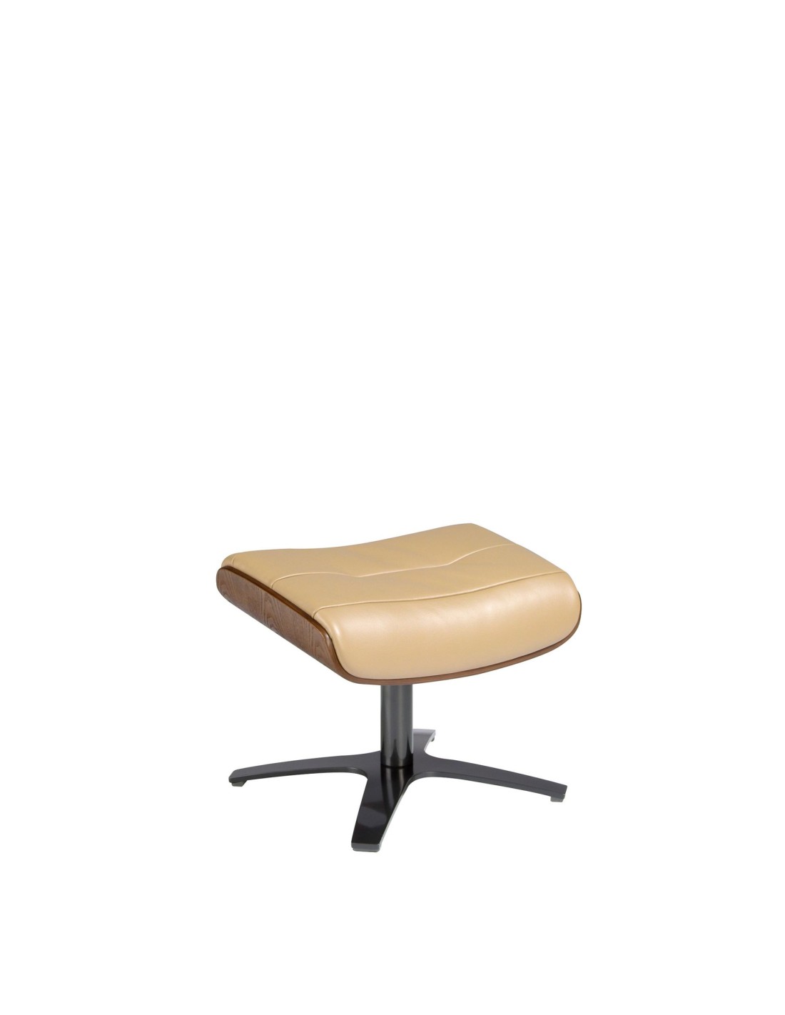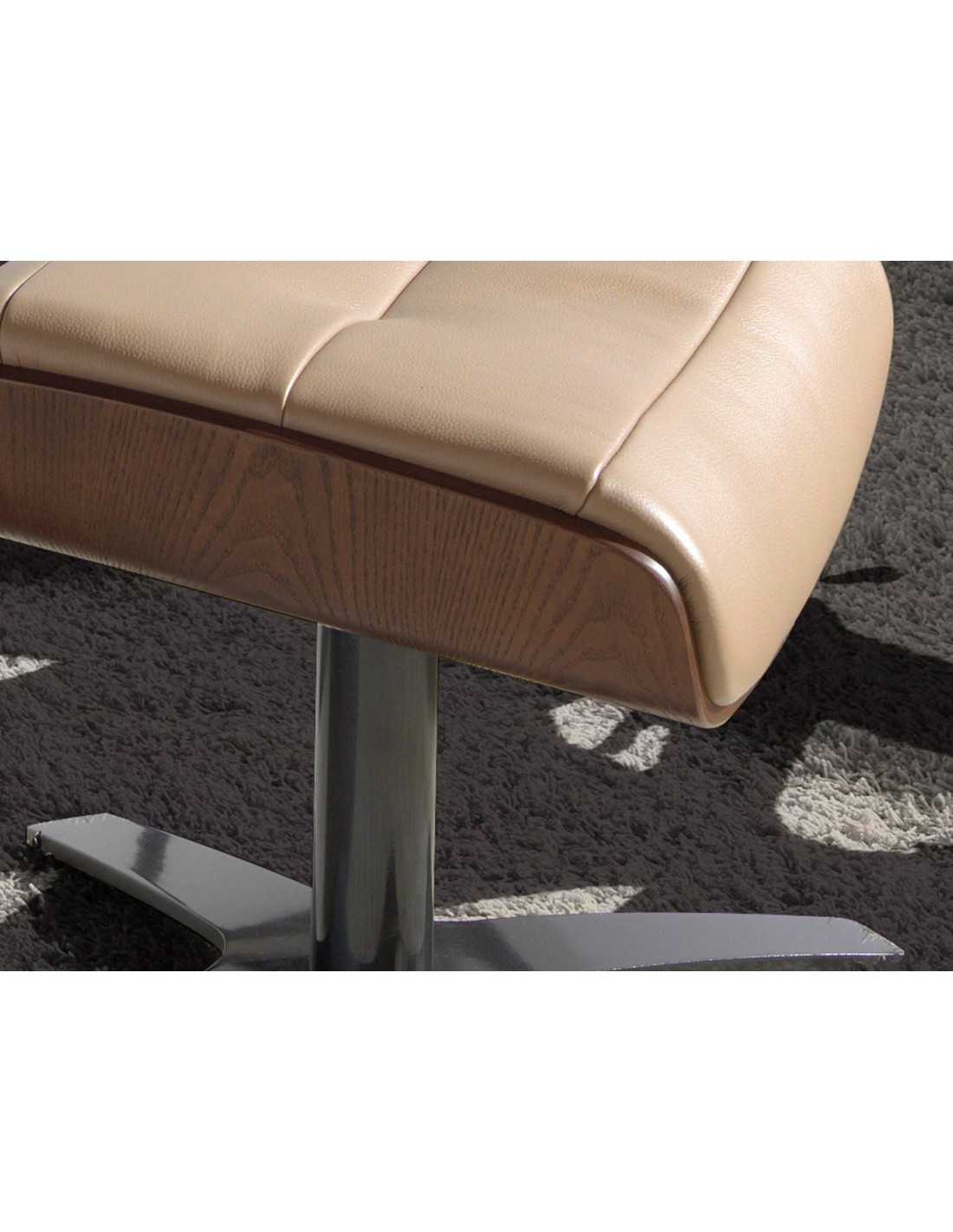 Ottoman piel arena Ottoman de diseño moderno con asiento tapizado en piel de origen vacuno color arena. Tanto por su detalle en madera en color nogal, como por sus patas de acero inoxidable pulido oscurecido de estilo vanguardista a la vez que atemporal, lo convertirán en el must have de su salón. Este ottoman es el complemento ideal para combinar con su sillón de diseño moderno a juego de nuestra marca.Medidas del producto: 52 x 42 x 39 cm.- El tapizado en piel de este ottomán aportará un toque único y diferente, siendo un elemento práctico perfecto para su salón, zona de lectura o descanso. - La combinación de la piel con sus patas en acero inoxidable cromado oscurecido lo convierte en una pieza elegante y exclusiva. - Un diseño atemporal que aúna la mayor calidad que nos caracteriza con la funcionalidad y la practicidad para el día a día. - El tamaño de su asiento relleno de espuma de poliuretano de 25kg/m3, le permitirá contar con el máximo confort, sin dejar de lado la más alta tendencia. - El estilo giratorio de este ottomán es ideal para quienes buscan la combinación perfecta entre el confort, la funcionalidad y el diseño. - Su original soporte y estructura en madera ofrece ese toque de tendencia y personalidad que caracteriza nuestra marca. Ideal para combinar con su sillón a juego de nuestra colección.