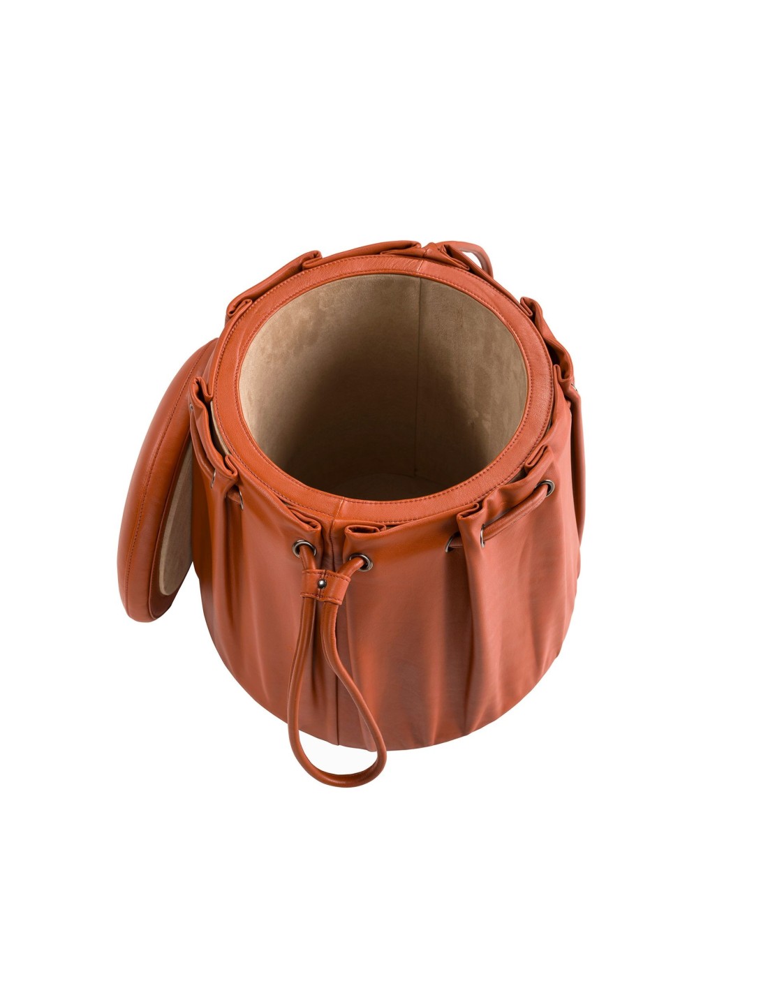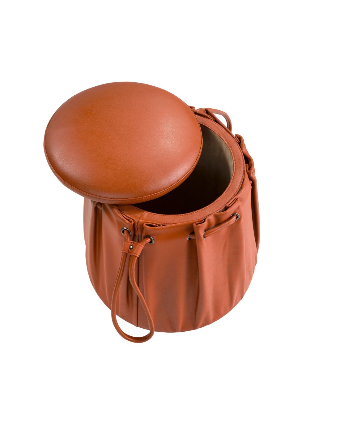 Puff piel naranja caldera Puff de diseño moderno con asiento tapizado en piel de origen vacuno color naranja caldera. Su elegante estilo aporta el toque de distinción que busca para su hogar. Tanto por su diseño como por su fabricación en materiales nobles de la mas alta calidad, este puff de la firma Angel Cerdá, se convertirá en el auxiliar perfecto para su salón o zona de lectura. Un elemento decorativo a la vez que práctico y funcional.Medidas del producto: Ø52 x 44 cm.- Este puff tapizado en piel de corigen vacuno de 1,25 mm de espesor aportará un toque cálido y único al espacio. - Cuenta con unas originales asas en color naranja caldera que le otorga el toque sofisticado y elegante que busca para sus estancias. - Tanto por su diseño como por su estilo actual, así como por su espacio de almacenaje interior, se trata de una pieza totalmente versátil y funcional para la zona de descanso o lectura. - Su forma redondeada y su estructura acolchada, te permitirá contar con el máximo confort para descansar, sin dejar de lado la más alta tendencia. - La tela aterciopelada de su interior aporta el toque único, diferente y exclusivo a este puff. Una pieza de estilo moderno pensada para relajarse y disfrutar de la mayor comodidad.
