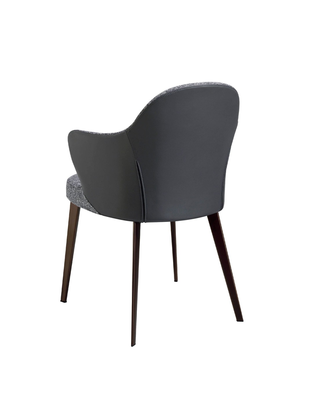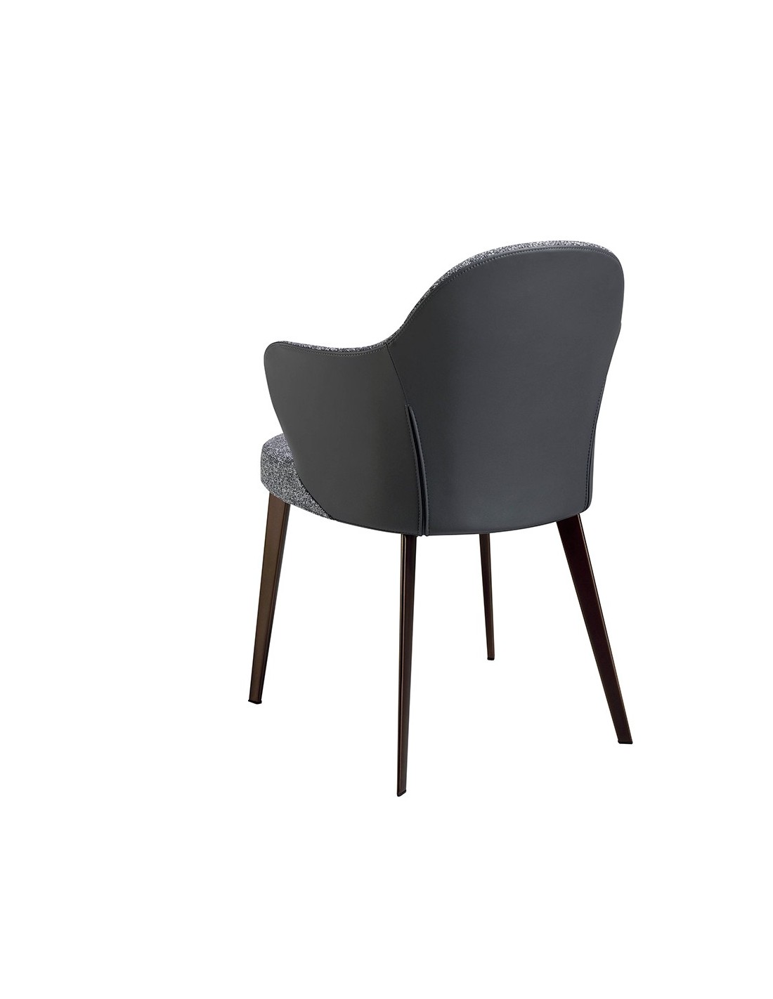 Silla tela y polipiel gris oscuro Silla con reposabrazos de diseño moderno con asiento tapizado en tela y respaldo tapizado en polipiel color gris oscuro. Sus patas de acero pintado en color marrón de estilo vanguardista a la vez que atemporal, la convertirán en el must have de su cocina o comedor. Esta silla de la firma Angel Cerdá, aúna el estilo único y personal de la marca, así como la mayor comodidad y estabilidad, gracias a la alta calidad de su tapizado y la original estructura de patas.Medidas del producto: 60 x 63 x 83 cm.- Fiel a las últimas tendencias en decoración, la originalidad de su tapizado combinando tela y polipiel, es ideal para aportar el toque vanguardista y elegante que busca para su comedor. - La combinación del tapizado en polipiel y el acero de sus patas, la hace una silla perfecta para aportar modernidad y luminosidad al espacio. - Su diseño versátil y funcional, la convierte en una silla ideal para cualquier tipo de salón, comedor o cocina. - El tamaño de su asiento y su relleno en espuma de poliuretano de 25kg/m3, así como su diseño de respaldo envolvente le permitirá contar con el máximo confort.