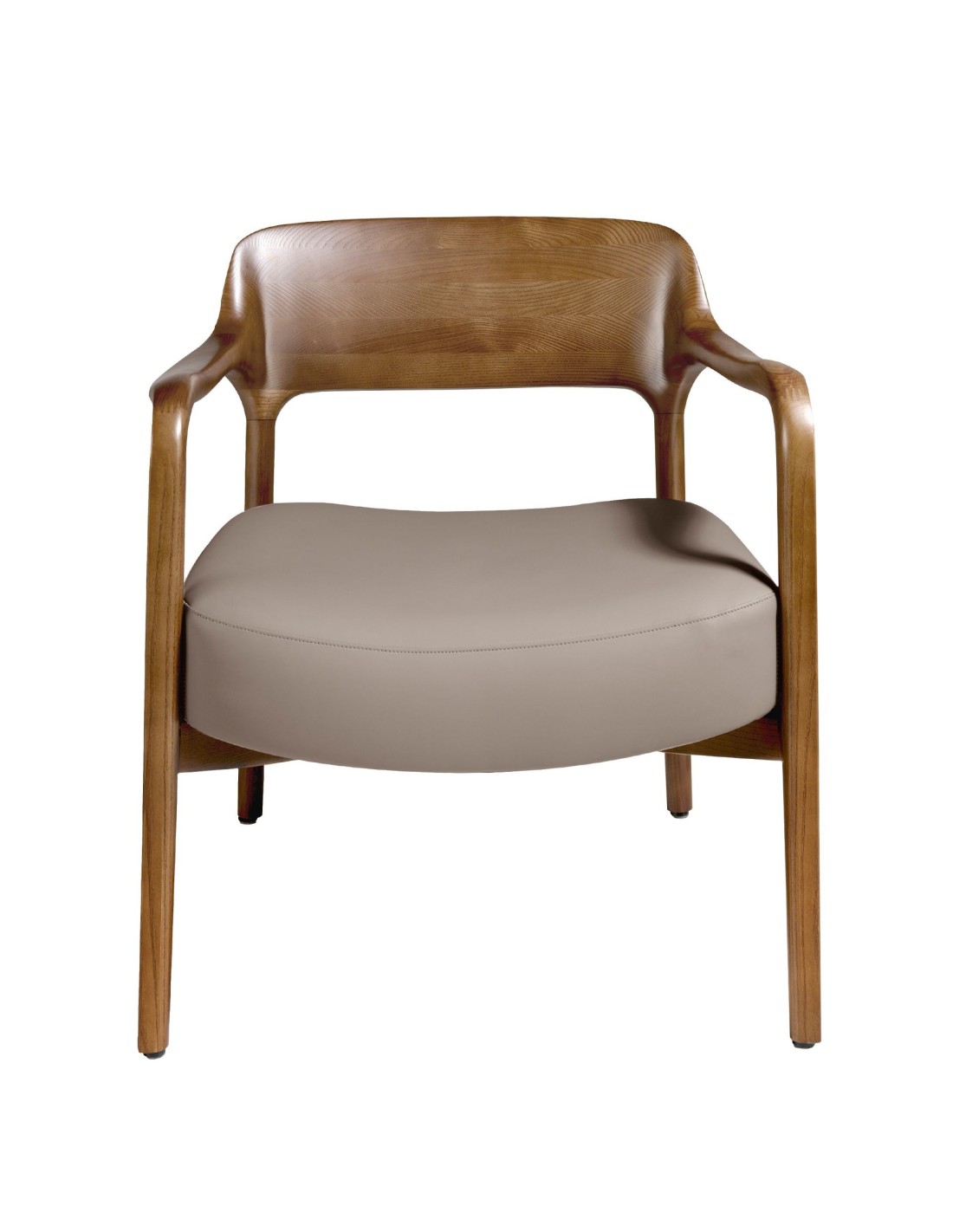 Sillón nogal y polipiel visón Sillón con reposabrazos de diseño moderno con asiento tapizado en polipiel color visón y respaldo de madera en color nogal. Tanto por su estilo, como por sus patas de madera en color nogal, este sillón es la combinación perfecta entre diseño y confort.Medidas del producto: 70 x 62 x 72 cm.- El tapizado en polipiel de este sillón aportará elegancia y distinción, siendo además una pieza funcional a la vez que decorativa para sus estancias. - La combinación del tapizado en polipiel con la madera color nogal de las patas, es perfecta para aportar calidez y elegancia a cualquier espacio. - Tanto por su diseño, como por su fabricación en materiales de la más alta calidad este sillón se convertirá en el máximo protagonista de su salón, zona de lectura o dormitorio. - Tanto por el tamaño de su asiento y su relleno en espuma de poliuretano de 25kg/m3, así como su cómodo respaldo le permitirá contar con el máximo confort, sin dejar de lado el diseño más actual.