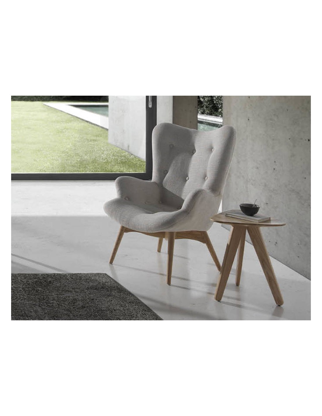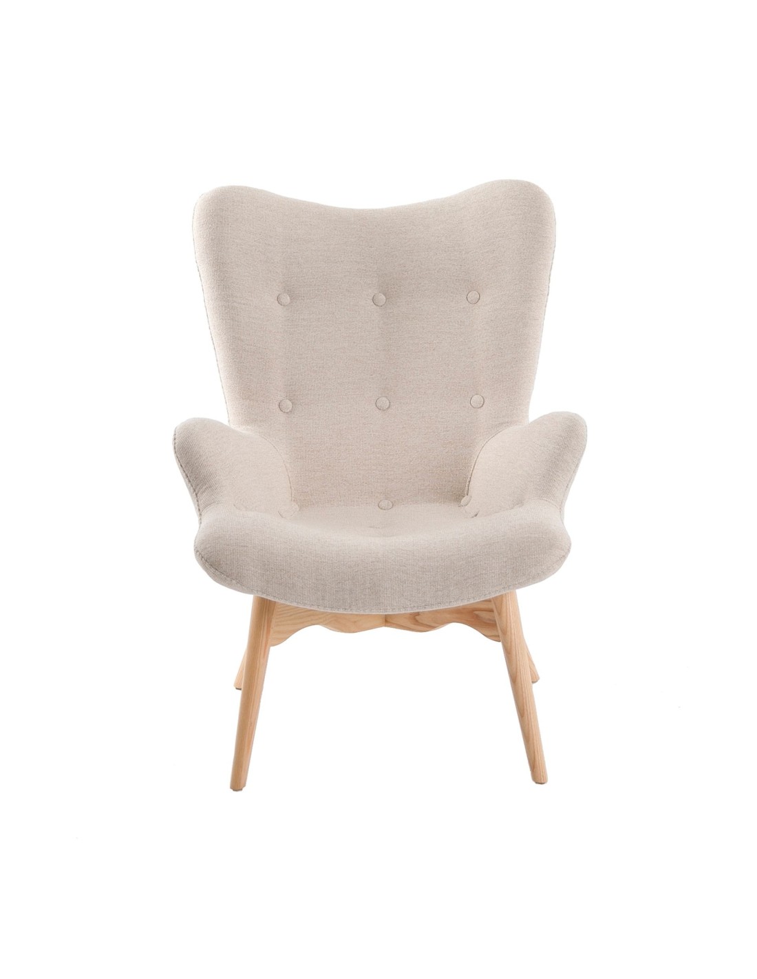 Sillón tela beige Sillón con reposabrazos de diseño moderno con asiento y respaldo tapizados en tela color beige. Tanto por su estilo, como por sus patas de madera de fresno, este sillón es la combinación perfecta entre diseño y confort.Medidas del producto: 70 x 80 x 92 cm.- El tapizado en tela de este sillón aportará un toque único y diferente, siendo además un elemento decorativo perfecto para cualquier ambiente. - La originalidad de sus patas aúnan el estilo más vanguardista de nuestra marca con la mayor calidad y comodidad. - Tanto por el tamaño de su asiento y su relleno en espuma de poliuretano de 25kg/m3, así como su cómodo respaldo le permitirá contar con el máximo confort, sin dejar de lado el diseño más actual. - El acabado capitoné en el respaldo de este sillón confidente, brinda un toque diferente y exclusivo. Una pieza de estilo moderno pensada para relajarse y disfrutar de la mayor comodidad.