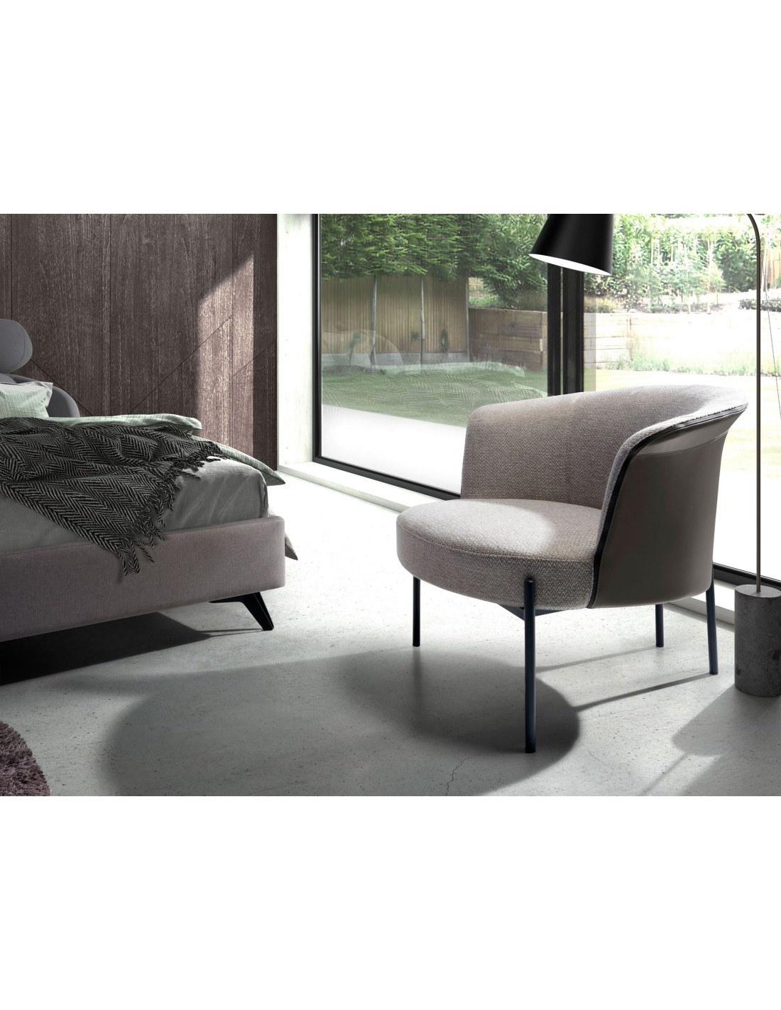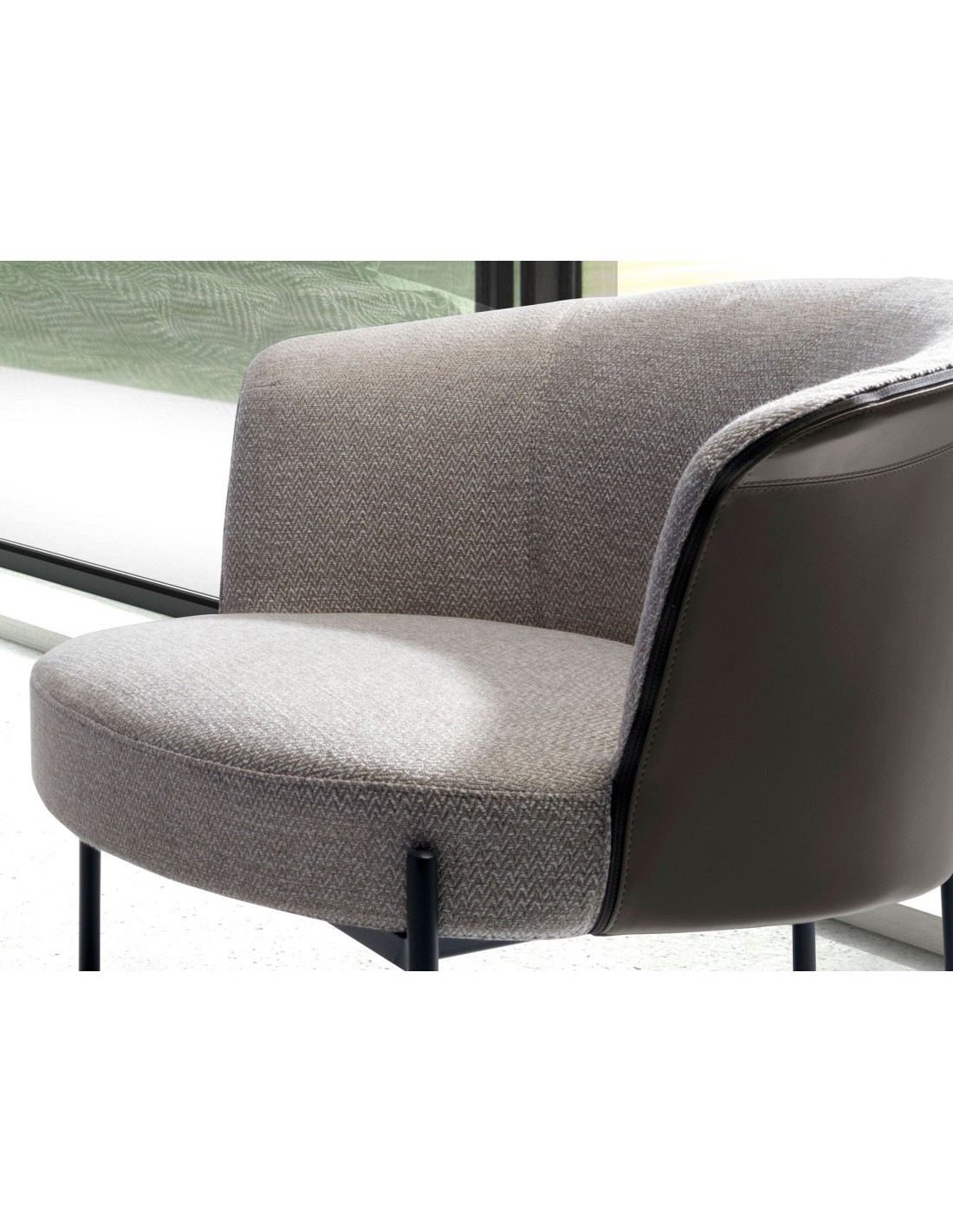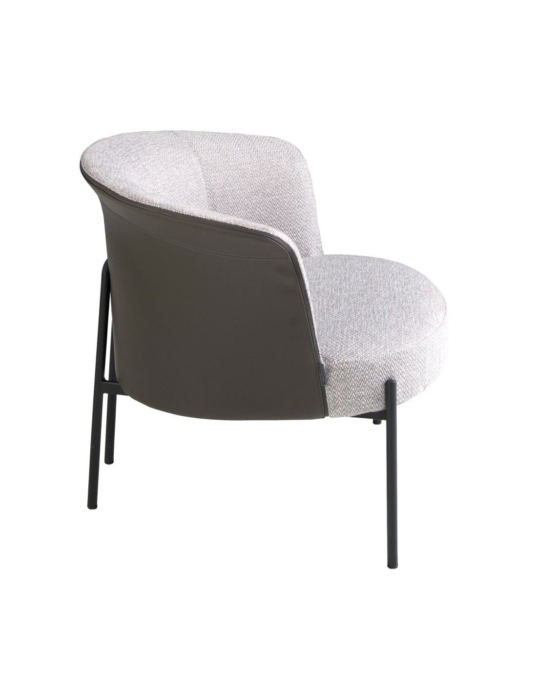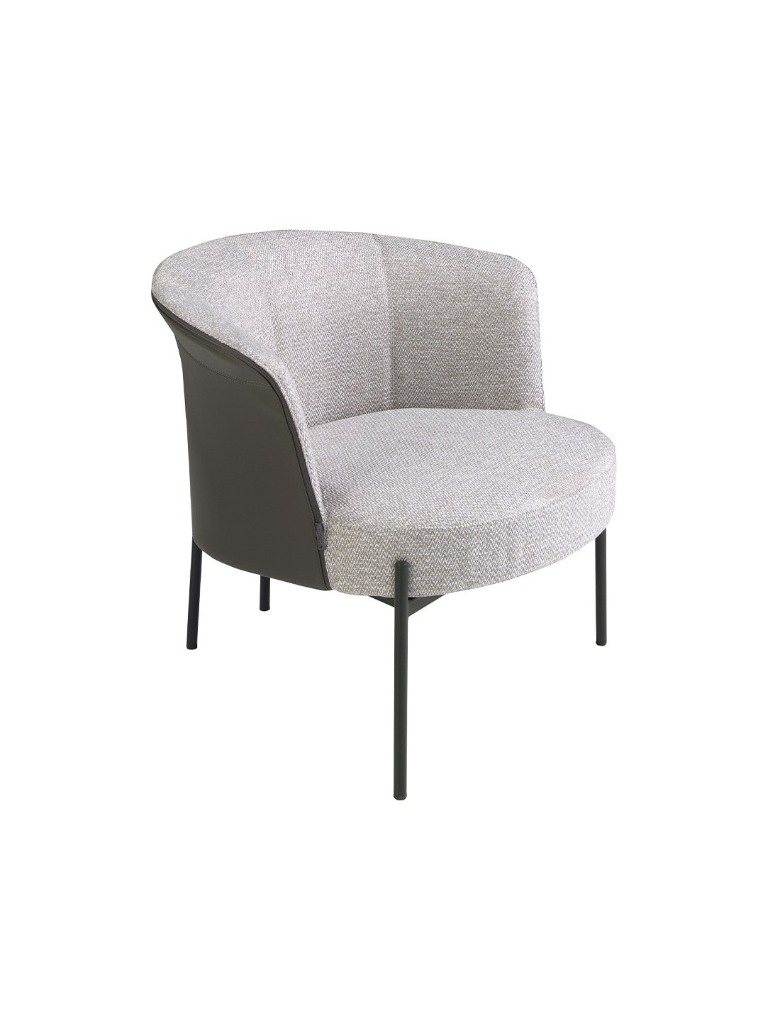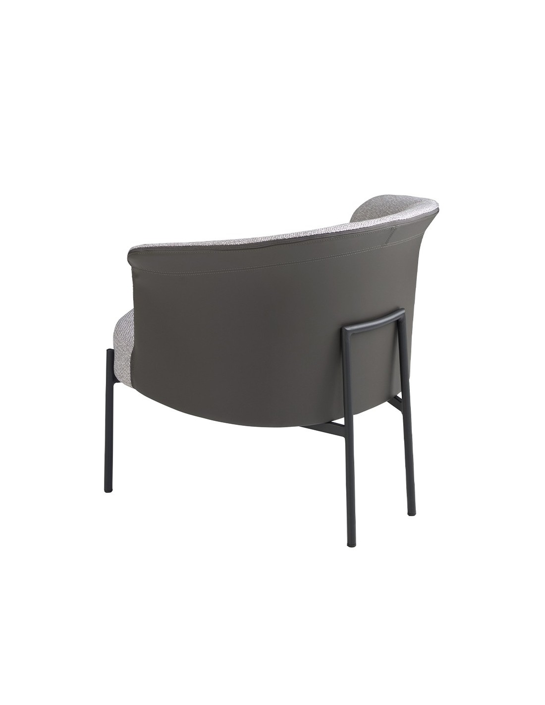 Sillón tela gris y polipiel gris oscuro Sillón de diseño moderno con asiento tapizado en tela color gris y respaldo tapizado en polipiel color gris oscuro. Tanto por su estilo, como por sus patas de acero inoxidable pintado en epoxi negro, este sillón es la combinación perfecta entre diseño y confort.Medidas del producto: 84 x 68 x 69 cm.- El tapizado en tela de este sillón aportará un toque único y diferente, siendo además un elemento decorativo perfecto para cualquier ambiente. - Tanto por el tamaño de su asiento y su relleno en espuma de poliuretano de 25kg/m3, así como su cómodo respaldo le permitirá contar con el máximo confort, convirtiéndose en una pieza clave para sus momentos de relax o descanso. - La combinación de su tapizado en tela y polipiel, le confiere el toque diferente, exclusivo y original que busca para crear ambientes repletos de estilo.