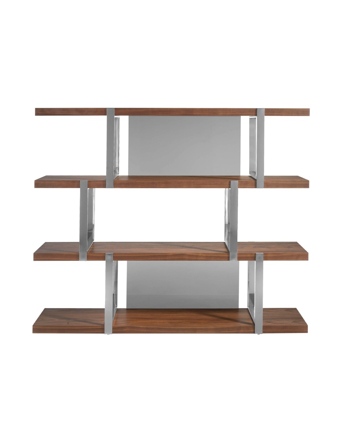 Estanteria nogal separadores cristal negro Estantería con baldas de madera chapada en nogal y estructura de acero inoxidable cromado. Detalles en cristal translucido negro.Medidas del producto: 180 x 40 x 146 cm.- Esta original estantería de diseño moderno aportará el toque diferente y elegante que buscas para tu hogar, fiel a las últimas tendencias en decoración.- Versátil y funcional, su diseño permite que encaje en cualquier tipo de salón, comedor, zona de lectura o despacho.- Todas nuestras estanterías están fabricadas con materiales de la más alta calidad, siendo garantía de mobiliario duradero y funcional.- Por su diseño líneal y minimalista, así como por su estructura de acero inoxidable cromado, combinado con nogal y cristal tintado negro, conseguirás el toque distintivo y diferente que buscas para tu comedor.- Tanto por su tamaño como por su gran espacio de almacenaje abierto es ideal para que mantegas todo en orden y en su sitio.