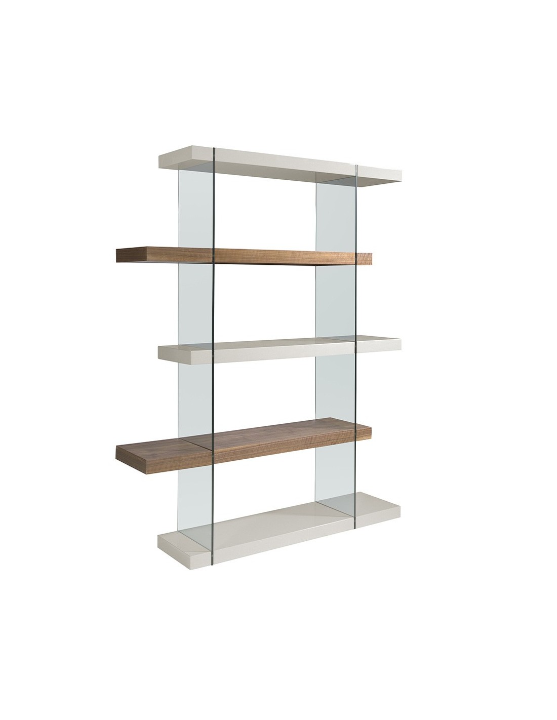 Estantería madera nogal y cristal Estantería de madera chapada en nogal y cubos en DM lacado Gris Perla Brillo.Medidas del producto: 160 x 33 x 180 cm.- Esta estantería aportará el toque moderno y diferente que buscas para tu hogar. Una pieza exclusiva ideal para combinar con las últimas tendencias en decoración.- Versátil y funcional, su diseño permite que encaje en cualquier salón, comedor o despacho.- Todas nuestras estanterías están fabricadas con materiales de la más alta calidad, siendo garantía de mobiliario duradero y funcional.- La madera de nogal combinada con la madera lacada en gris perla, aporta calidez y elegancia, dando como resultado un espacio acogedor a la vez que moderno.- Tanto por su diseño como por sus dimensiones, esta estantería modular, es perfecta para crear ambientes amplios y luminosos.