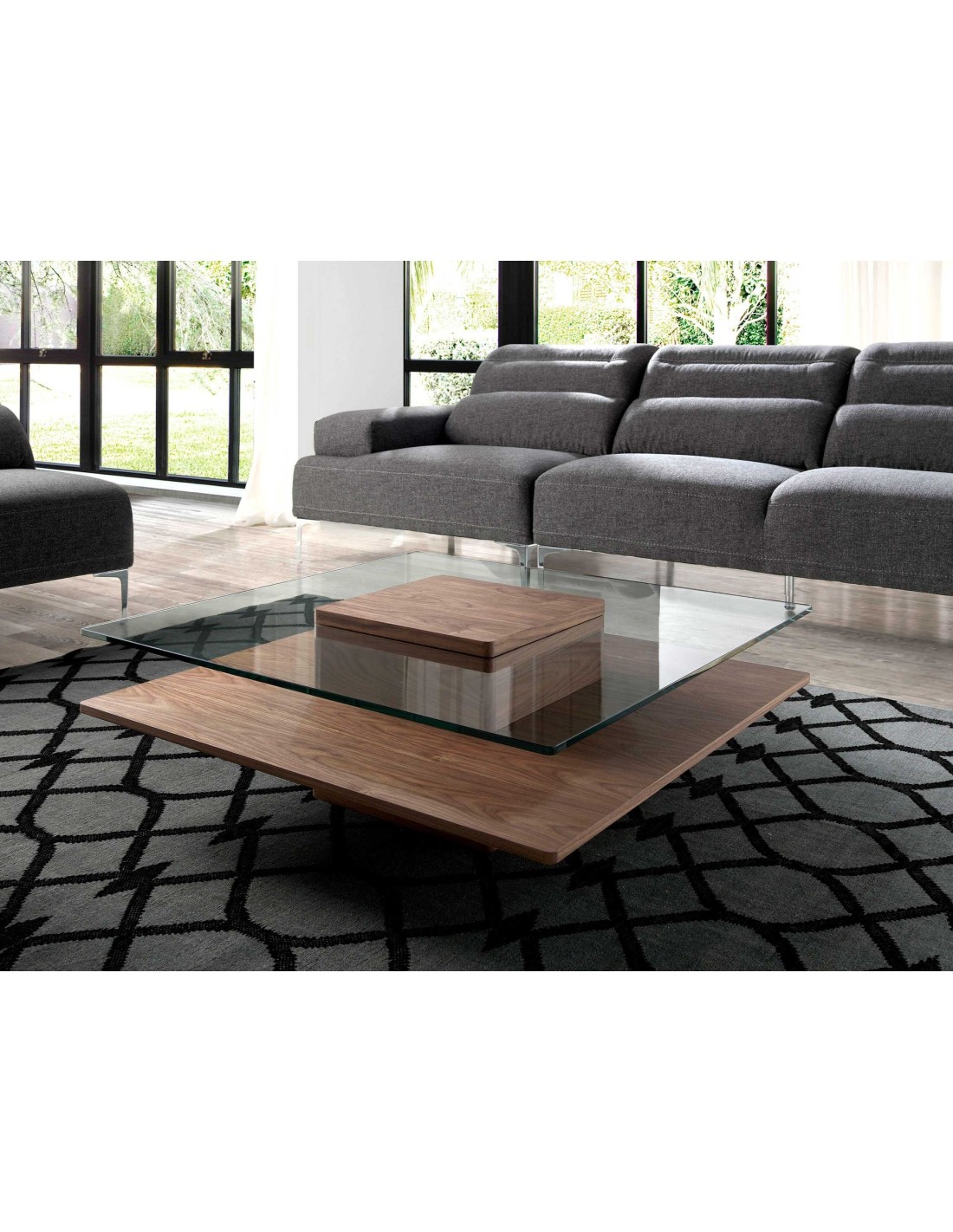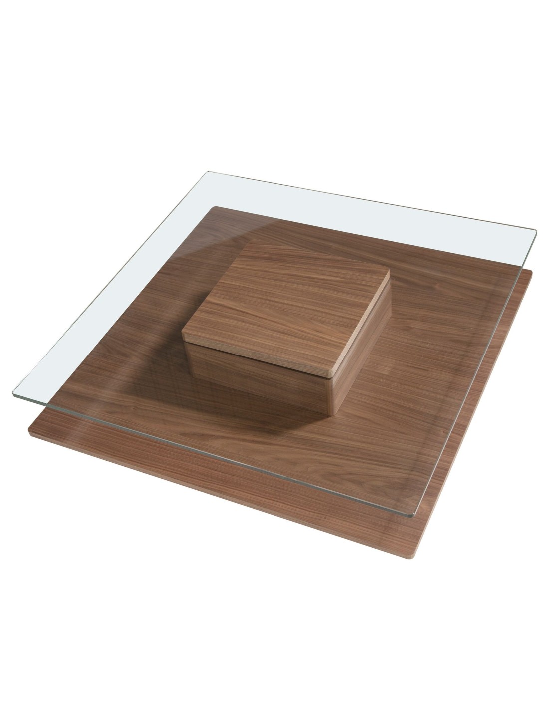 Mesa centro cuadrada cristal templado y nogal