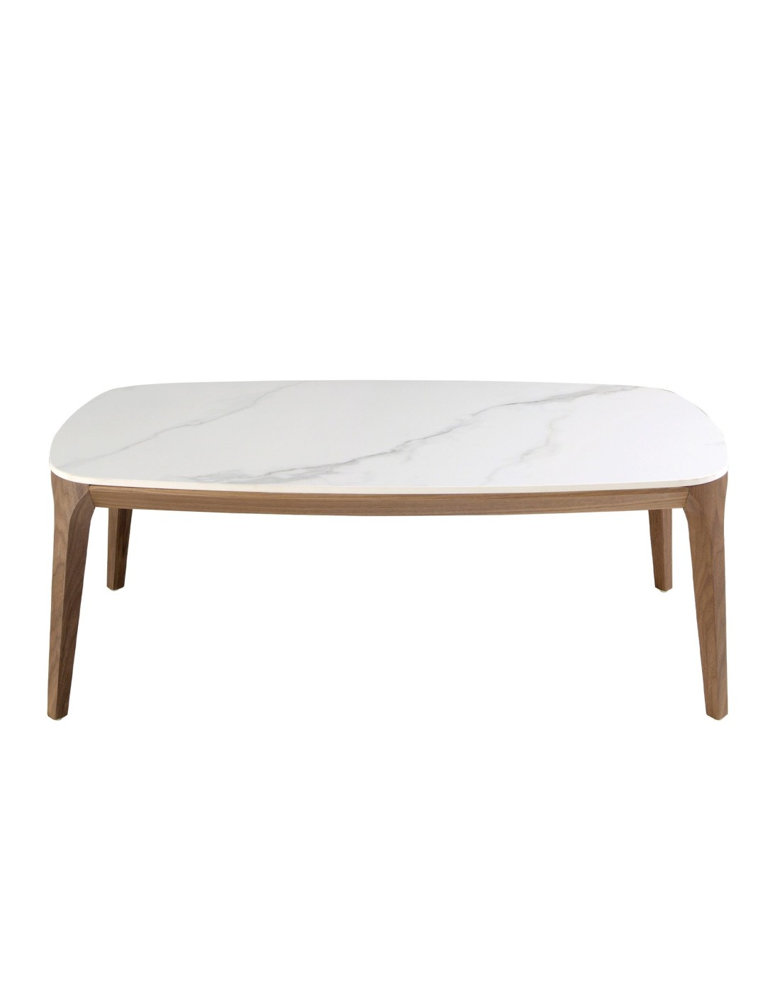 Mesa centro ovalada barril mármol porcelánico y nogal Mesa centro ovalada barril de diseño moderno con tapa de mármol porcelánico blanco con vetas en color gris en acabado brillo y unas originales patas de madera chapada en nogal natural. Una pieza con un diseño sencillo a la vez que original, con la que aportará un toque único y personal.Medidas del producto: 119 x 65 x 41 cm.- La original tapa de esta mesa auxiliar en mármol porcelánico blanco con mallado en tonalidades grises, aportará amplitud y luminosidad, así como el toque elegante y sofisticado que busca para su salón. - La sencillez y la elegancia de la estructura de madera chapada en nogal natural de 0,5 mm de espesor de esta mesita, es perfecta para crear un ambiente moderno y repleto de estilo. - Versátil y funcional, su diseño permite que encaje en cualquier ambiente, convirtiéndose en un elemento clave de la decoración de su hogar. - Tanto por sus medidas como por su fabricación con materiales de la mayor calidad, esta mesa es el auxiliar ideal para el día a día, totalmente práctico y funcional.
