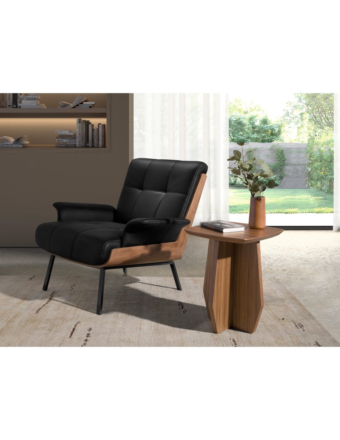 Mesa rincón cuadrada nogal Mesa rincón cuadrada de diseño moderno con tapa de madera chapada en nogal natural y unas originales patas de madera chapada en nogal natural. Una pieza con un diseño sencillo a la vez que original, con la que aportará un toque único y personal.Medidas del producto: 40 x 40 x 50 cm.- Gracias a su tapa de madera chapada en nogal natural de 0,5 mm de espesor podrá crear un ambiente cálido, acogedor y repleto de estilo. - Queda apoyada sobre una base de madera chapada en nogal natural, lo que le confiere una mayor estabilidad, así como un estilo único y exclusivo. - Tanto por su diseño como por su estilo moderno, le permitirá crear un ambiente repleto de vanguardia y sofisticación. - Tanto por sus medidas como por su fabricación con materiales de la mayor calidad, esta mesa es el auxiliar ideal para el día a día, totalmente práctico y funcional.