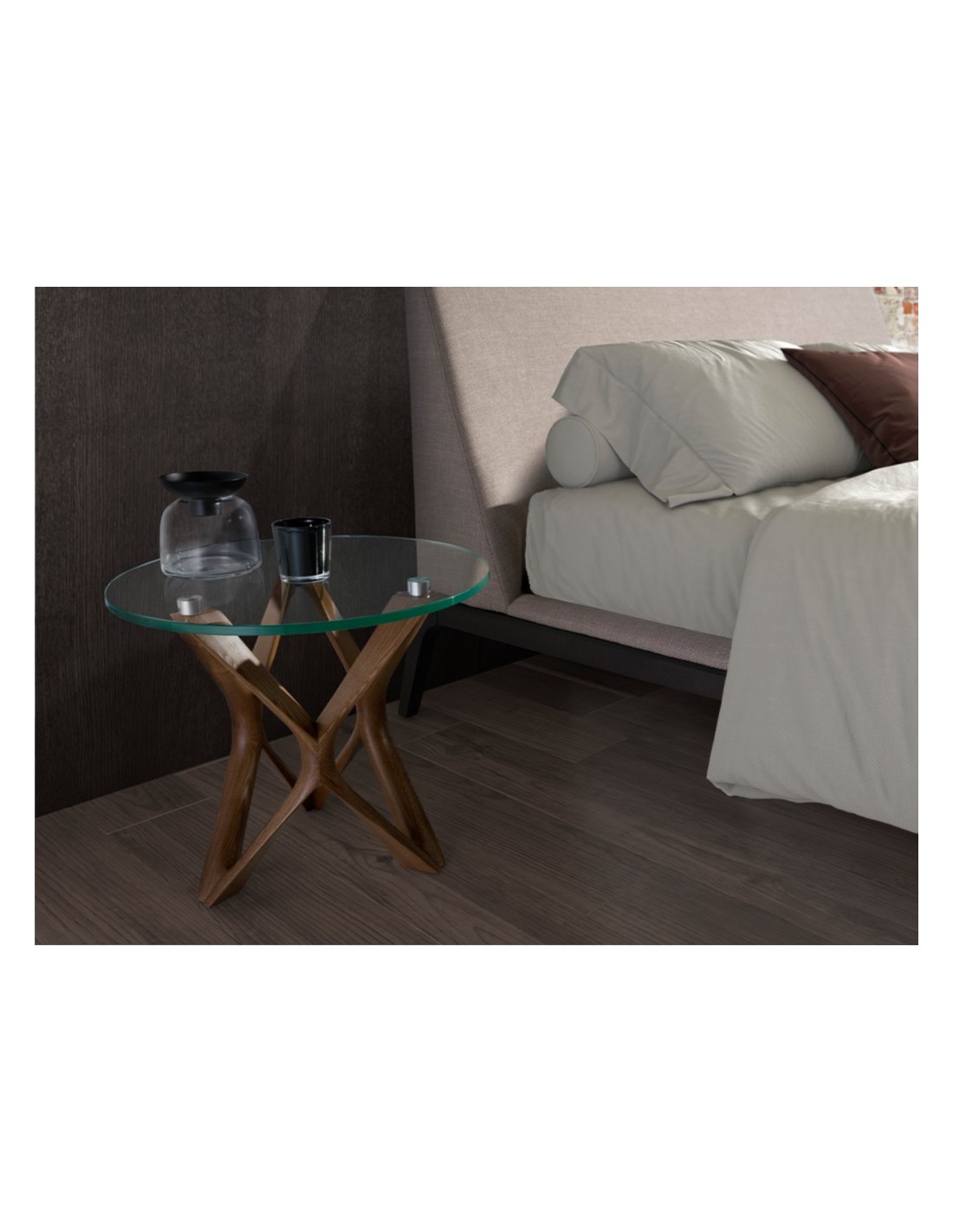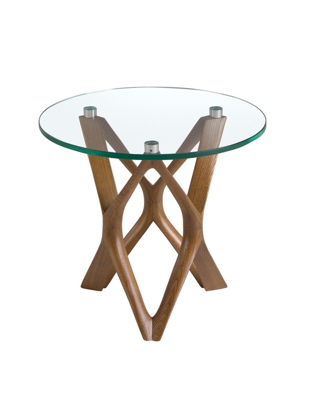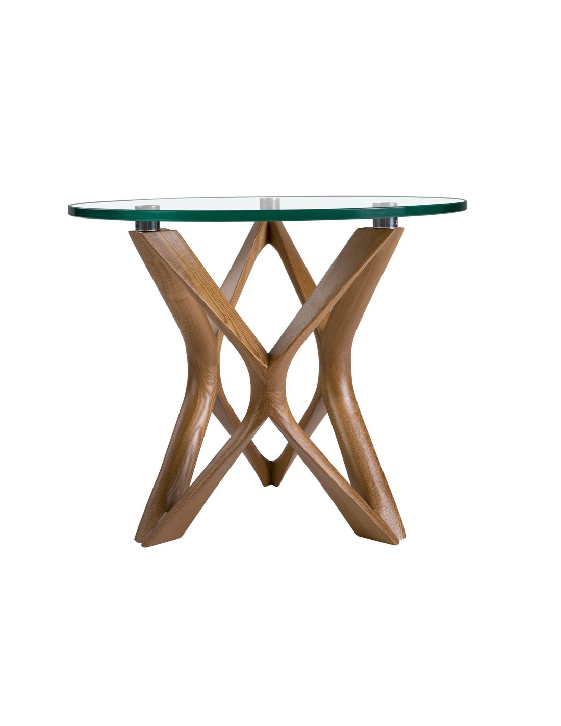 Mesa rincón redonda cristal templado y nogal Mesa rincón redonda de diseño moderno con tapa de cristal templado y unas originales patas de madera en color nogal. Una pieza con un diseño sencillo a la vez que original, con la que aportará un toque único y personal.Medidas del producto: Ø50 x 41 cm.- La tapa de esta mesa auxiliar de cristal templado aportará amplitud y luminosidad a la estancia, convirtiéndola en una pieza clave en la decoración de su salón. - La elegante estructura de patas curvadas de madera color nogal, es perfecta para crear un ambiente cálido, moderno y repleto de estilo. - Las líneas redondeadas y curvas de su estructura le permitirá conseguir un ambiente relajado a la vez que exclusivo. - Tanto por sus medidas como por su fabricación con materiales de la mayor calidad, esta mesa es el auxiliar ideal para el día a día, totalmente práctico y funcional.
