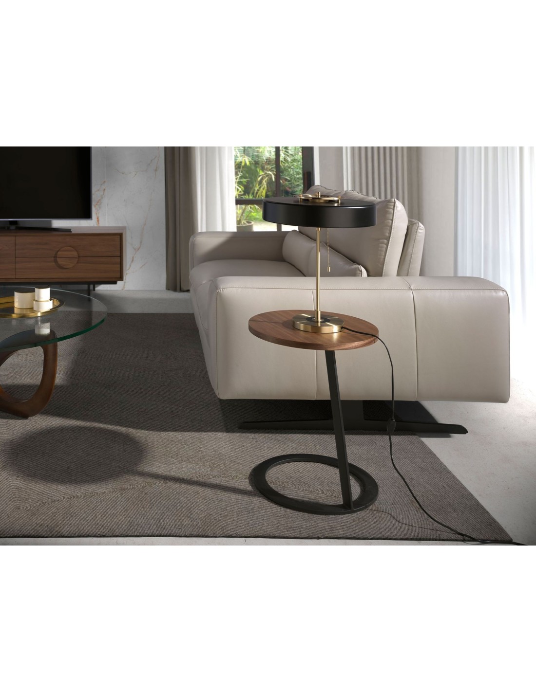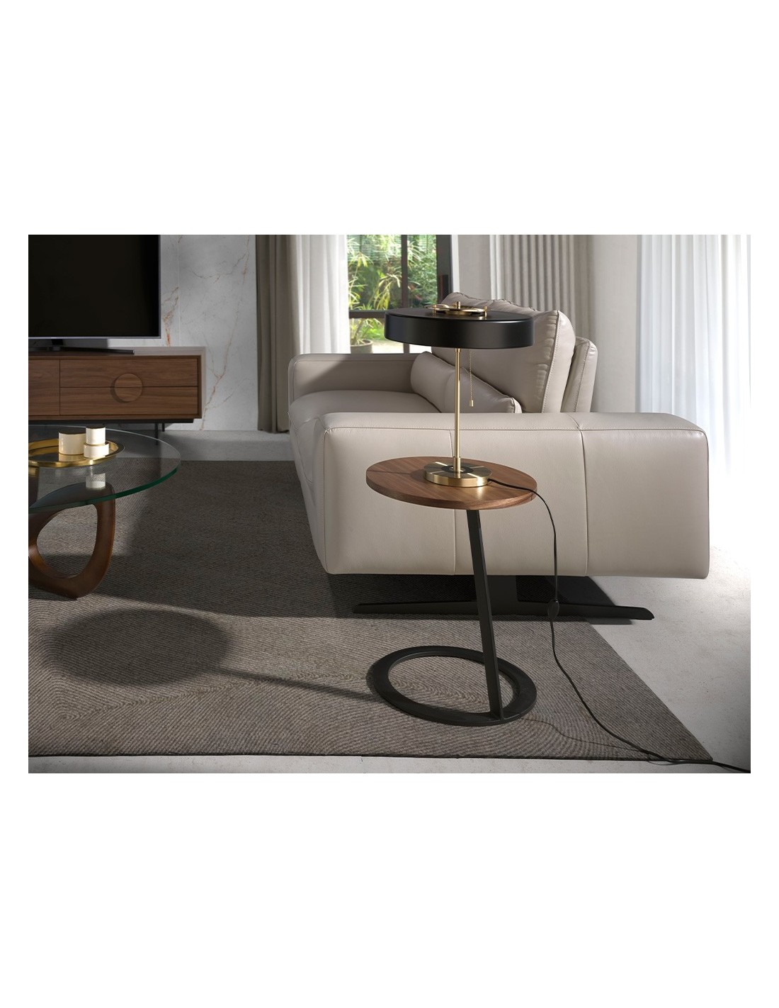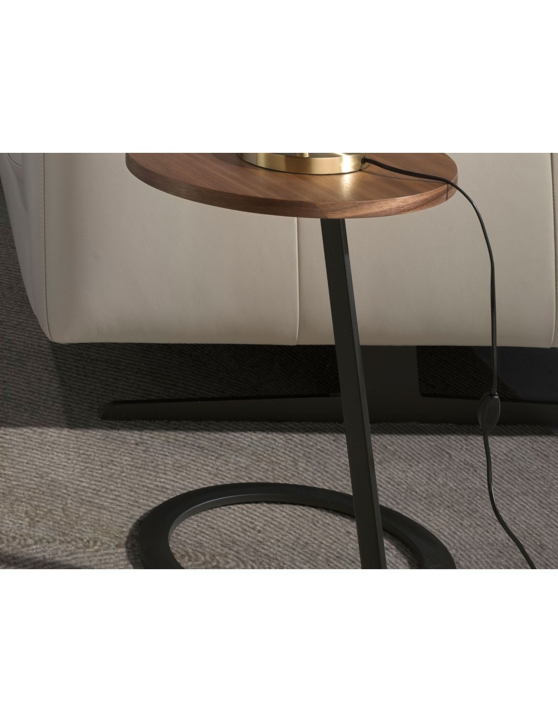 Mesa rincón redonda nogal y acero negro Mesa rincón redonda de diseño moderno con tapa de madera chapada en nogal natural y unas originales patas de acero inoxidable pintado en epoxi negro. Una pieza con un diseño sencillo a la vez que original, con la que aportará un toque único y personal.Medidas del producto: Ø40 x 52 cm.- Gracias a su tapa de madera chapada en nogal natural de 0,5 mm de espesor podrá crear un ambiente cálido, acogedor y repleto de estilo. - Fiel a las últimas tendencias en decoración, el acero negro le permitirá crear un espacio único, personal y con carácter. - Tanto por su diseño como por su estilo moderno, le permitirá crear un ambiente repleto de vanguardia y sofisticación. - Versátil y funcional, su diseño permite que encaje en cualquier ambiente, convirtiéndose en un elemento clave de la decoración de su hogar.