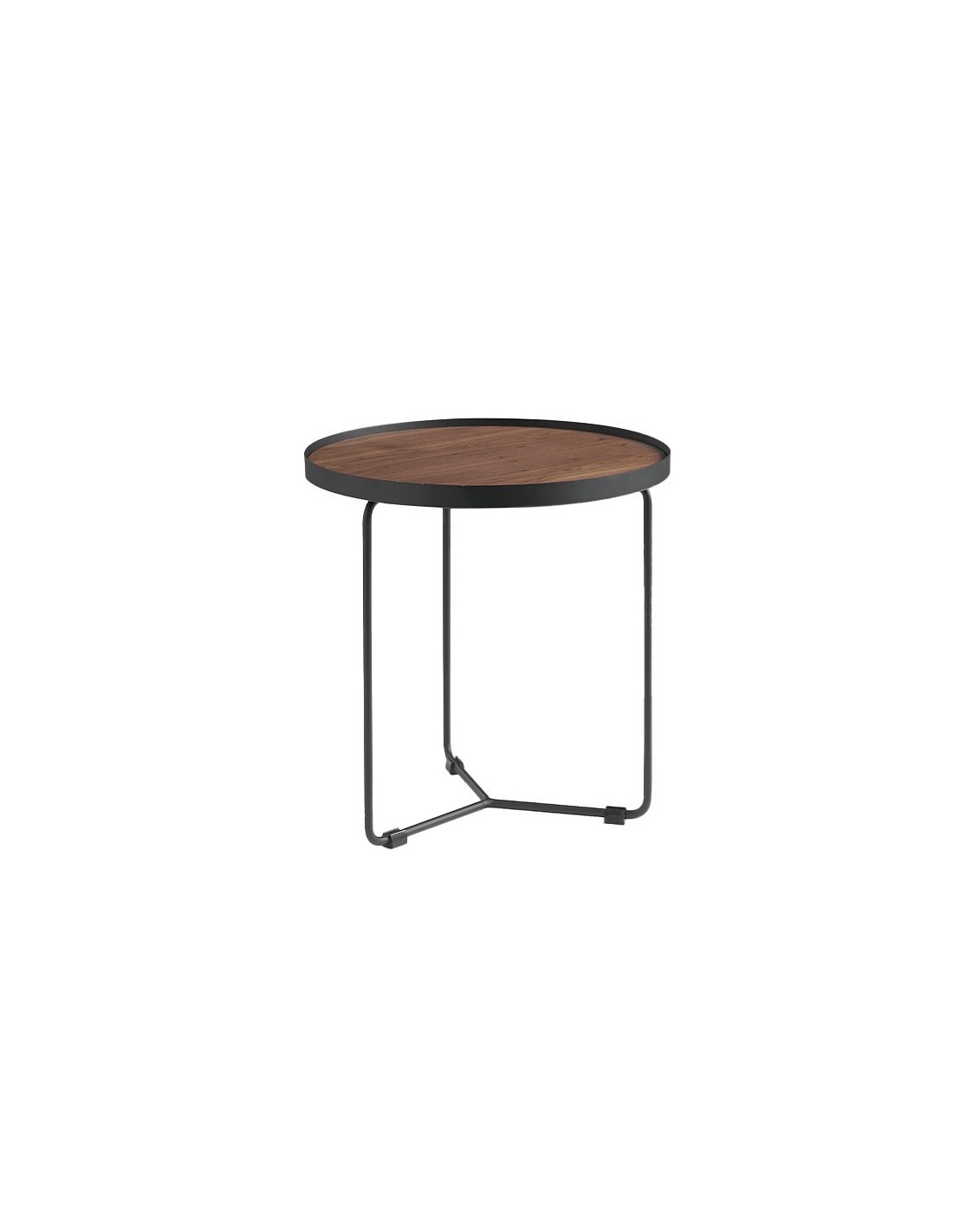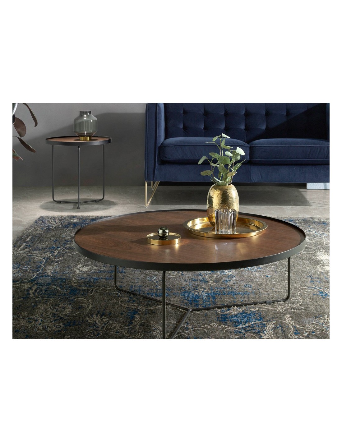 Mesa rincón redonda nogal y acero negro Mesa rincón redonda de diseño moderno con tapa de madera chapada en nogal natural y unas originales patas de acero inoxidable pintado en epoxi negro. Una pieza con un diseño sencillo a la vez que original, con la que aportará un toque único y personal.Medidas del producto: Ø50 x x 50 cm.- Gracias a su tapa de madera chapada en nogal natural de 0,5 mm de espesor podrá crear un ambiente cálido, acogedor y repleto de estilo. - Fiel a las últimas tendencias en decoración, el acero negro le permitirá crear un espacio único, personal y con carácter. - Tanto por su diseño como por su estilo moderno, le permitirá crear un ambiente repleto de vanguardia y sofisticación. - Versátil y funcional, su diseño permite que encaje en cualquier ambiente, convirtiéndose en un elemento clave de la decoración de su hogar.