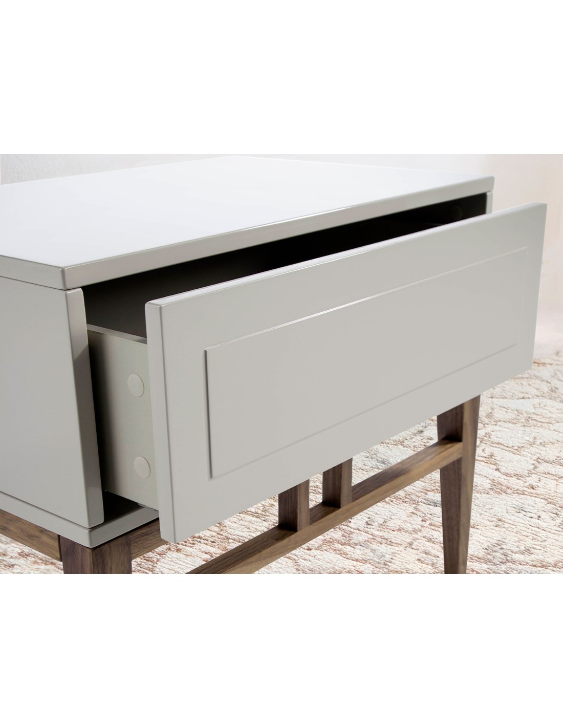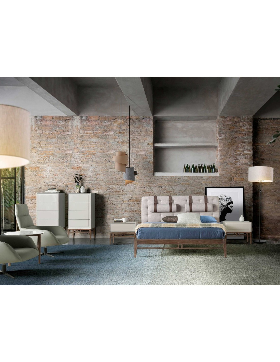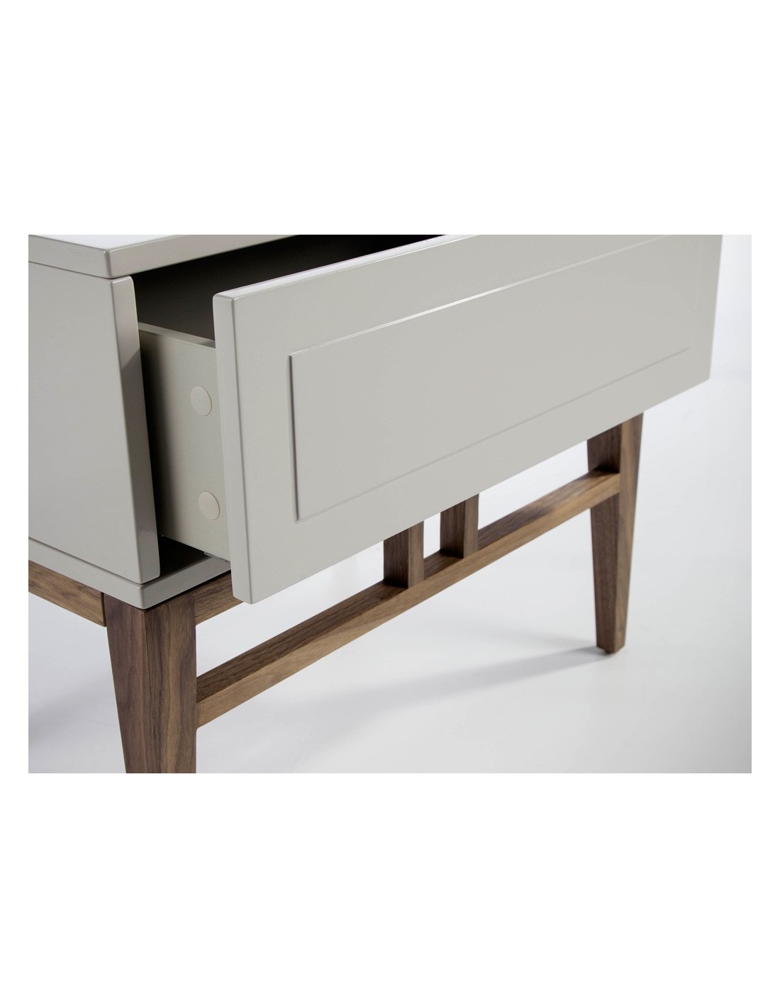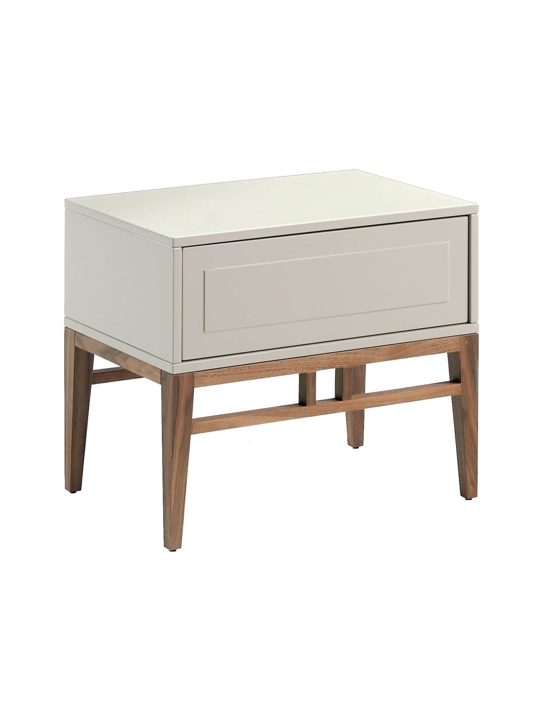 Mesita de noche madera beige y nogal Mesita de noche de diseño moderno con estructura de madera de MDF color beige y unas originales patas de madera chapada en nogal natural. Cuenta con un amplio espacio de almacenaje con 1 cajón con sistema de apertura push and pull y cierre soft-closing. Medidas del producto: 60 x 40 x 50 cm.- Gracias a su acabado lacado, esta mesita de noche es ideal para crear un ambiente con carácter y personalidad, sin dejar de lado la parte más funcional y práctica para el día a día. - La robusta estructura de patas de madera chapada en nogal natural aporta el toque de calidez. - Versátil y funcional, su diseño permite que encaje en cualquier ambiente, convirtiéndose en un elemento clave de la decoración de su hogar. - Tanto por su tamaño como por su gran espacio de almacenaje es ideal para mantener todo en orden y en su sitio.