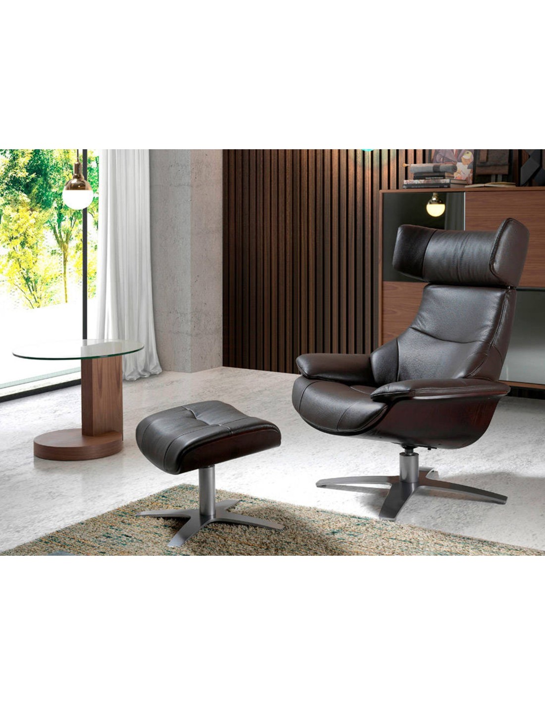 Ottoman piel marrón chocolate Ottoman de diseño moderno con asiento tapizado en piel de origen vacuno color marrón chocolate. Sus patas de acero inoxidable oscurecido de estilo vanguardista a la vez que atemporal, lo convertirán en el must have de su salón. Este ottoman es el complemento ideal para combinar con su sillón de diseño moderno a juego de nuestra marca.Medidas del producto: 39 x 52 x 40 cm.- El tapizado en piel de este ottomán aportará un toque único y diferente, siendo un elemento práctico perfecto para su salón, zona de lectura o descanso. - La combinación de la piel con sus patas en acero inoxidable cromado oscurecido lo convierte en una pieza elegante y exclusiva. - Un diseño atemporal que aúna la mayor calidad que nos caracteriza con la funcionalidad y la practicidad para el día a día. - El tamaño de su asiento relleno de espuma de poliuretano de 25kg/m3, le permitirá contar con el máximo confort, sin dejar de lado la más alta tendencia. - El estilo giratorio de este ottomán es ideal para quienes buscan la combinación perfecta entre el confort, la funcionalidad y el diseño.